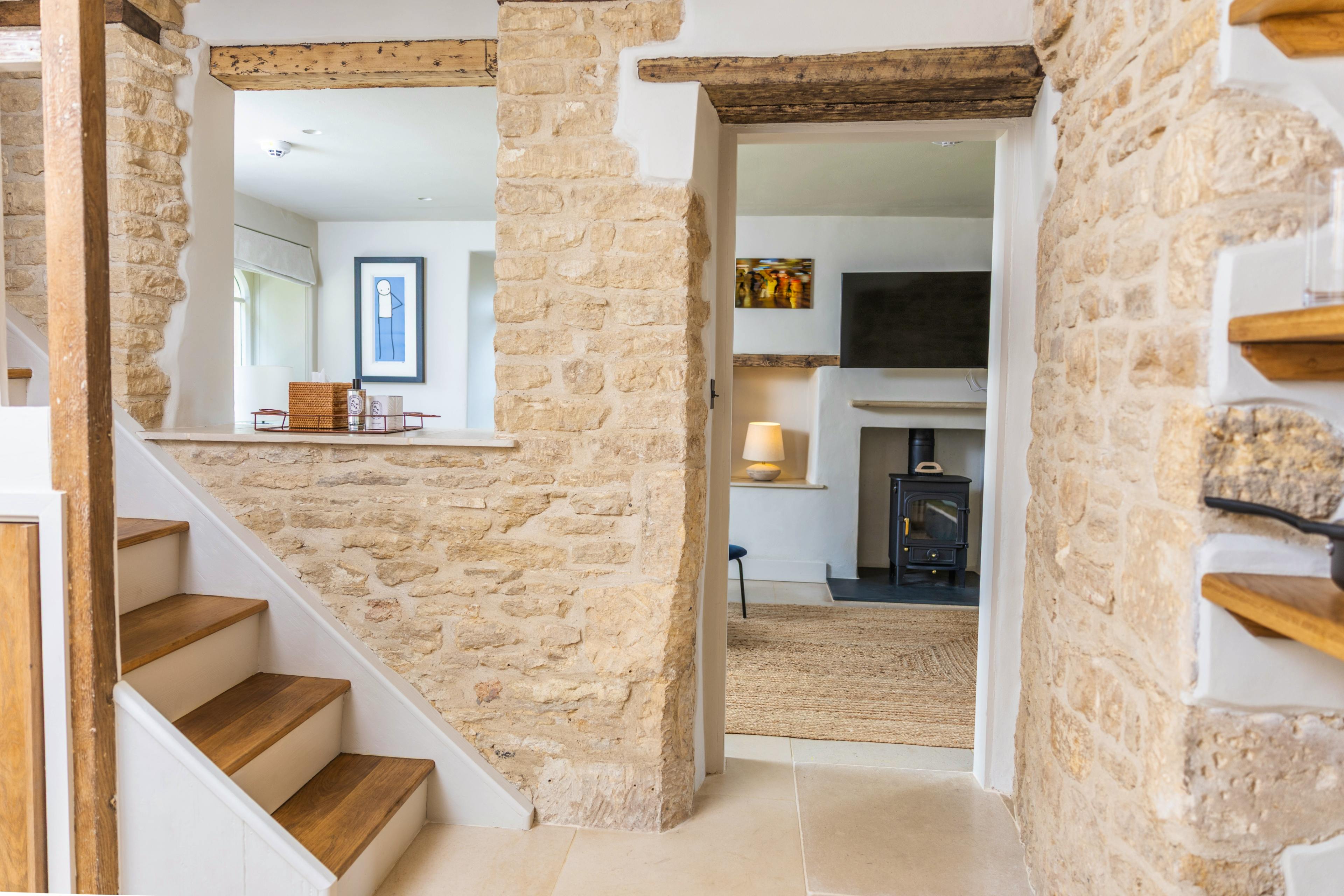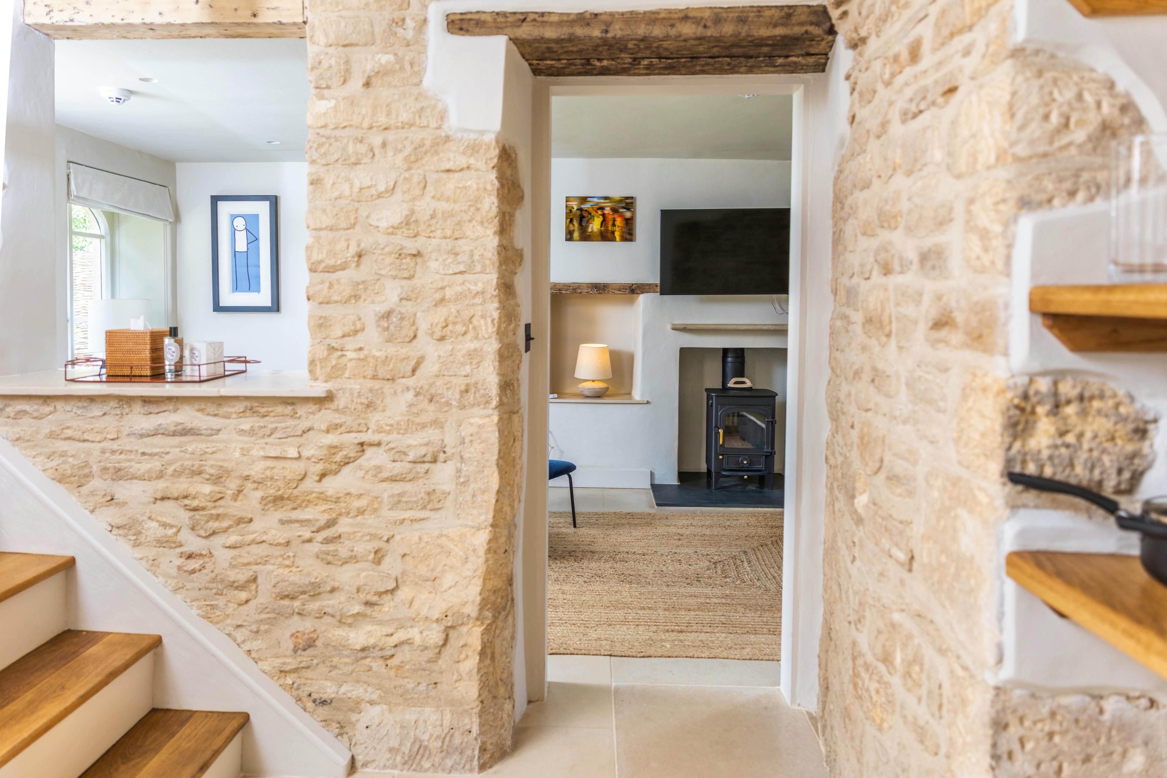 This newly renovated one-bedroom cottage on the edge of Stow-on-the-Wold perfectly blends traditional Cotswold charm with all the comforts and modern touches you’d expect from a luxury home-from-home. From the moment you approach the striking stone exterior, the property exudes old-world character, inviting you to step inside and discover a cosy, stylish retreat. It’s the perfect base from which to explore everything the Cotswolds have to offer, from rolling countryside walks to picturesque villages and bustling market towns. Inside, the cottage is bright, airy and full of character. Warm yellow stone walls combine effortlessly with whitewashed surfaces and large windows, creating a light-filled, welcoming atmosphere. The living room is charming and homely, complete with a wood-burning fireplace that keeps you snug in every season, while a wall-mounted TV offers modern entertainment. Opposite the lounge, a dining table provides an intimate setting for romantic meals, while the stylish, practical kitchen is equipped with modern appliances and a coffee machine - perfect for that all-important first cup of the day. Upstairs, the crooked staircase leads to a master bedroom designed for ultimate relaxation. With elegant decor and a super-comfy bed, a peaceful night’s sleep is guaranteed. The lounge sofa-bed provides additional space for one child, making this cottage ideal for small families seeking a countryside escape. The star feature is undoubtedly the private courtyard garden. Sun-soaked in summer, it’s a tranquil spot for reading, enjoying a quiet cup of tea or firing up the BBQ to cook up some delicious local produce. Beyond the garden, the cottage’s central location makes exploring the Cotswolds easy. Just a short walk takes you to Stow’s restaurants, shops and pubs, while other popular villages are only a short drive away. This cottage offers the perfect combination of charm, comfort and convenience, making it a quintessential Cotswolds escape.