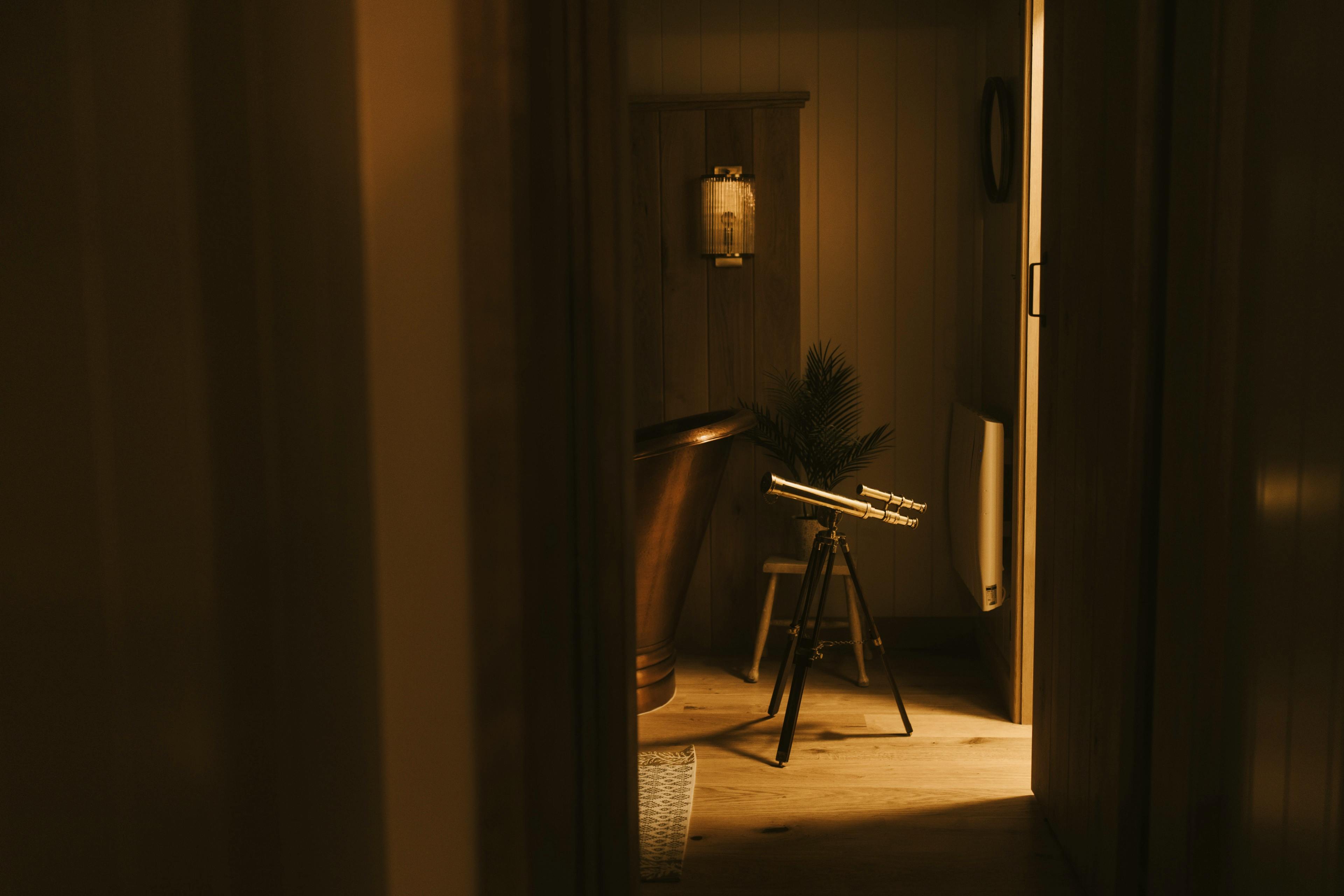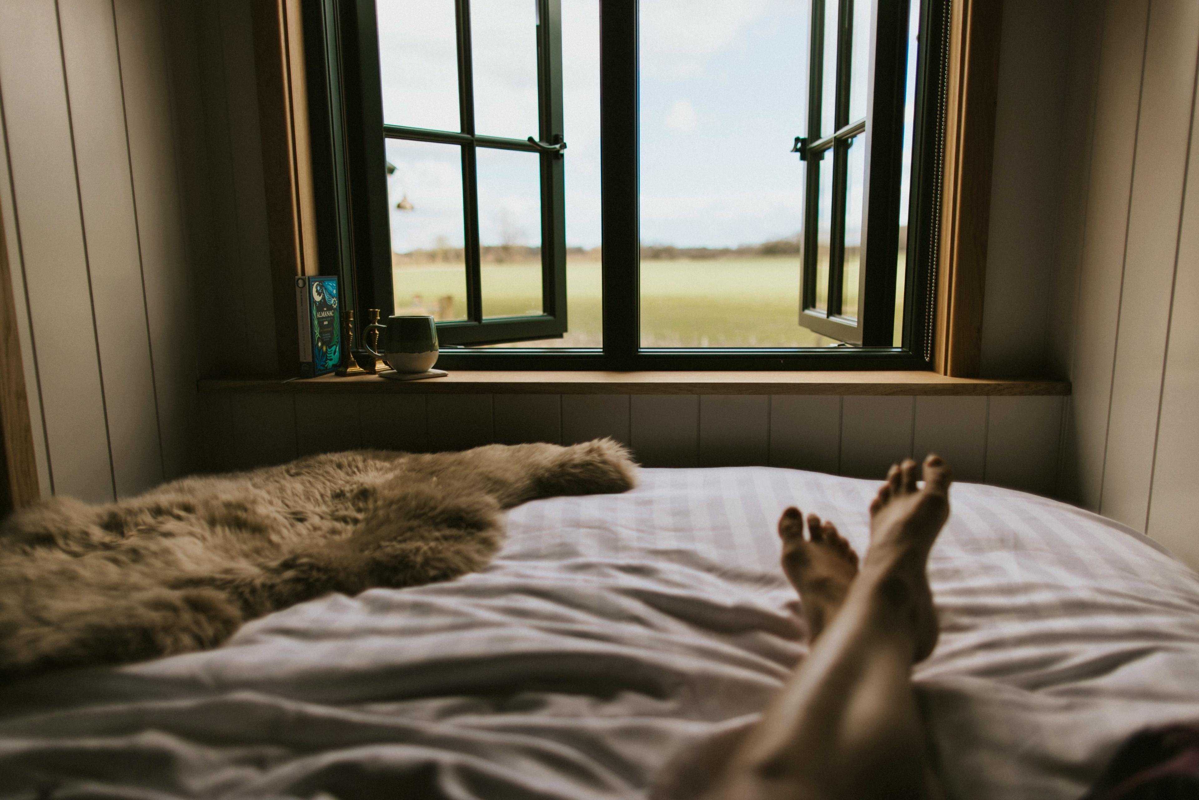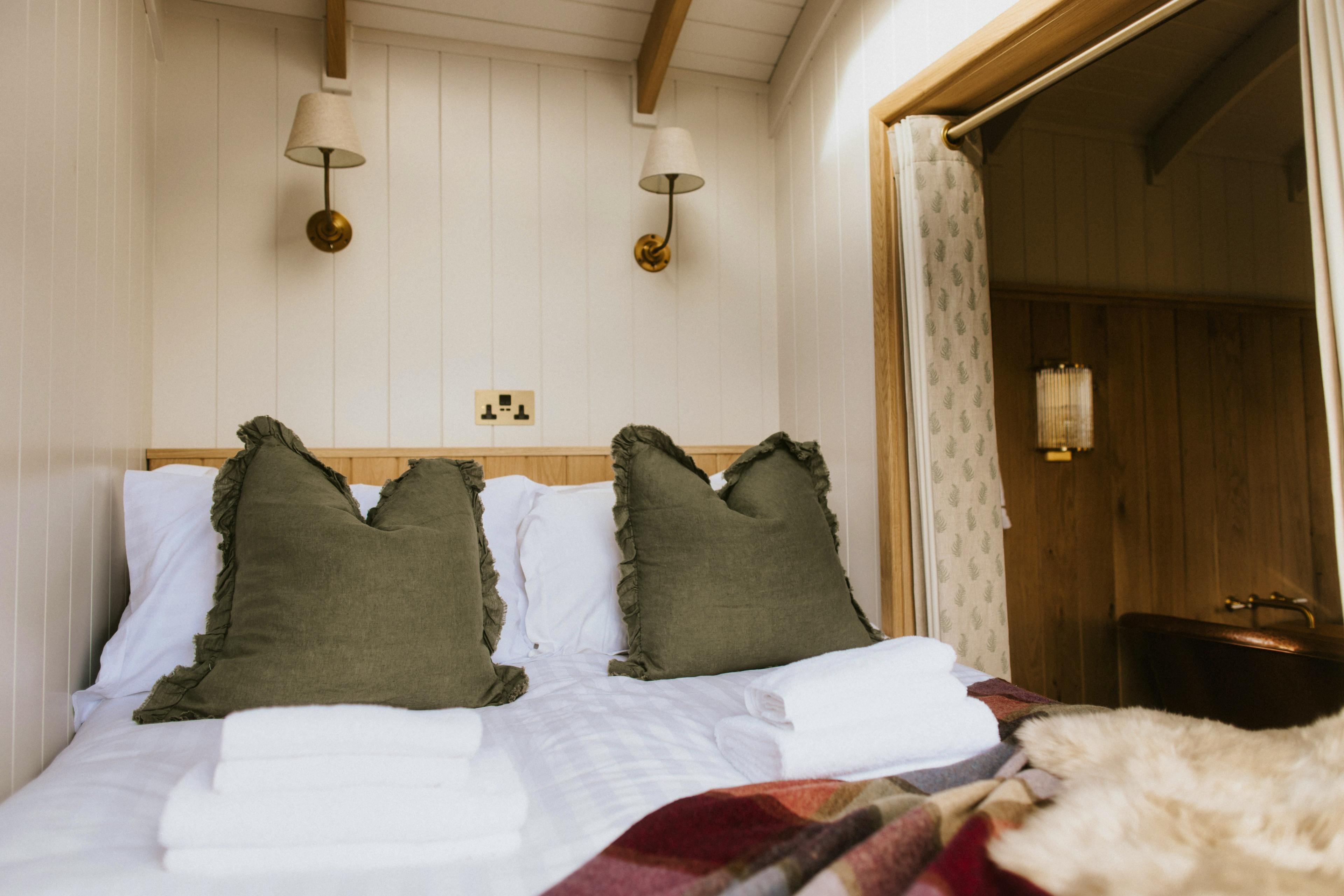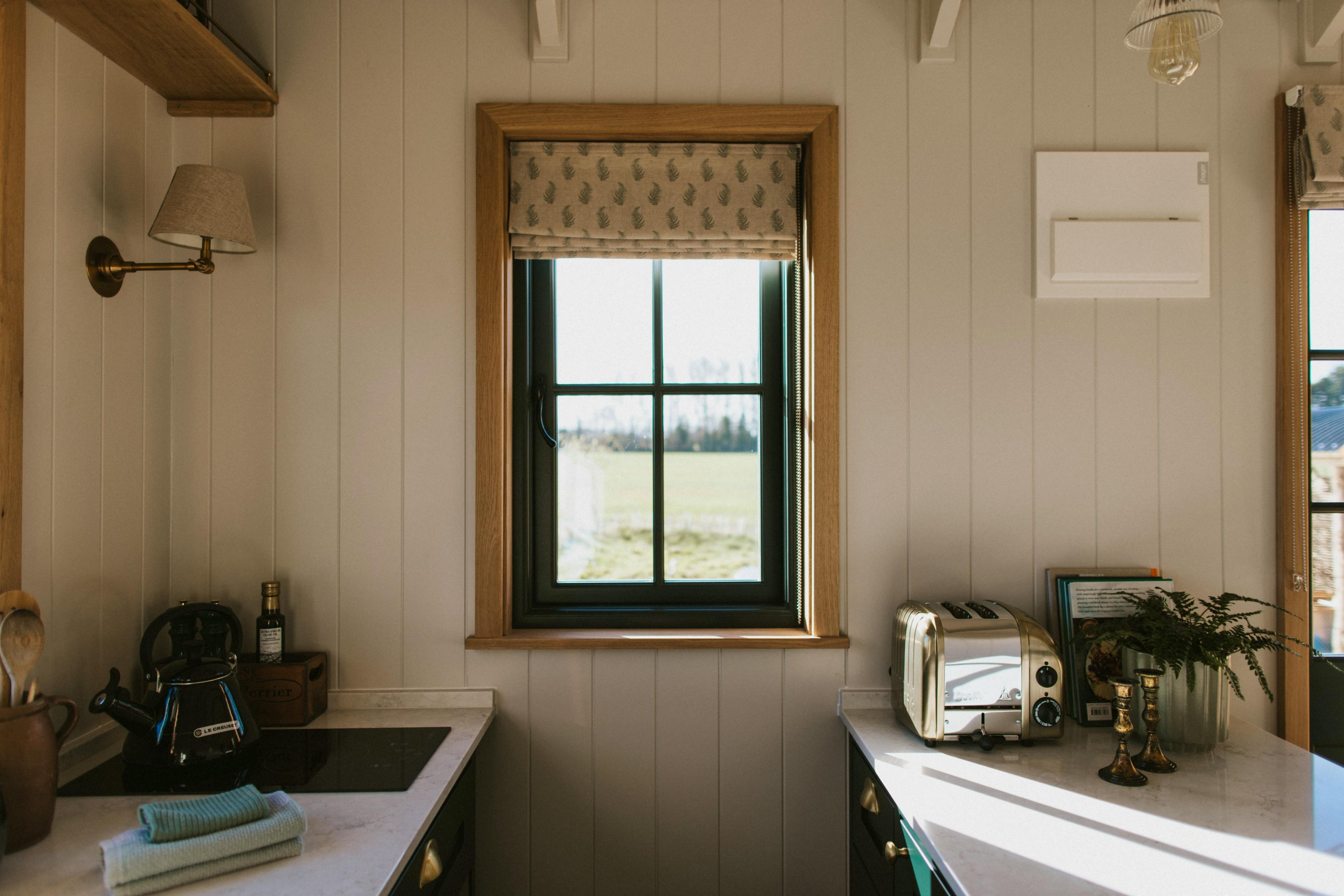 Starlit shepherd’s hut hideaway in a wildflower meadow on the edge of rural Lincolnshire with deluxe copper bathtub and wood-fired hot tub.