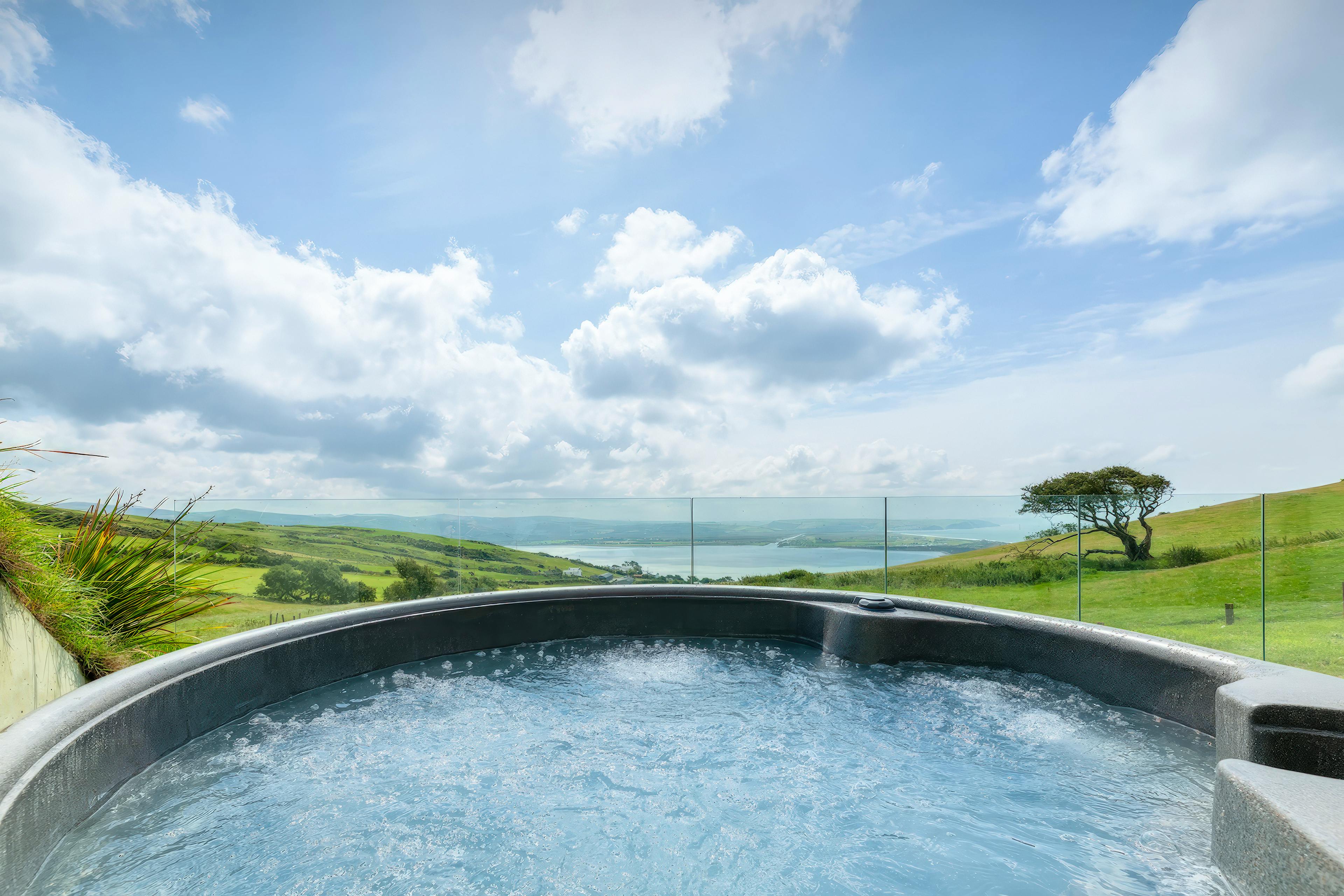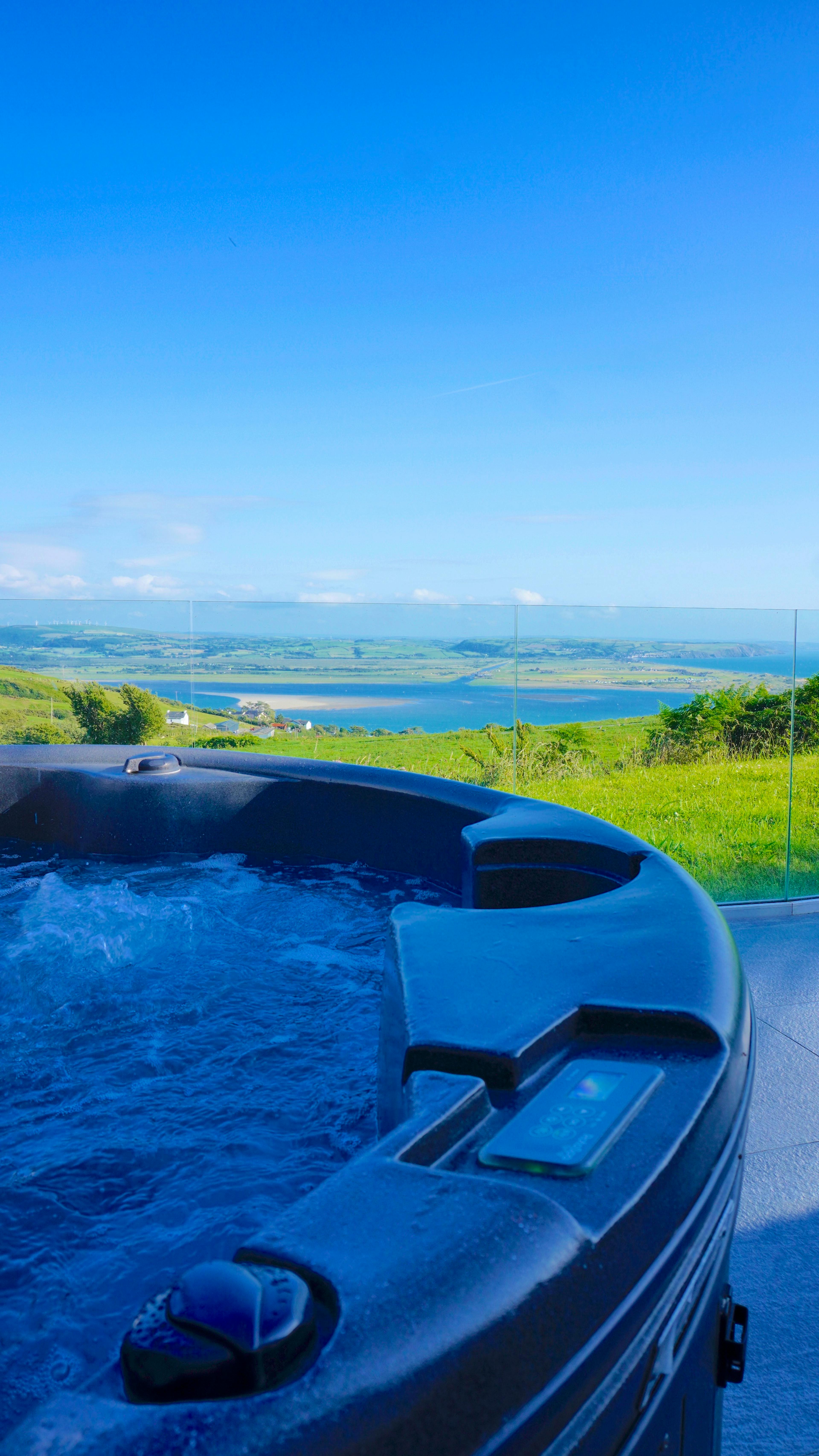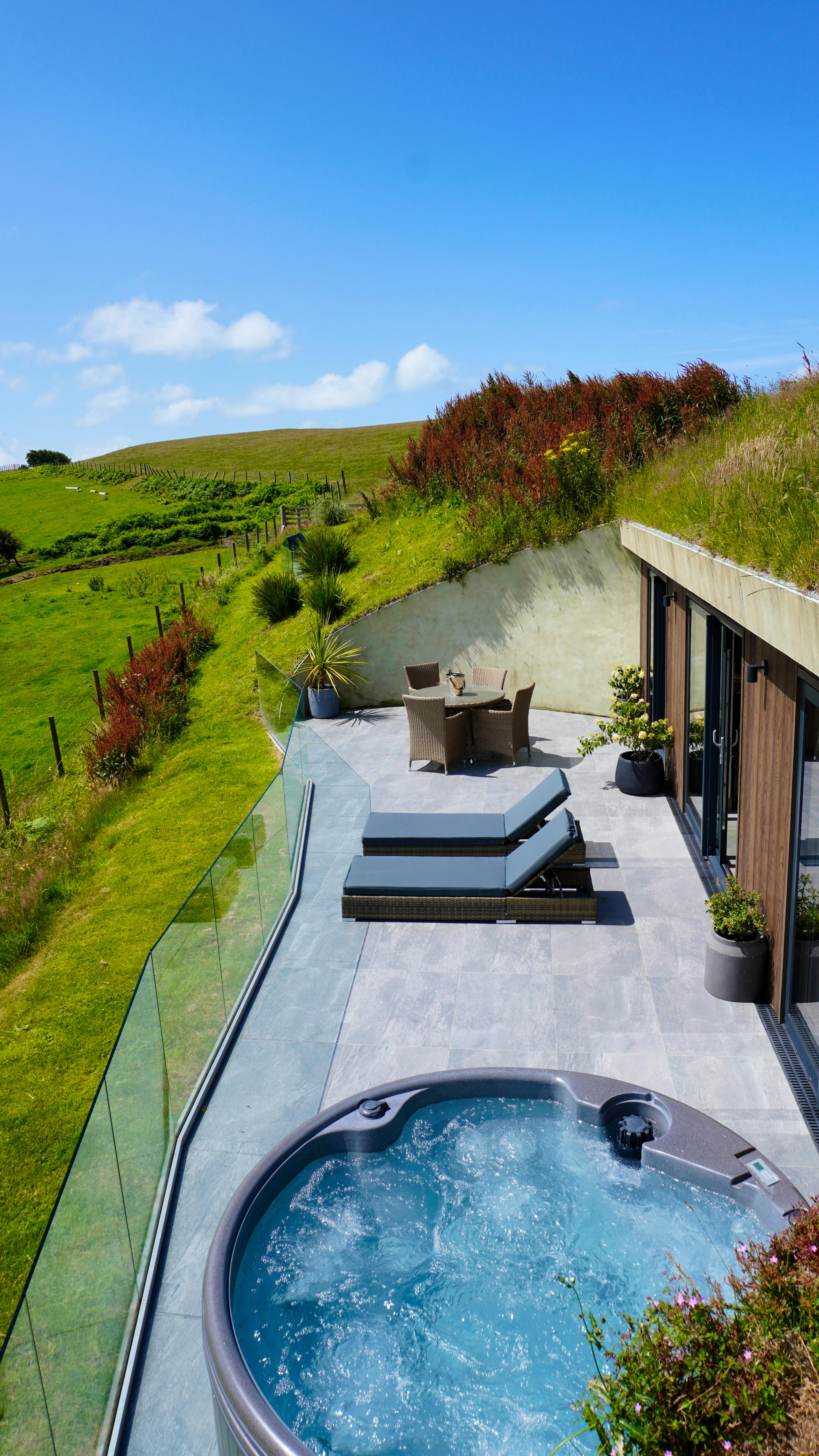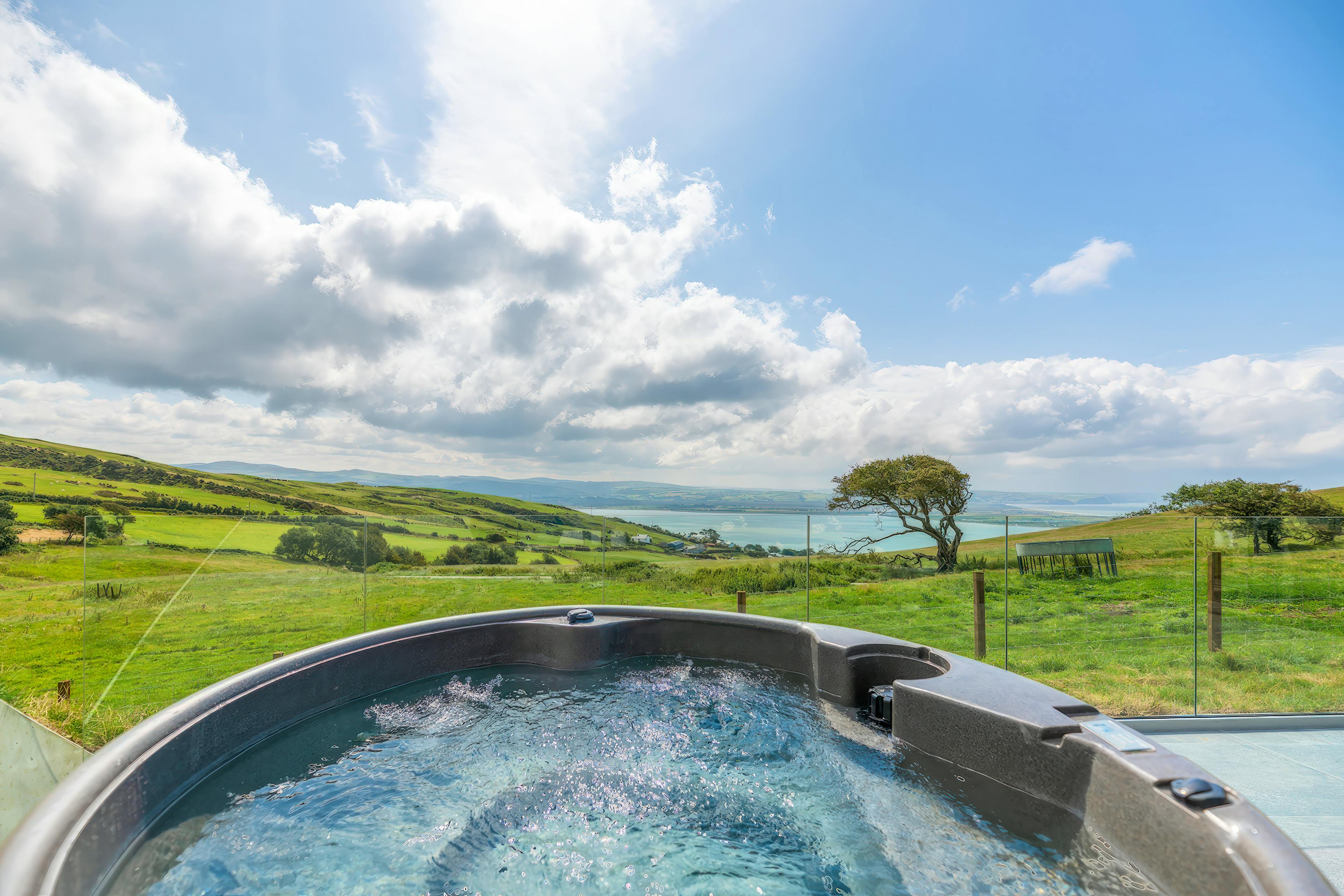 Luxurious pods with hot tubs hidden away in the hillside near the coast in Mid-Wales overlooking the Dyfi Estuary.