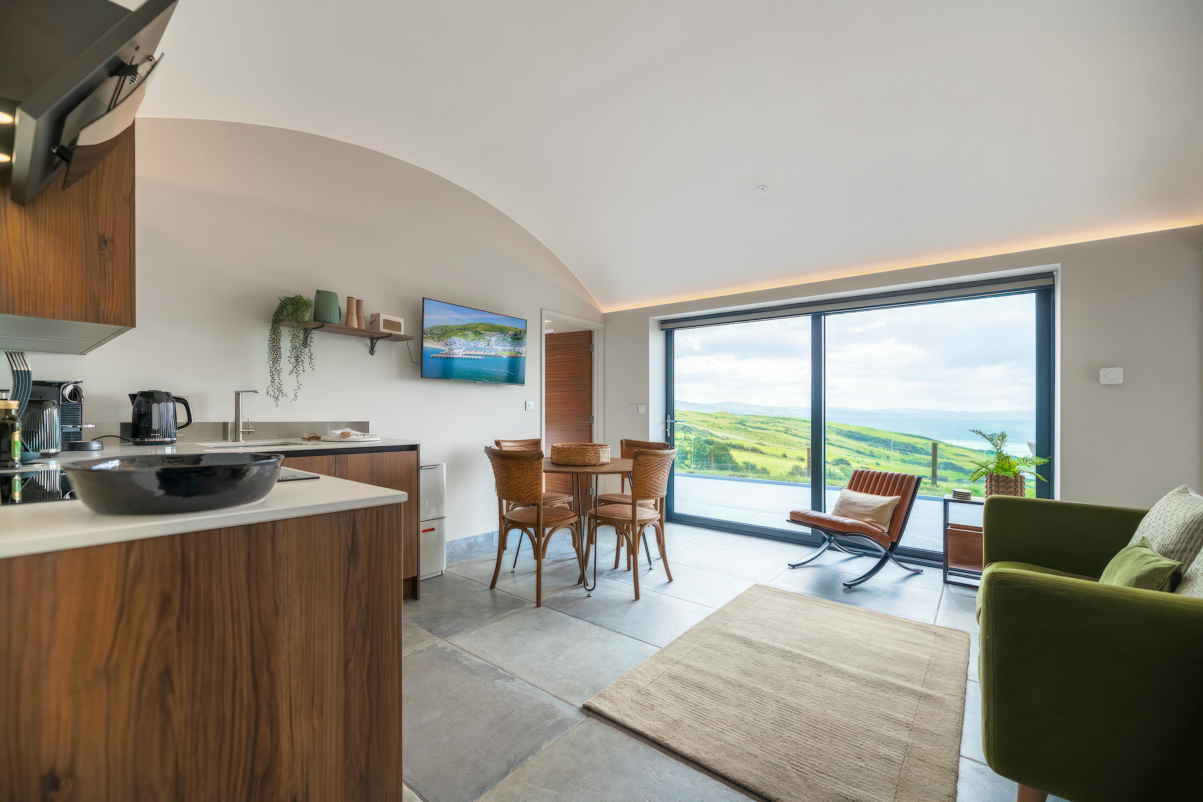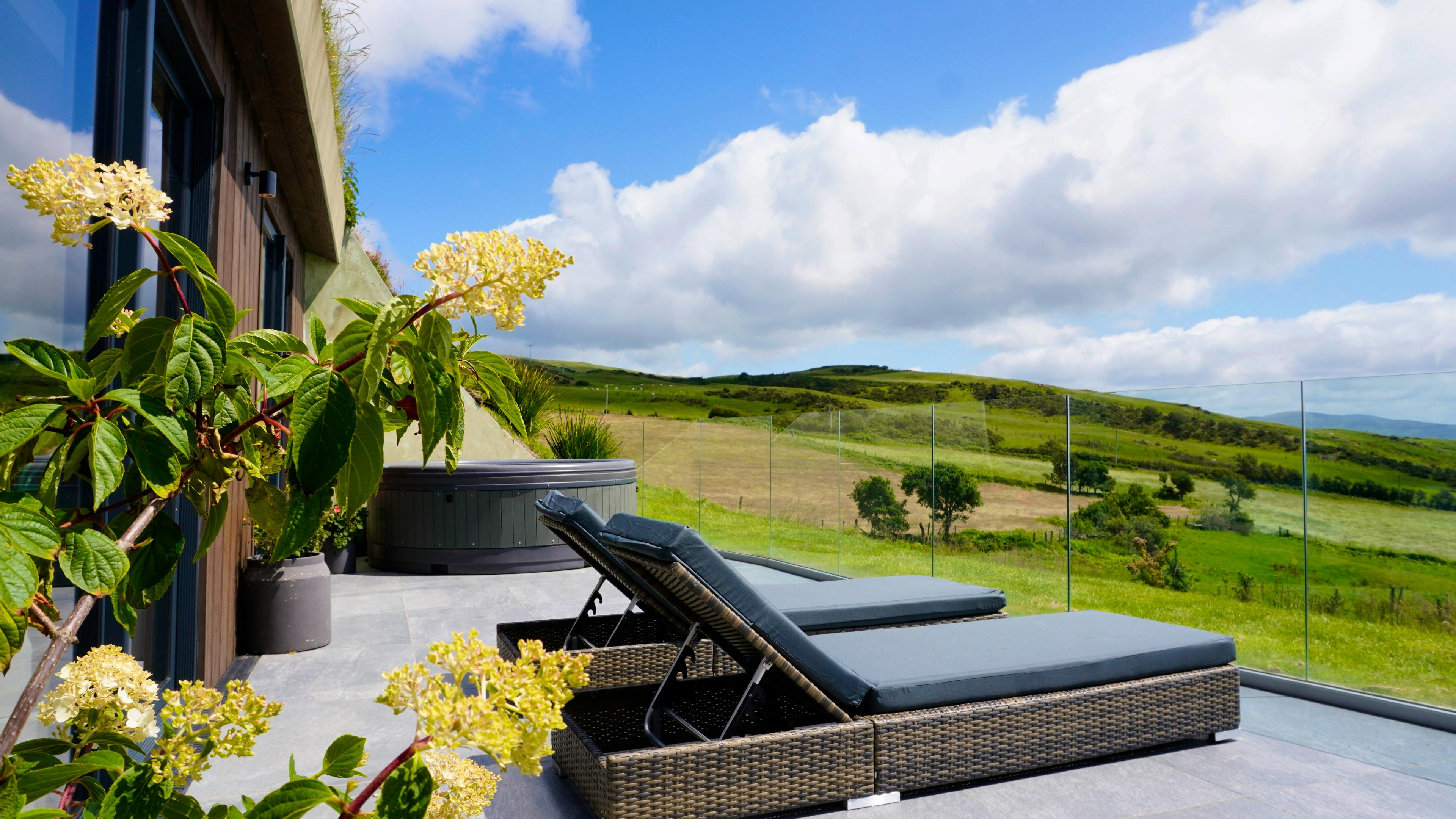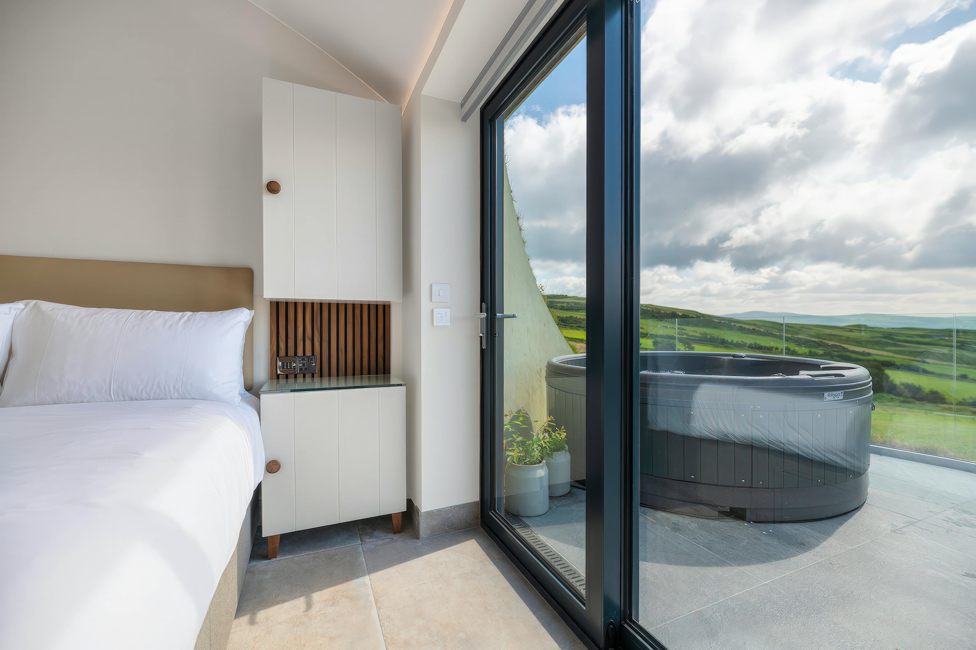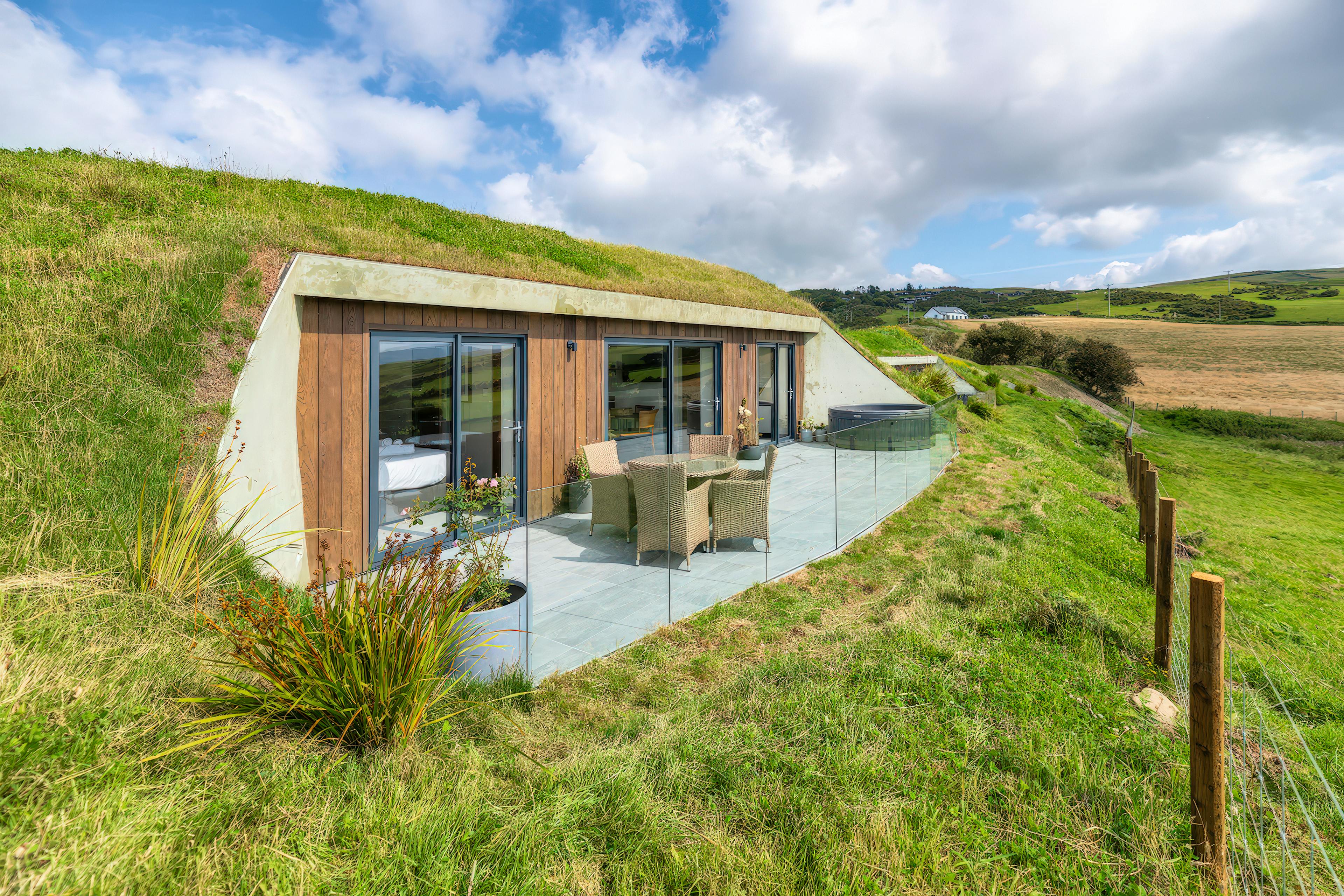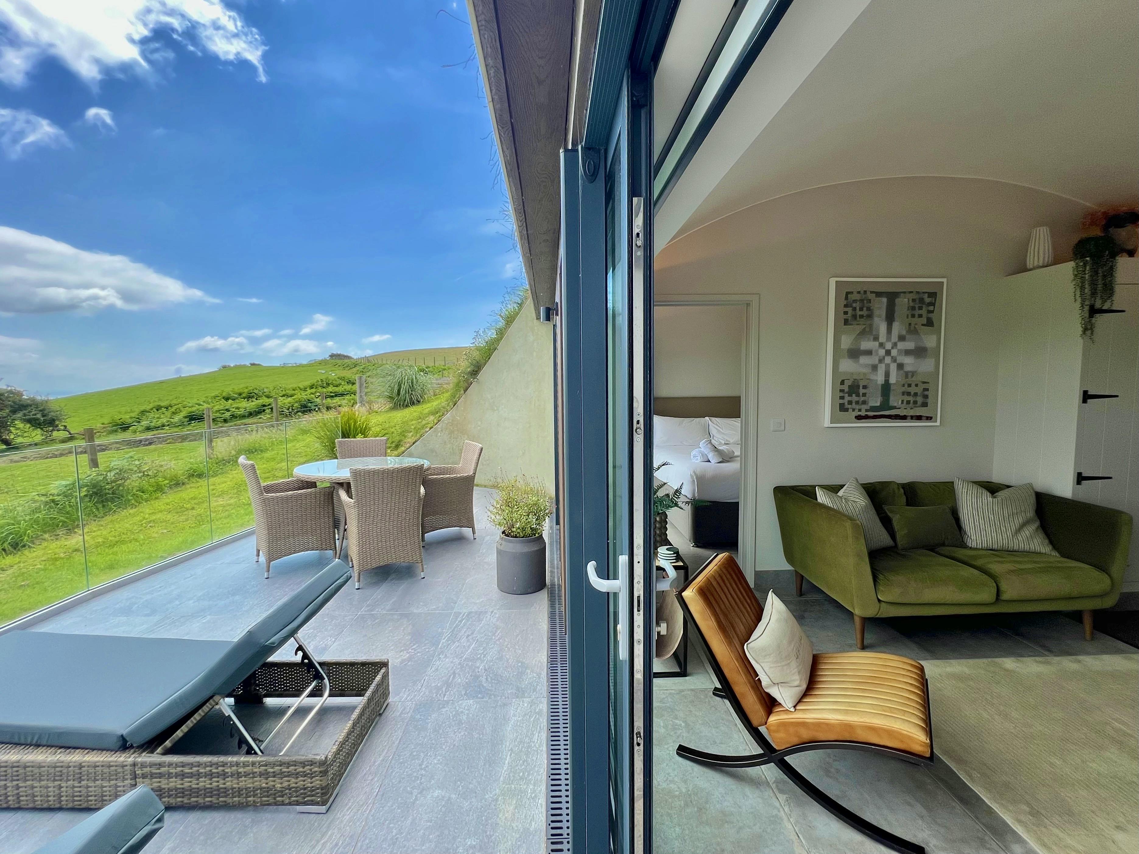 Luxurious pods with hot tubs hidden away in the hillside near the coast in Mid-Wales overlooking the Dyfi Estuary.