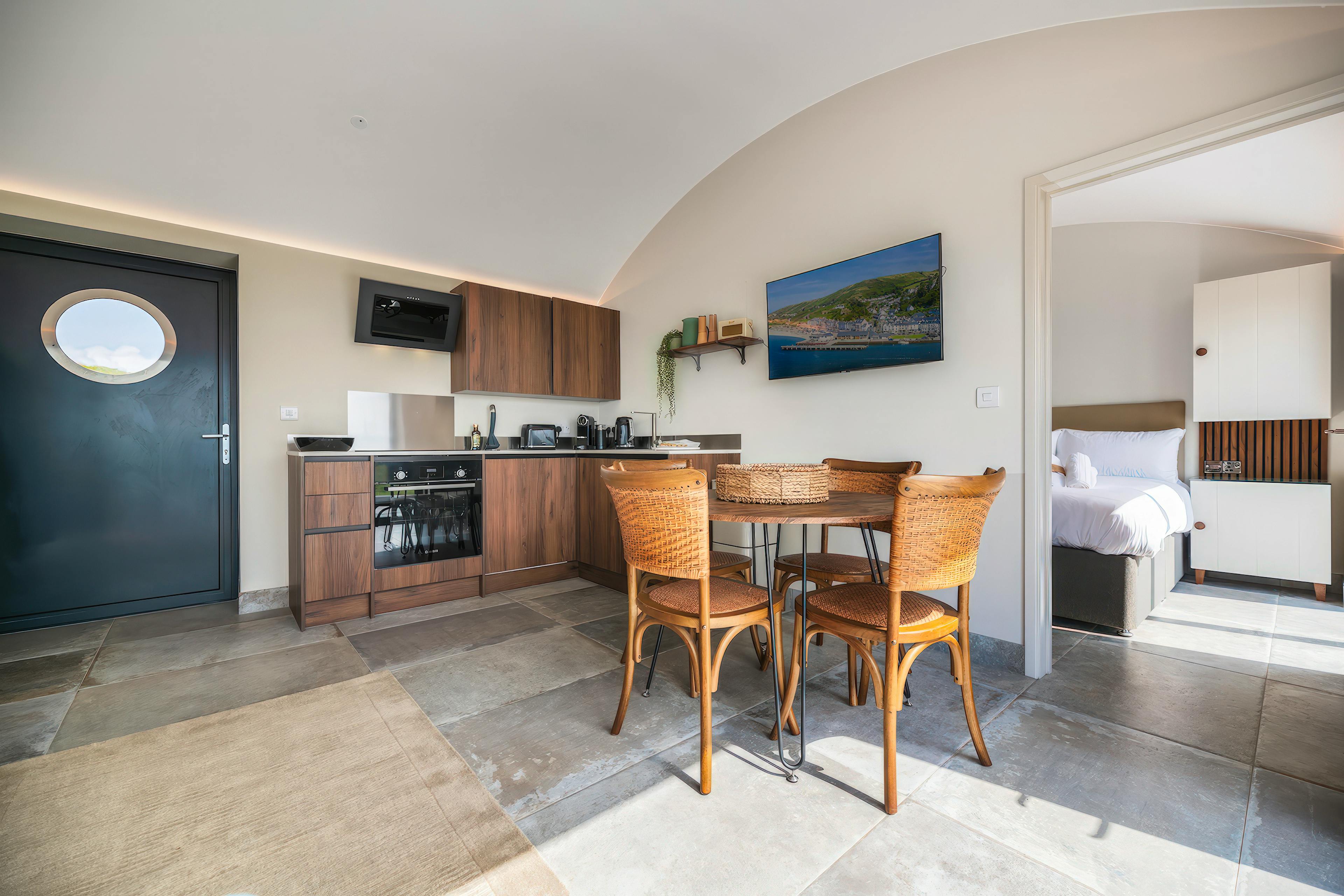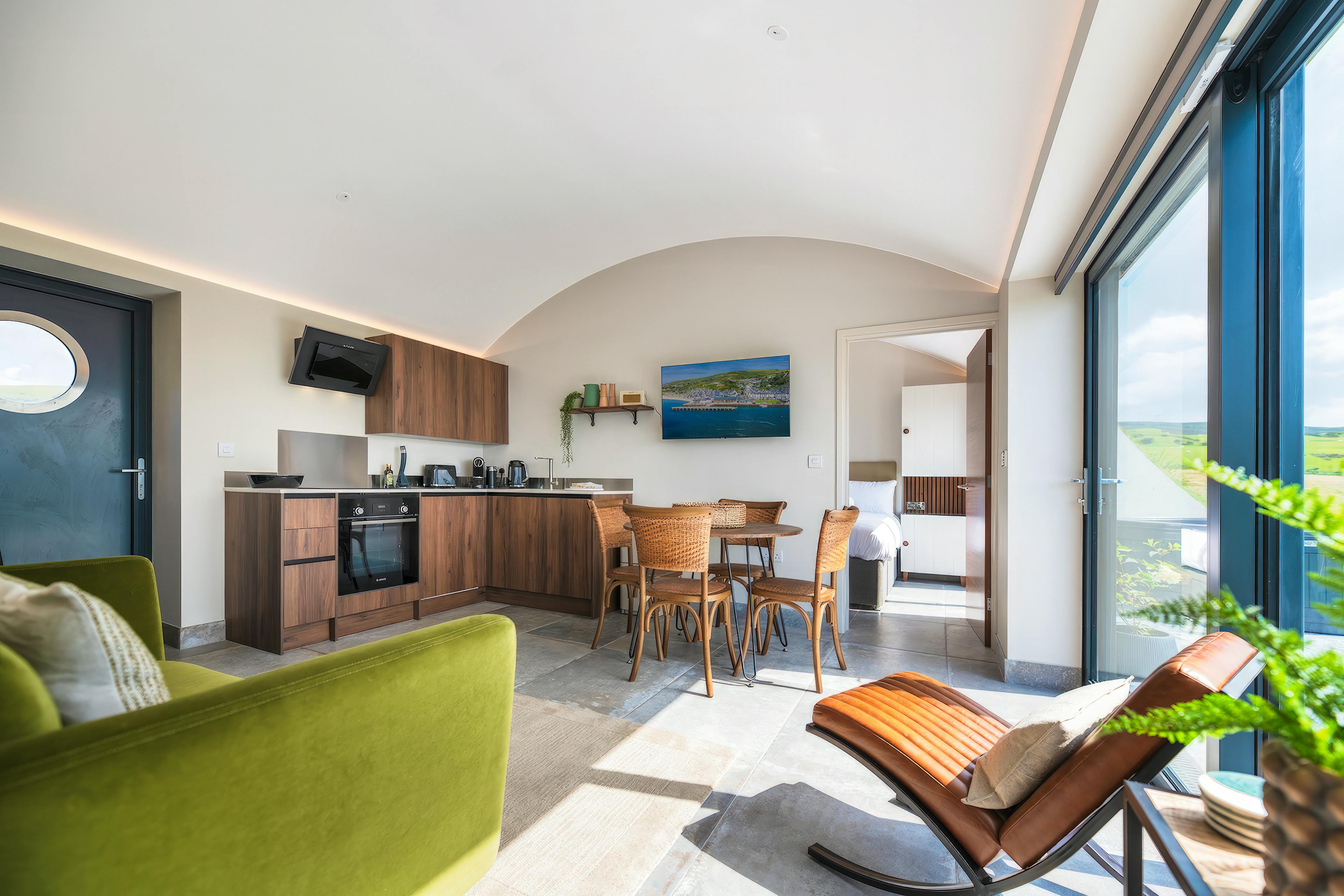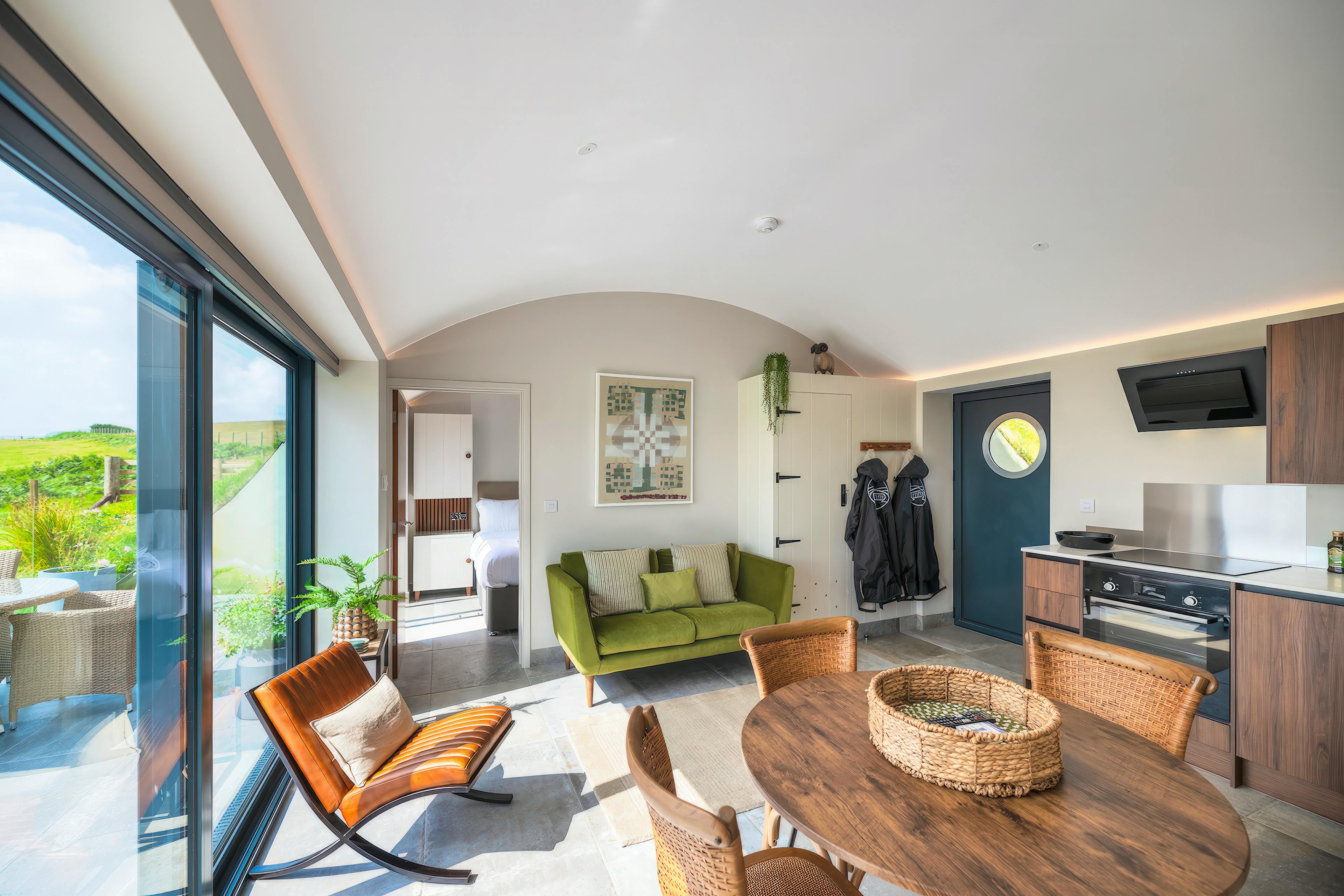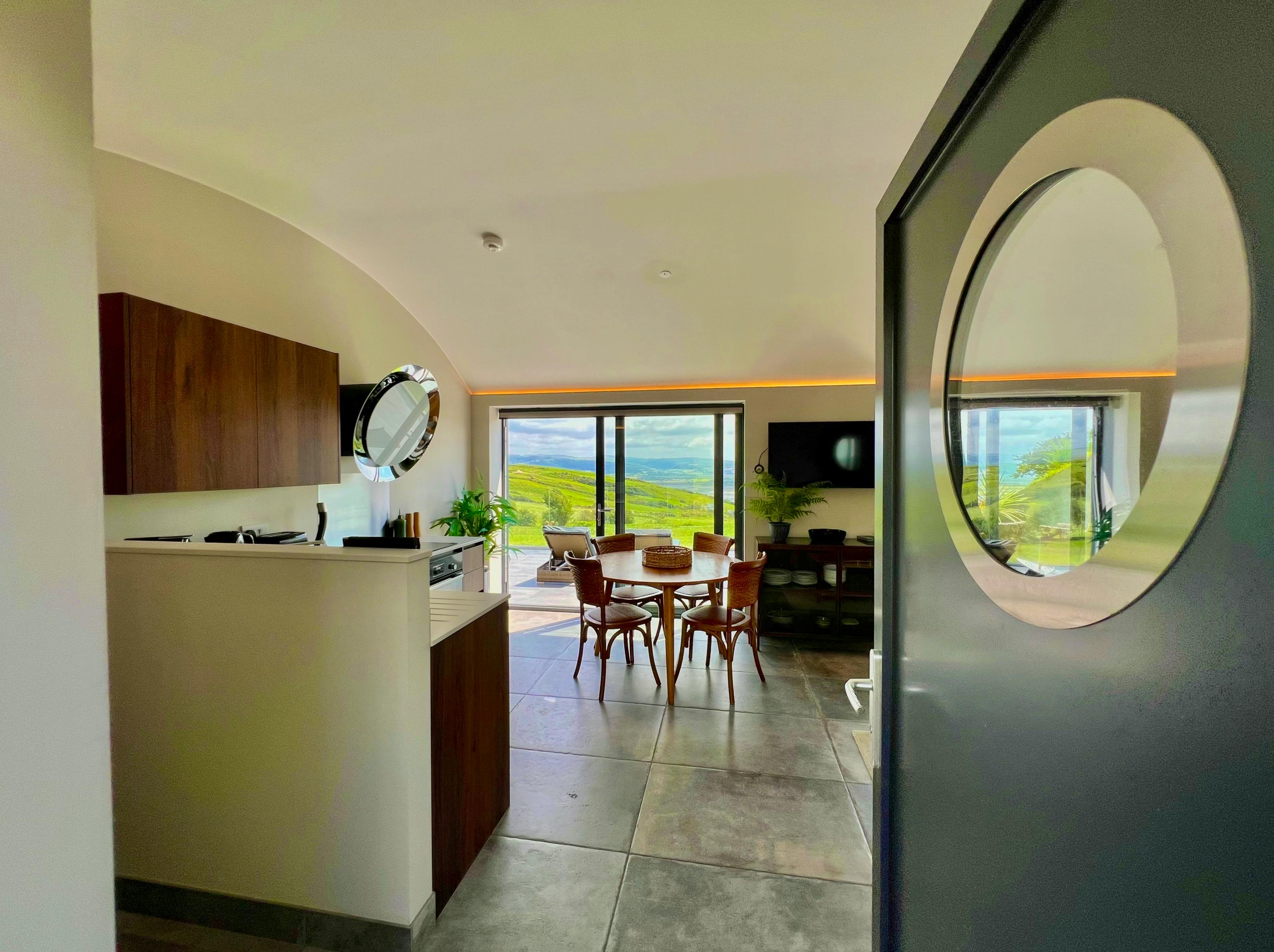 Luxurious pods with hot tubs hidden away in the hillside near the coast in Mid-Wales overlooking the Dyfi Estuary.