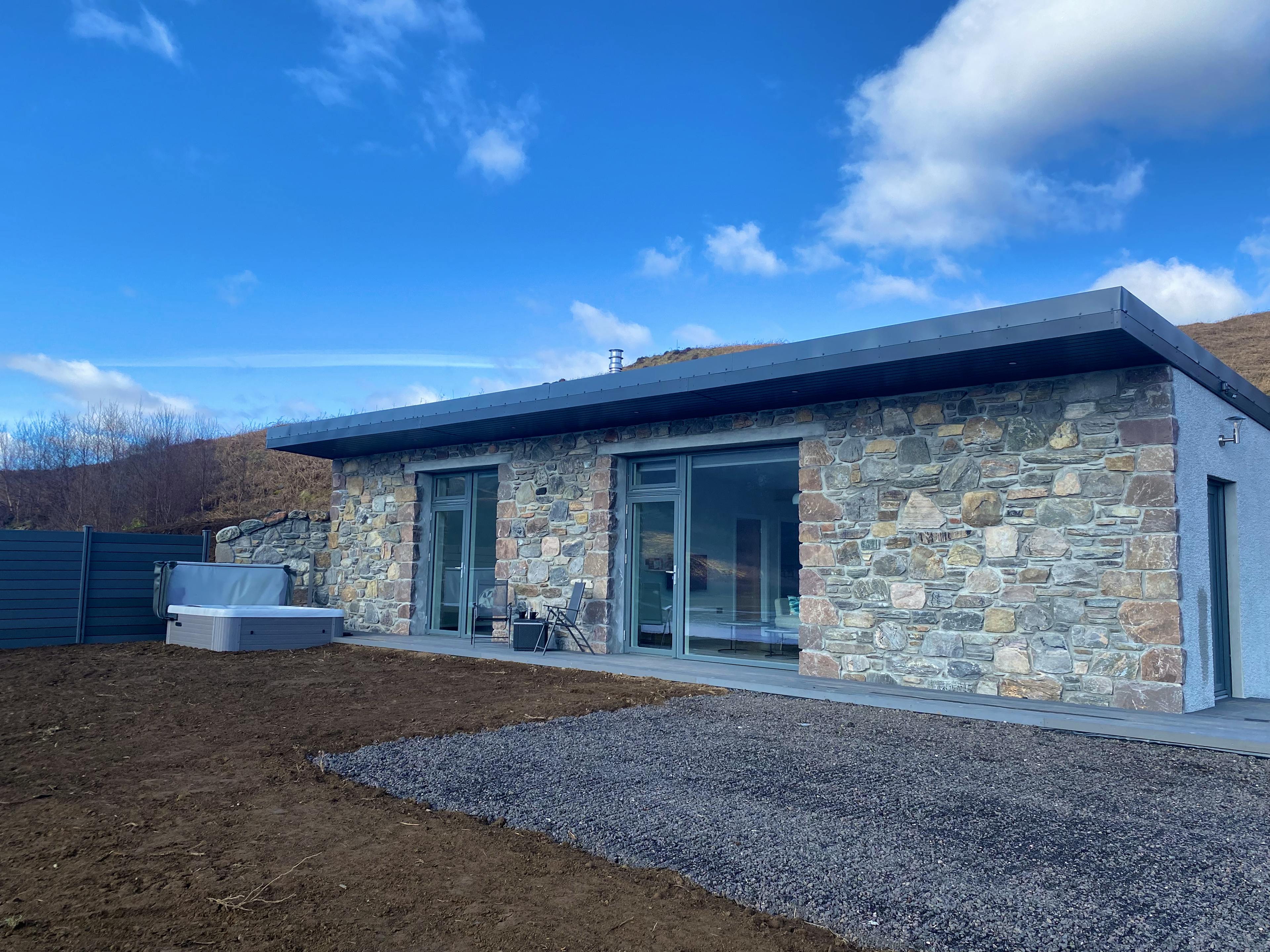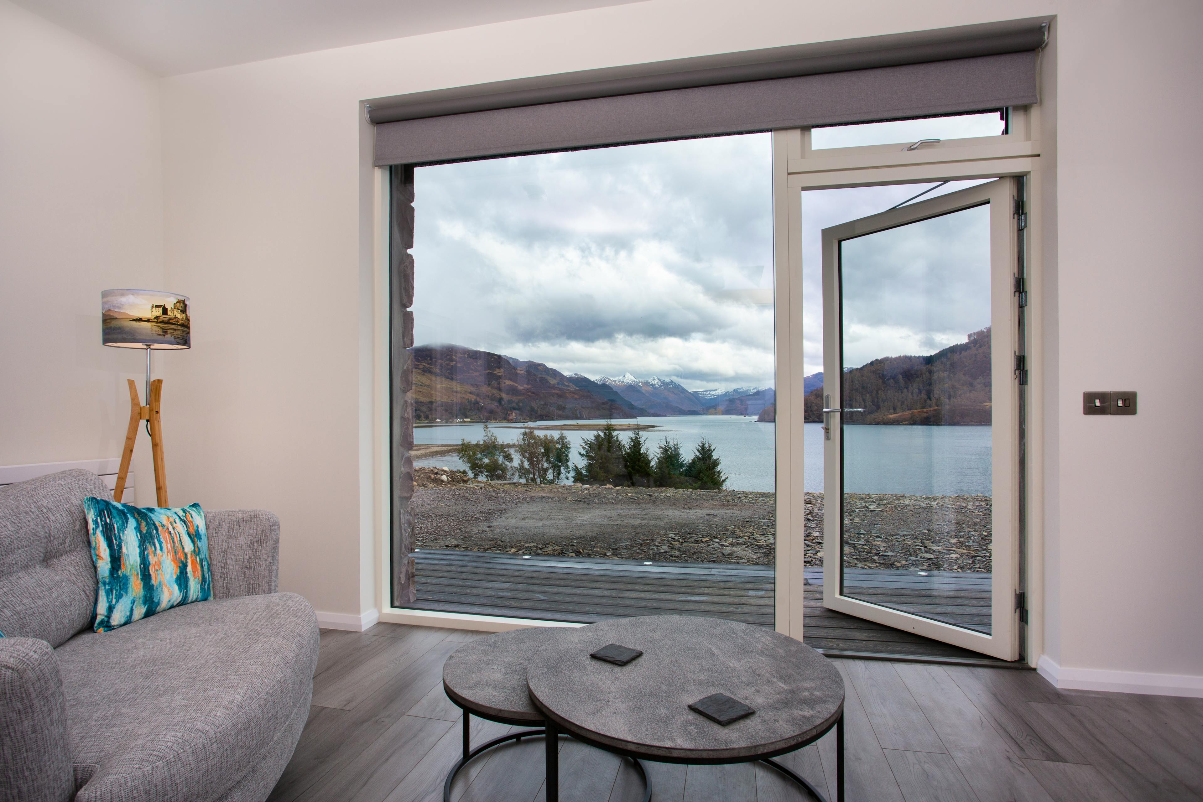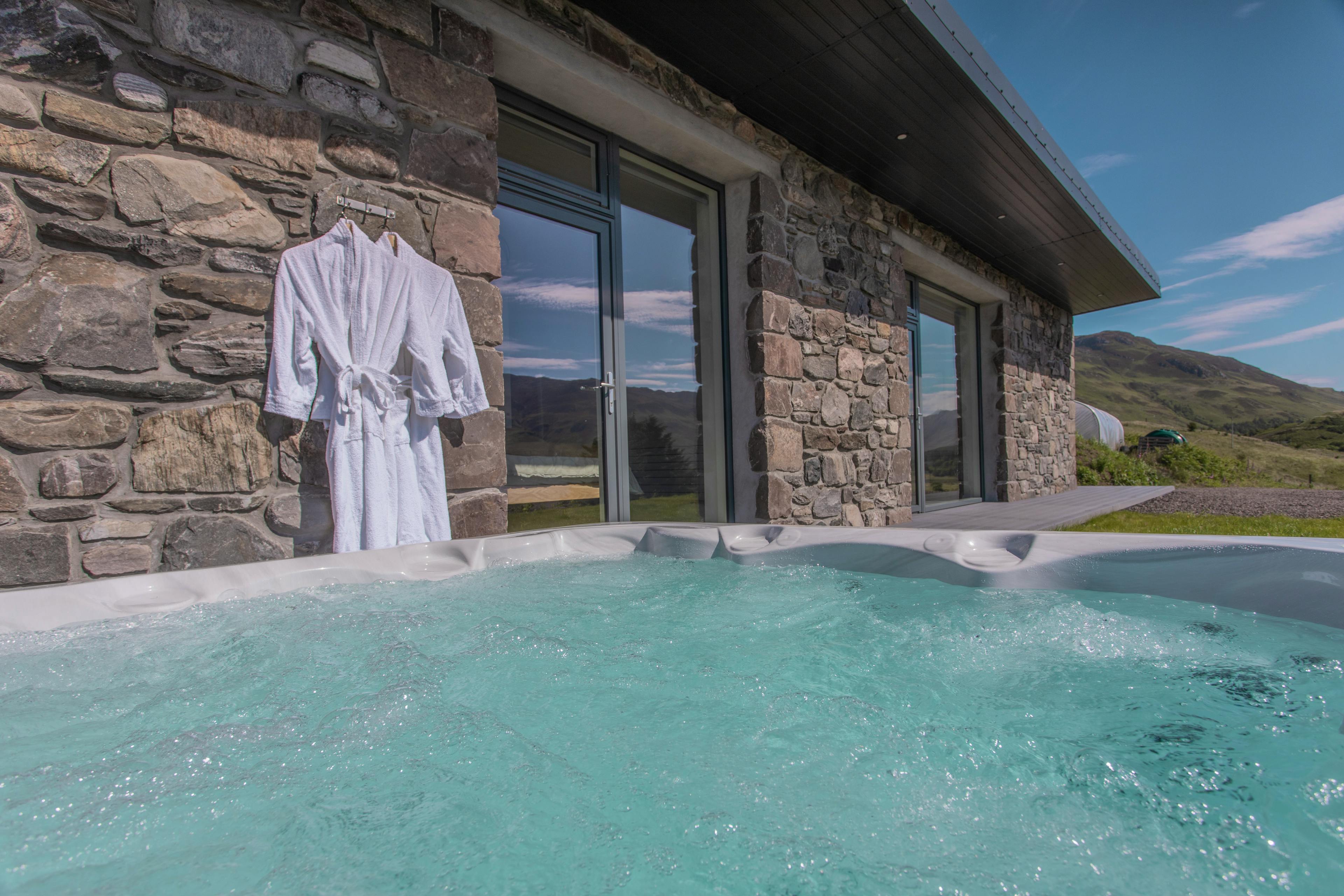 Luxurious and modern one bed cottage with stunning views, hot tub, gas stove and walk in rain shower in the heart of Lochalsh & Skye, Scotland.