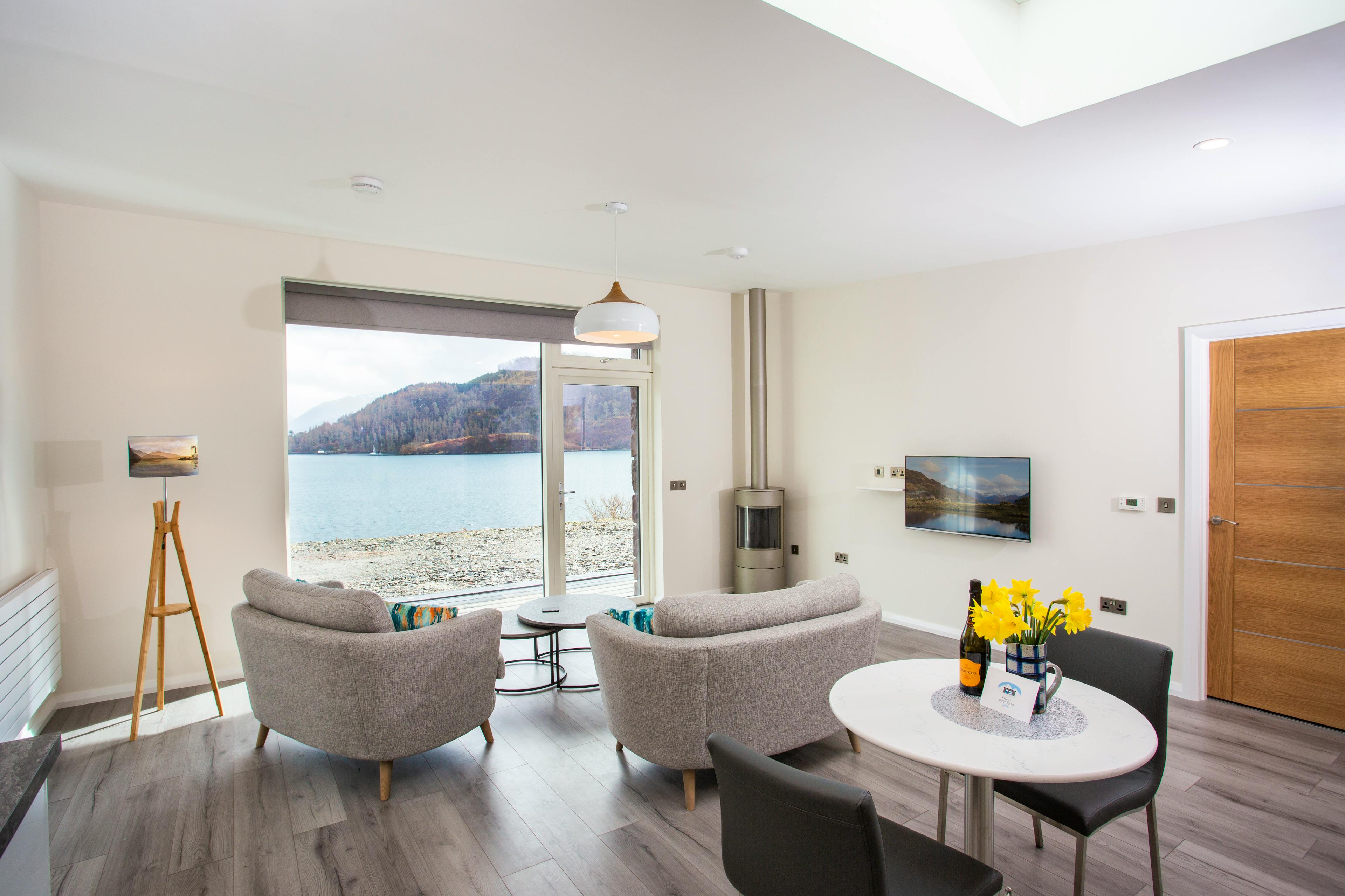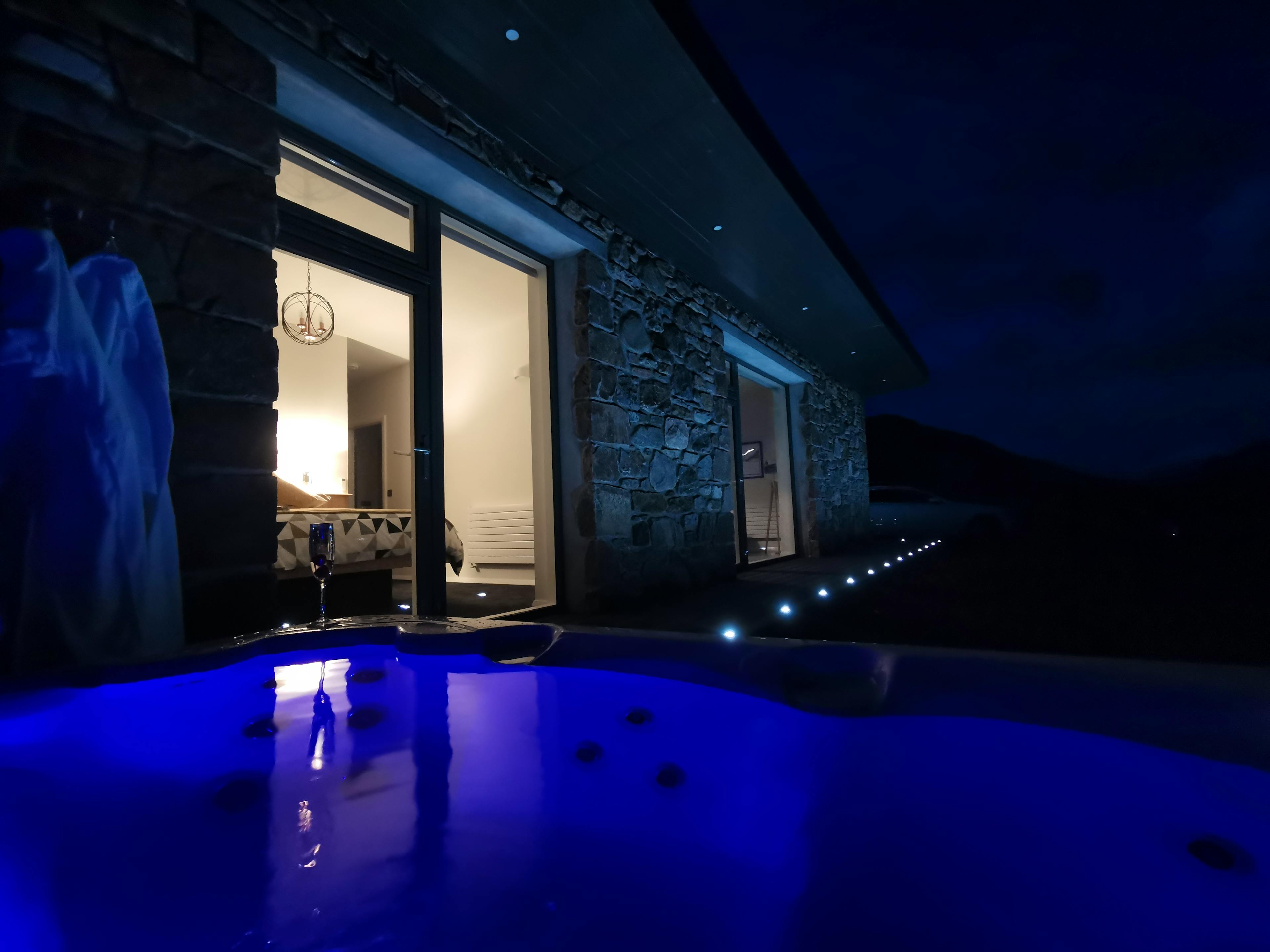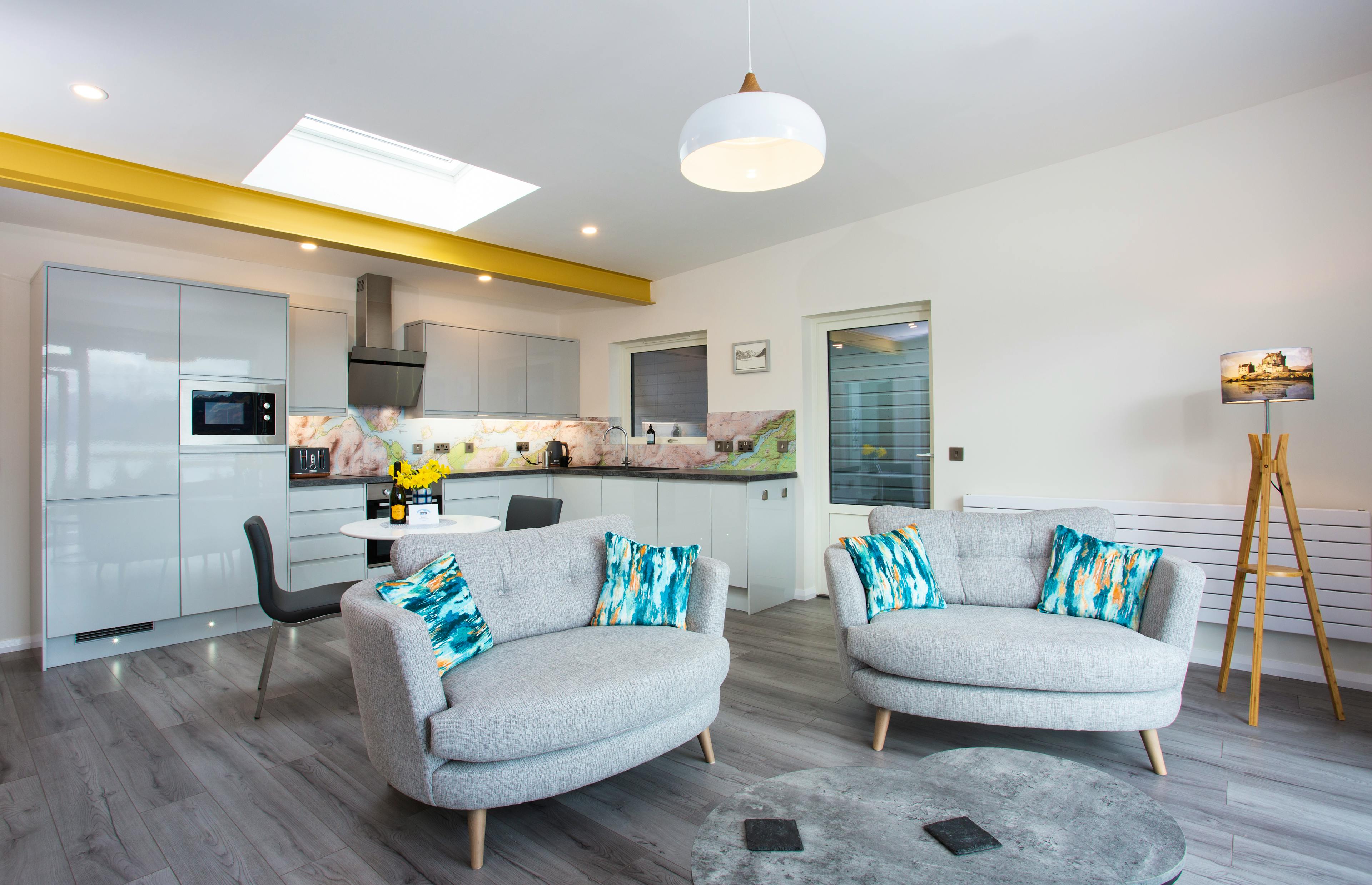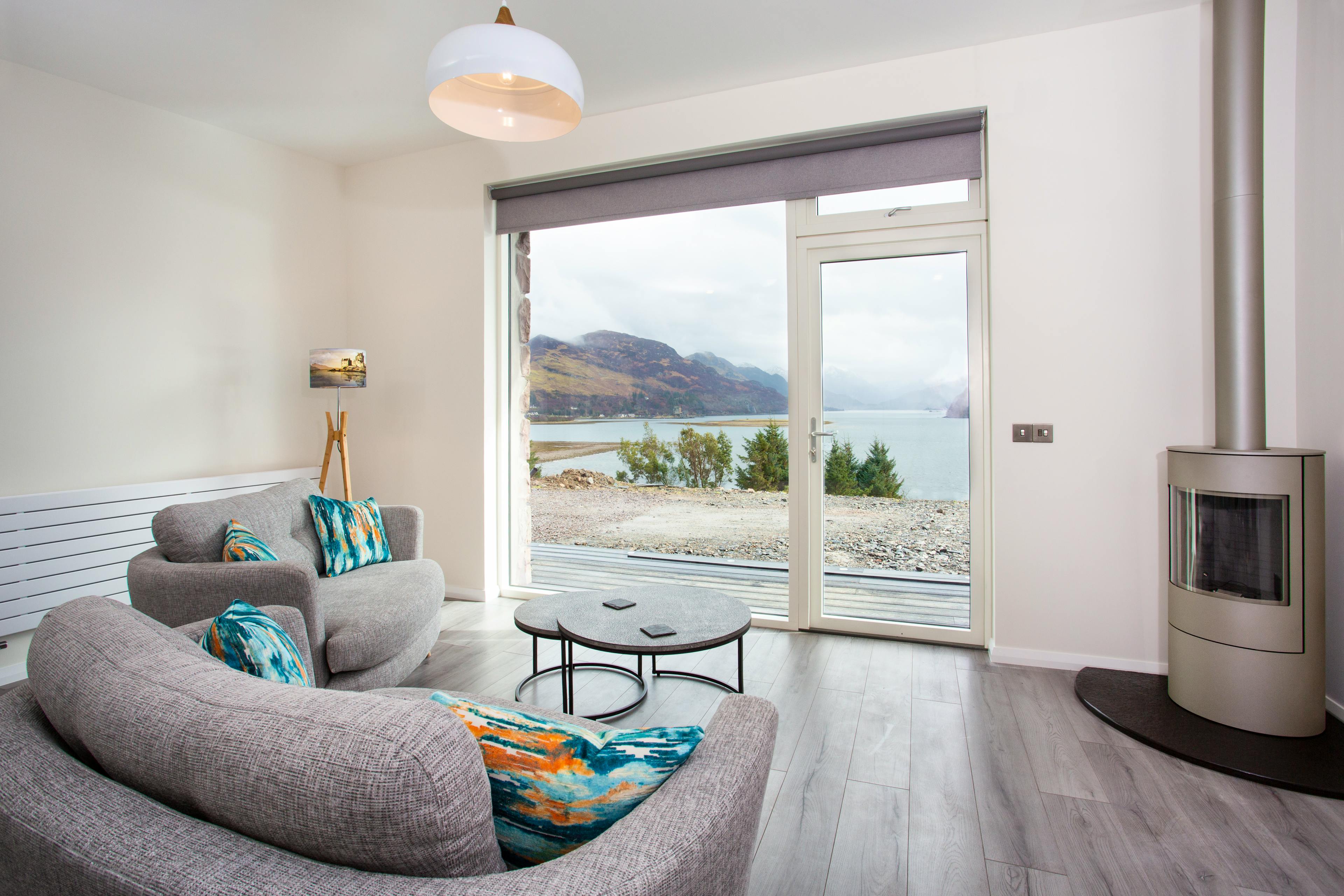 Luxurious and modern one bed cottage with stunning views, hot tub, gas stove and walk in rain shower in the heart of Lochalsh & Skye, Scotland.