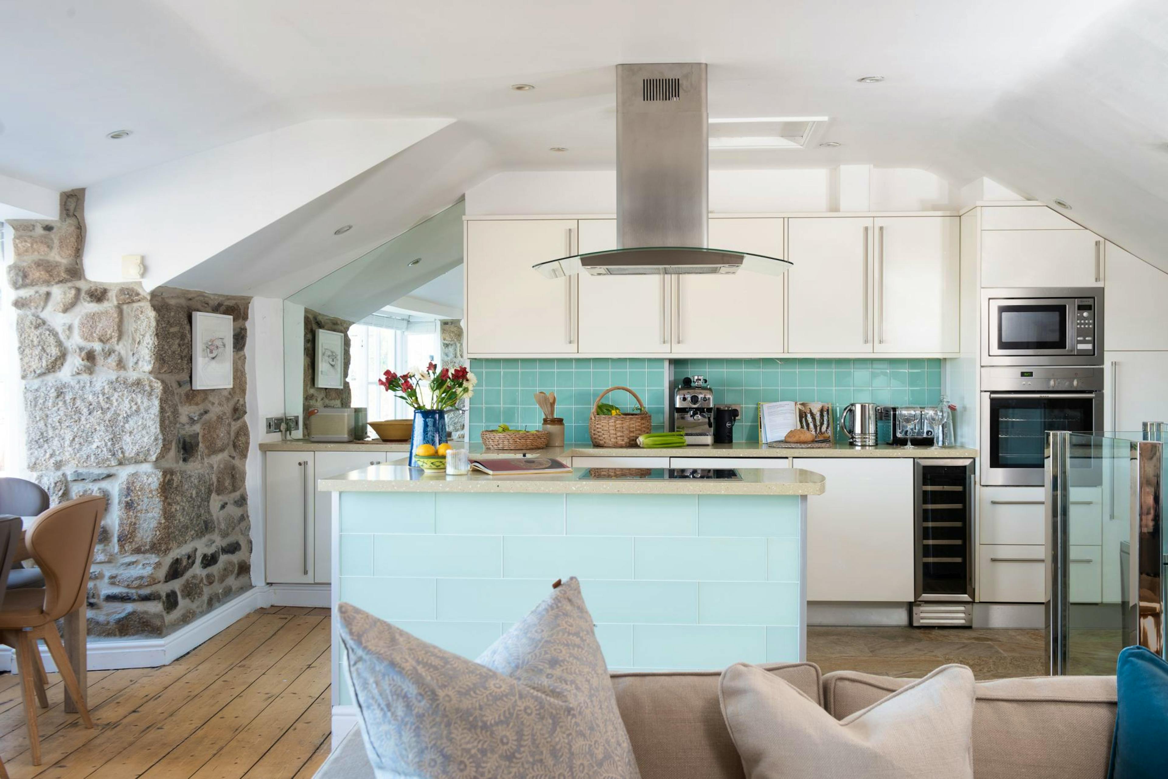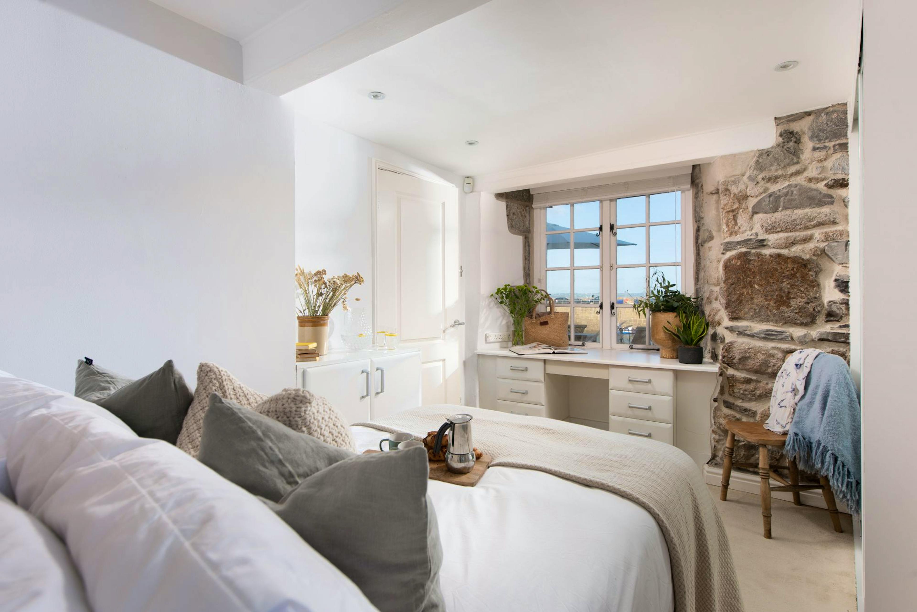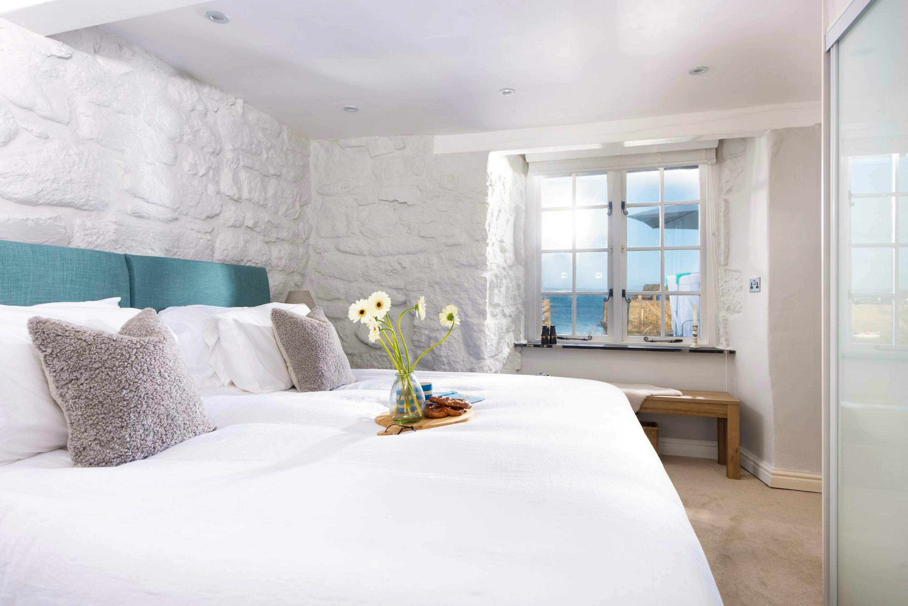 Tide’s Reach; a beautifully revamped Lamorna stone cottage that sits right on the water’s edge of Mousehole’s picturesque harbour and just a minute’s stroll from the beach. All style, light and coastal charm, this is Mousehole at its best, a wonderful place where you and your family can steal away to for blissful relaxation with nothing but sky, sea and bobbing boats to keep you company in one of Cornwall’s best seaside villages. Days start with warm croissants bought from the local bakery which can be shared at the dining table overlooking the bay, and end with dinner outside on the front terrace as the sun sinks into the water. The hours between can be spent meandering Mousehole’s quaint streets or exploring south Cornwall’s magnificent coastline, towns, and beaches. Back home, laze back in the living room, pop your feet up with a good book and take in those incredible views. On clear days grab the binoculars and spot St Michael’s Mount in the distance, and if it’s chilly light the fire and get cosy. Whip up your own cheffy creations in the immaculate kitchen or retire to your gorgeous en-suite bedroom for an indulgent afternoon nap with the sound of the sea soothing you off to sleep. Eat, sleep, laugh and unwind, then wake up and do it all again; this wonderful home is the epitome of luxury coastal escapism.