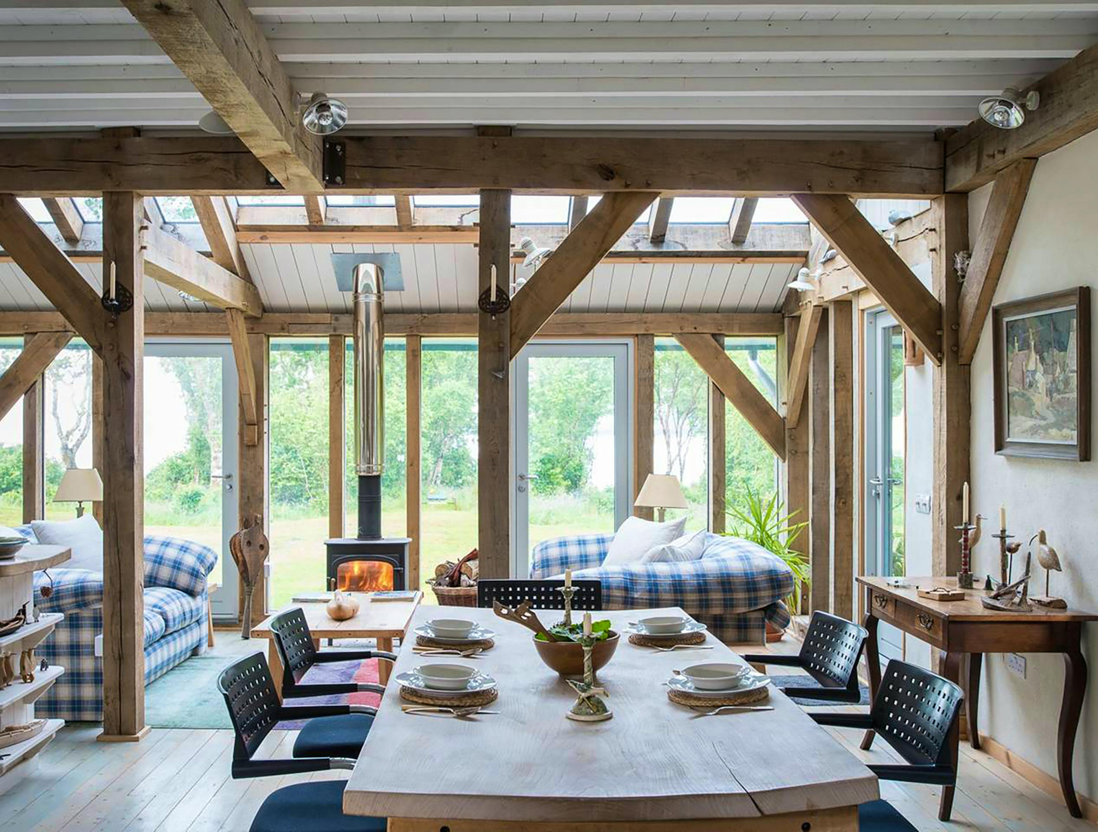 Superbly tranquil with wonderful views, Tigh Darach is a beautiful family holiday home designed by owner and architect Roderick James. Throughout the house guests will find everything furnished in a super stylish and clean finish, but with the cosiness of a true family residence. The house centres itself around an amazing communal space, which affords views of the stunning Sound of Mull. At the heart of the open plan living area is a wood burning stove and two large, cushioned sofas – perfect for a large family or group to gather around in to play games or read books by the fire. The main living space also includes a large dining and seating area, and a kitchen which comes with everything you'll need for a self-catered stay. However, if guests fancy treating themselves, there’s plenty of excellent restaurants nearby. Both the Whitehouse Restaurant in Lochaline and Cafe Fish in Tobermory are recommended by the owners. A beautifully bright, loft-style master bedroom and bathroom can be accessed from the main staircase. Here, as throughout the property, the rooms are finished with light white-wood panelling and there is plenty of storage space to put away clothing and hiking gear during your stay. Two other bedrooms (one with an en-suite bathroom) also open off from the living area. A further twin - ideal for children - can be accessed from either outside, the rear double bedroom, or the shower room. Children will no doubt love the secret door that gives access to the children's room, plus the swings and sprawling lawn areas in the garden which are fantastic to run around on. Adults will love the two outdoor verandas that run off the main living space – the perfect spot to enjoy a drink whilst watching the sunset. From the property’s outdoor grounds, guests may also spot Pine Martens and Swallows. Wildlife enthusiasts only need to head down to the Sound of Mull to find seals, dolphins and the occasional otter.