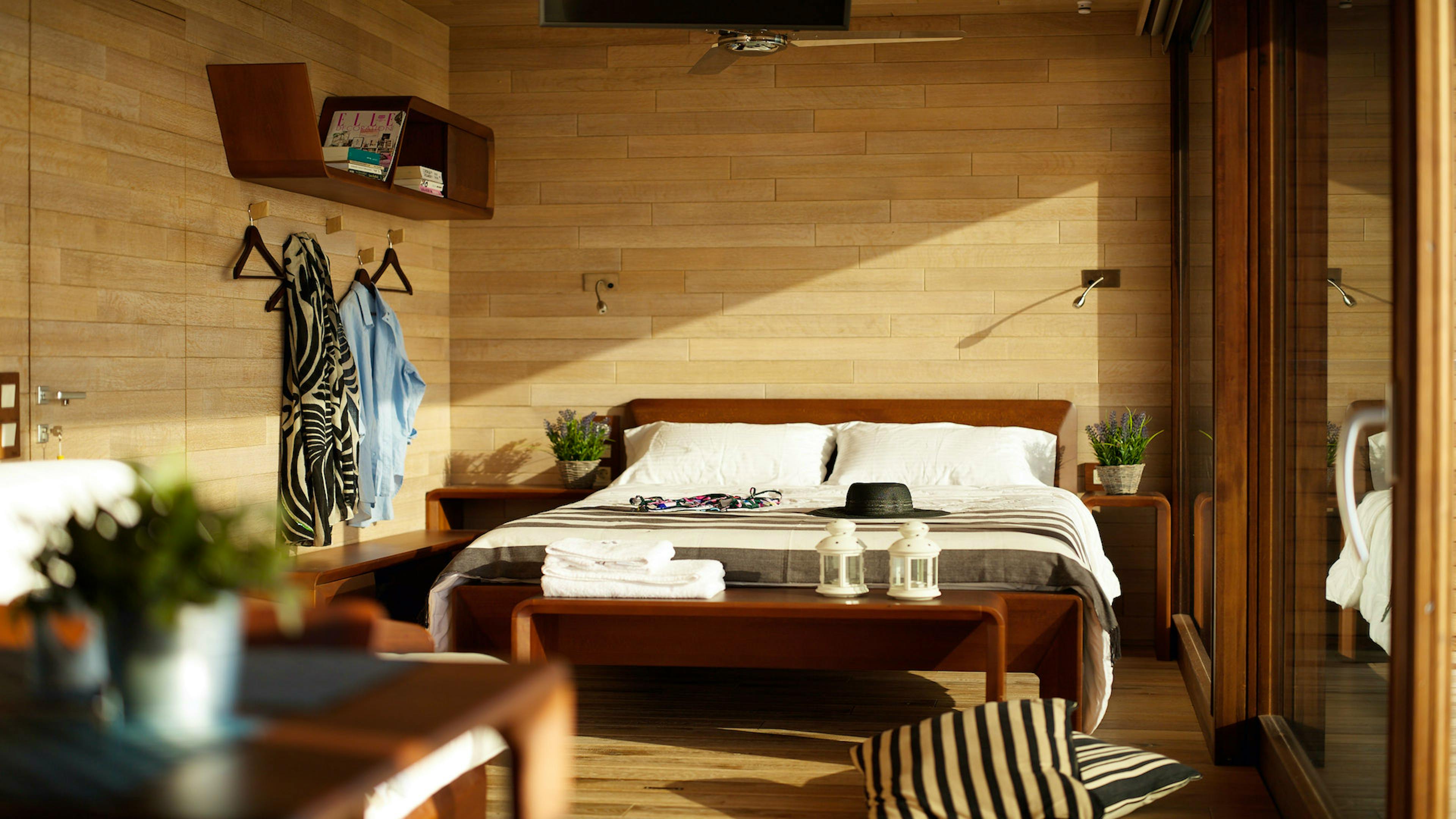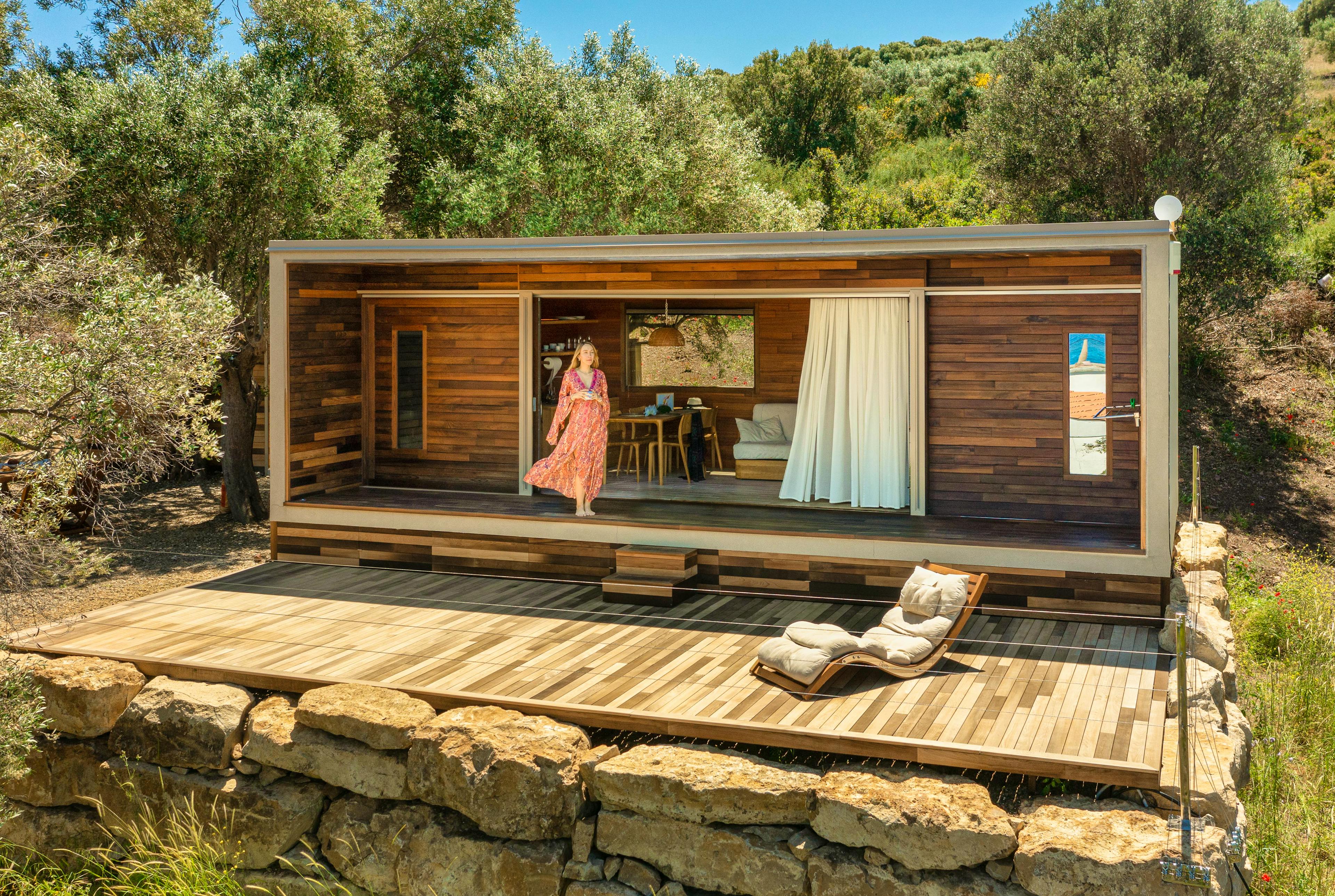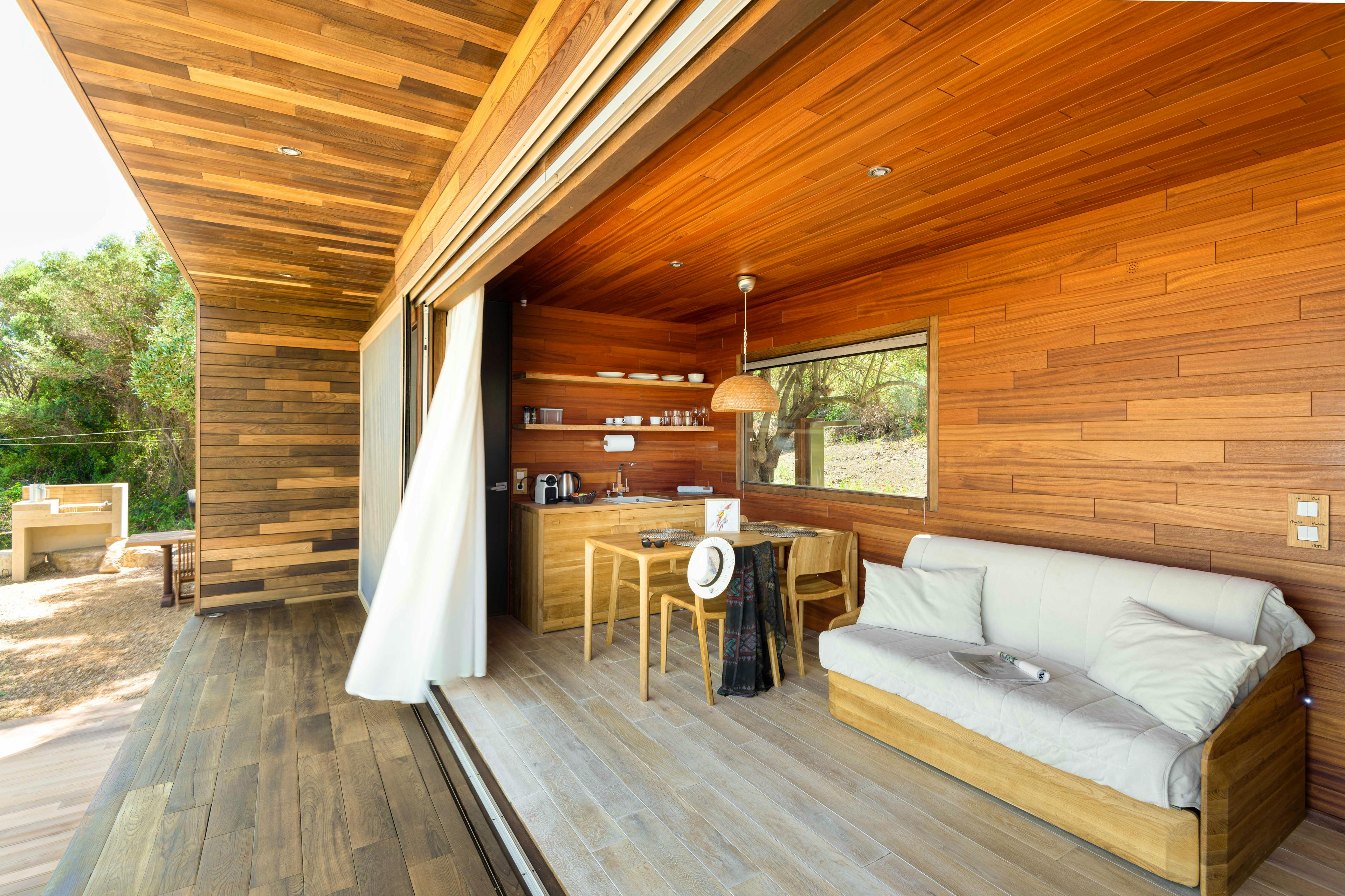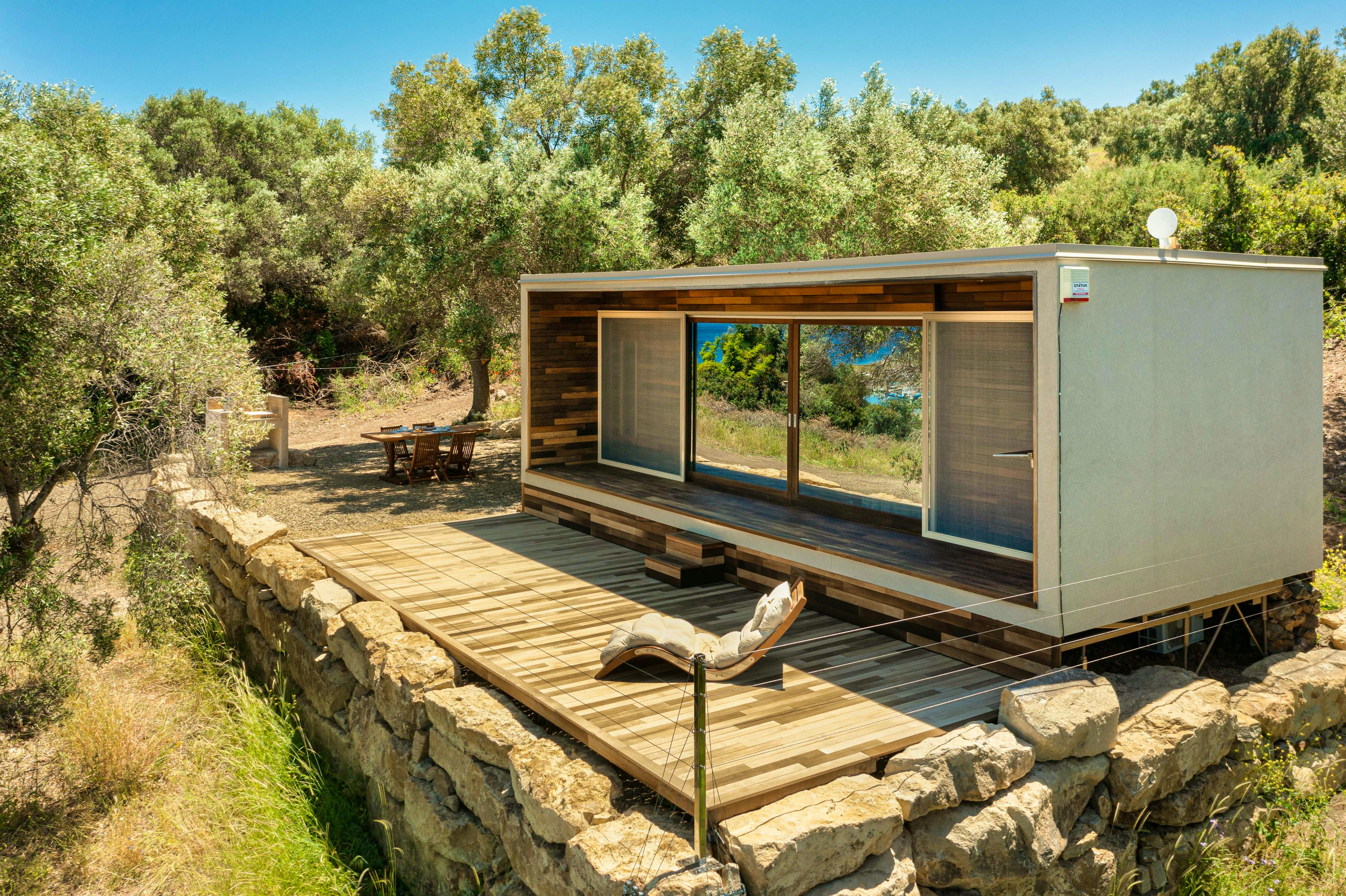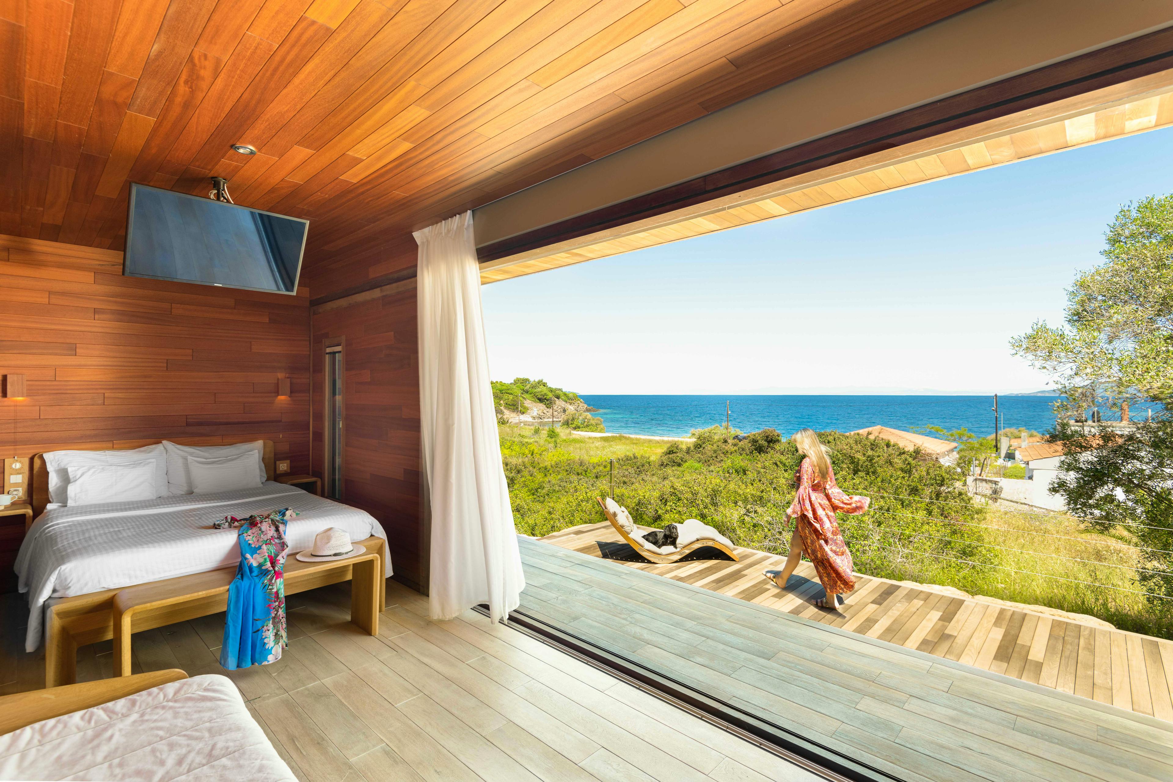 Bijou and beautiful wooden house overlooking nature with outdoor kitchen and seating area only 60 metres from the sea in Paliouri, Greece.