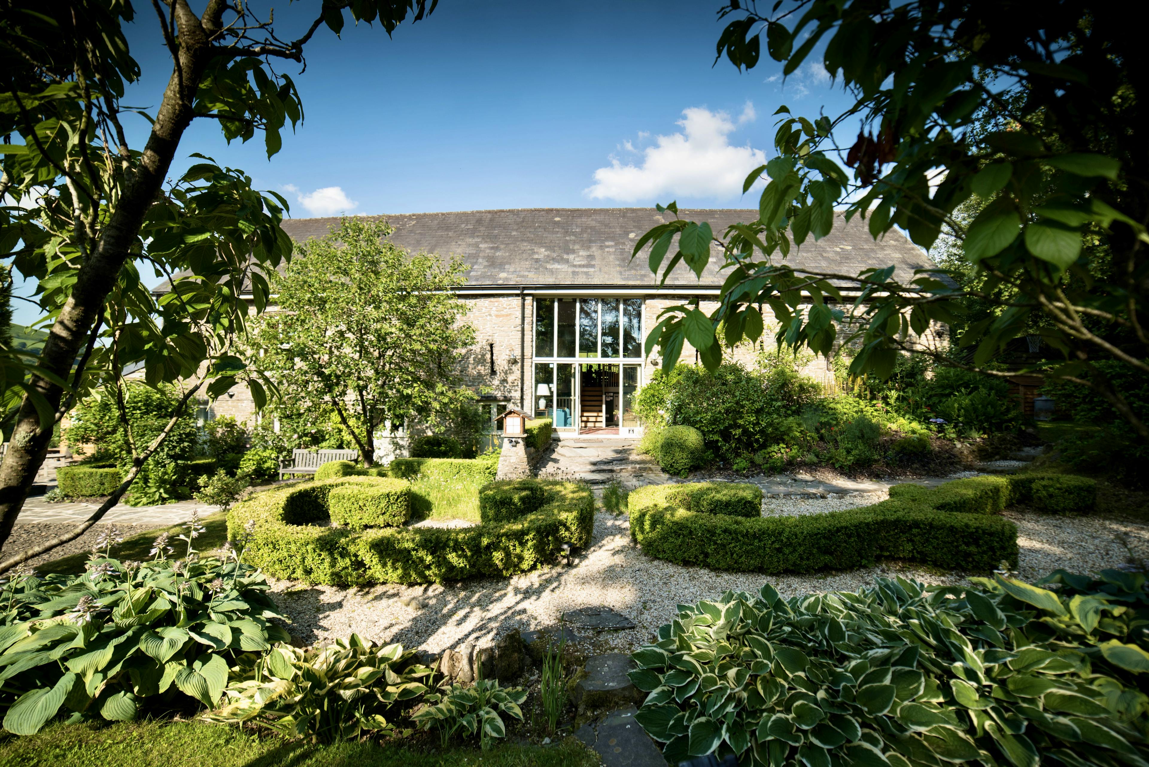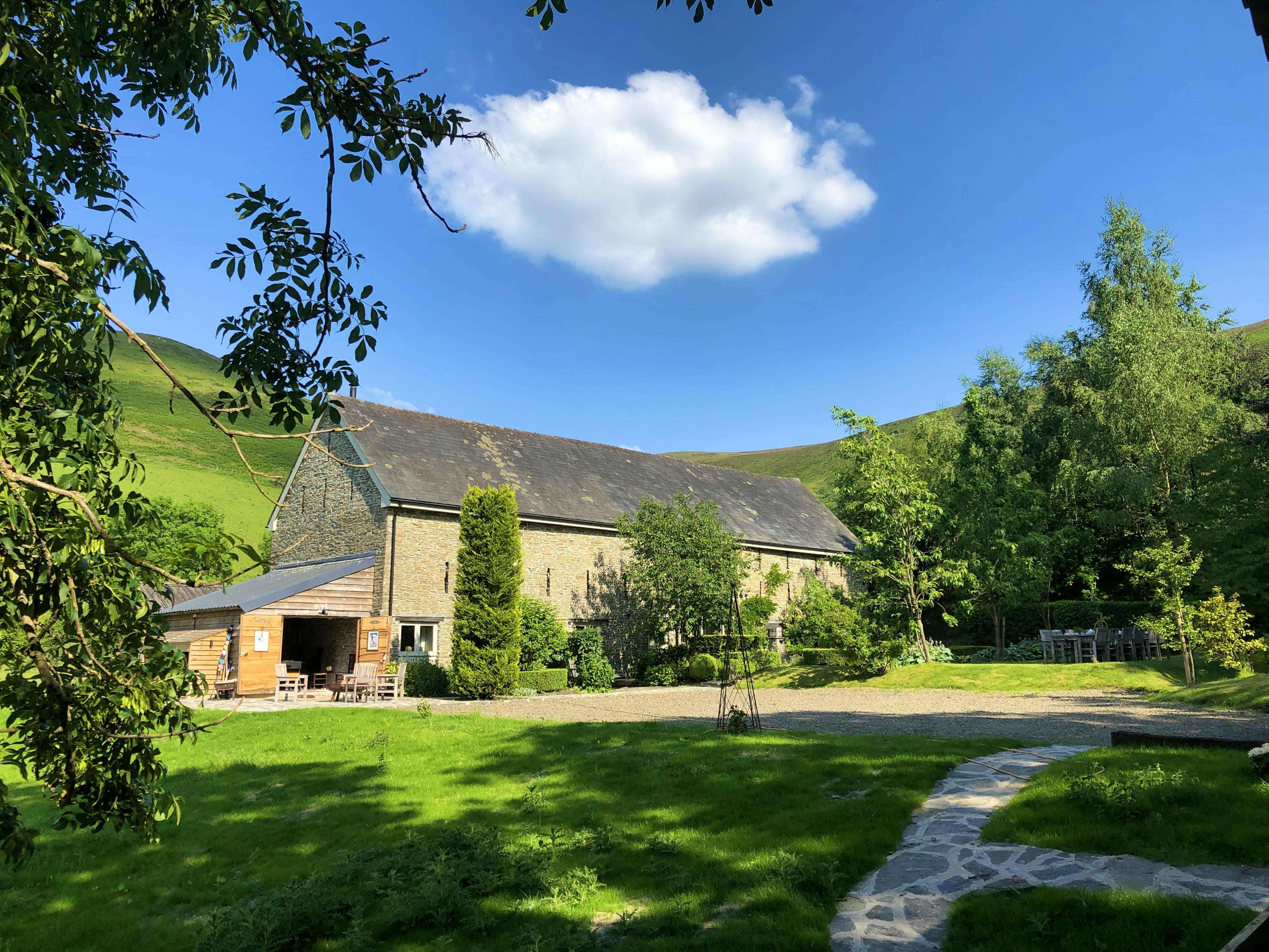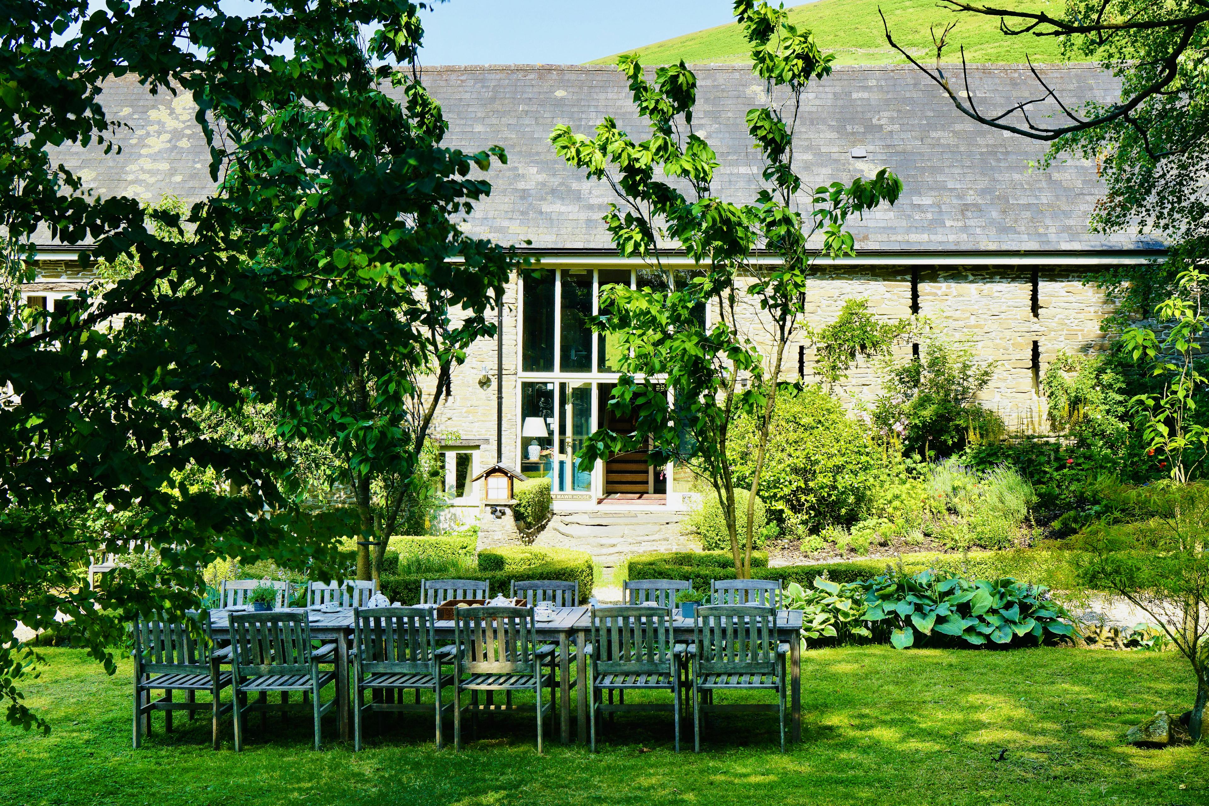 Unique and super-stylish holiday home for big groups near Hay-on-Wye with gorgeous gardens and a hot tub for some added luxury.