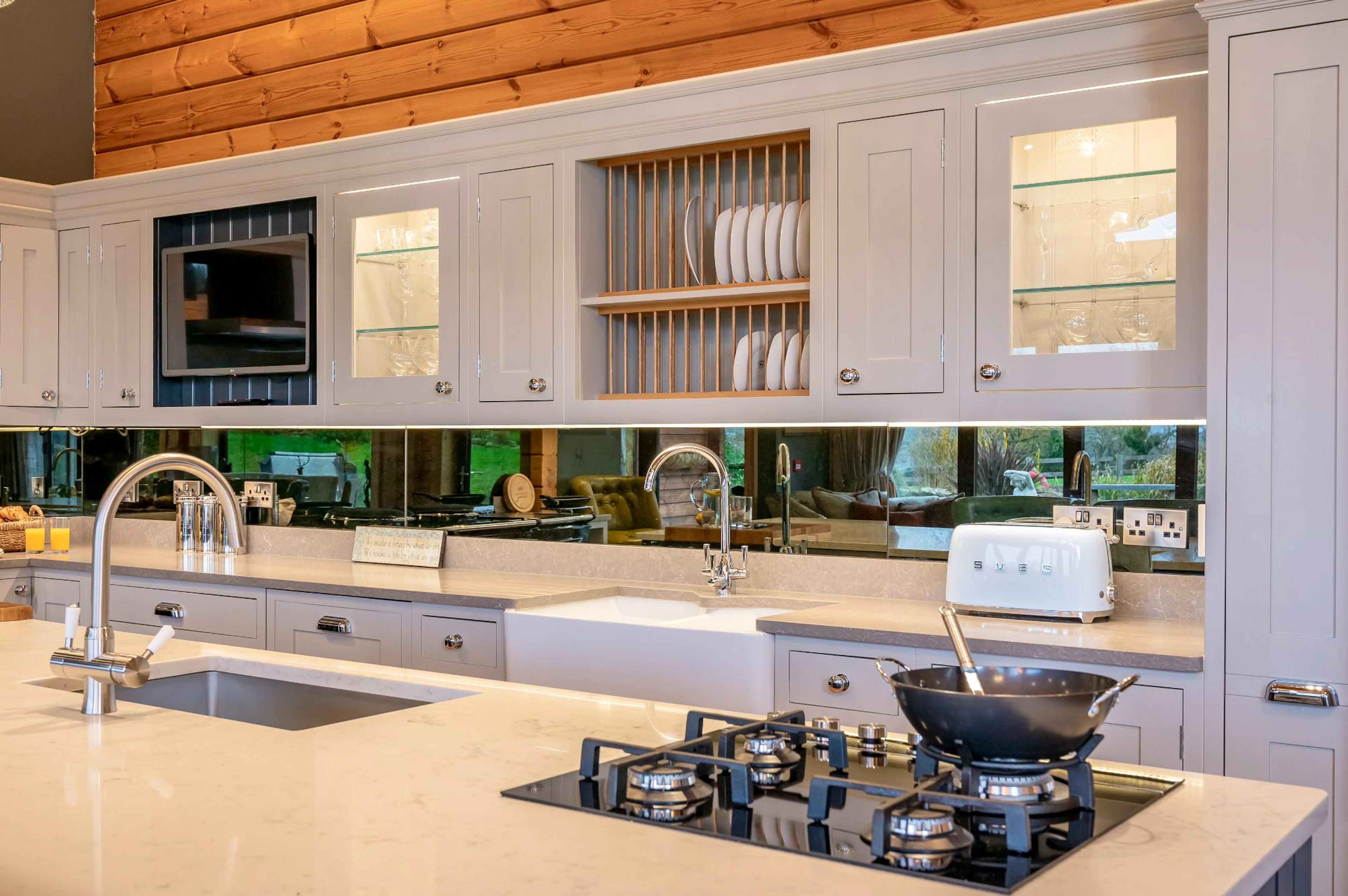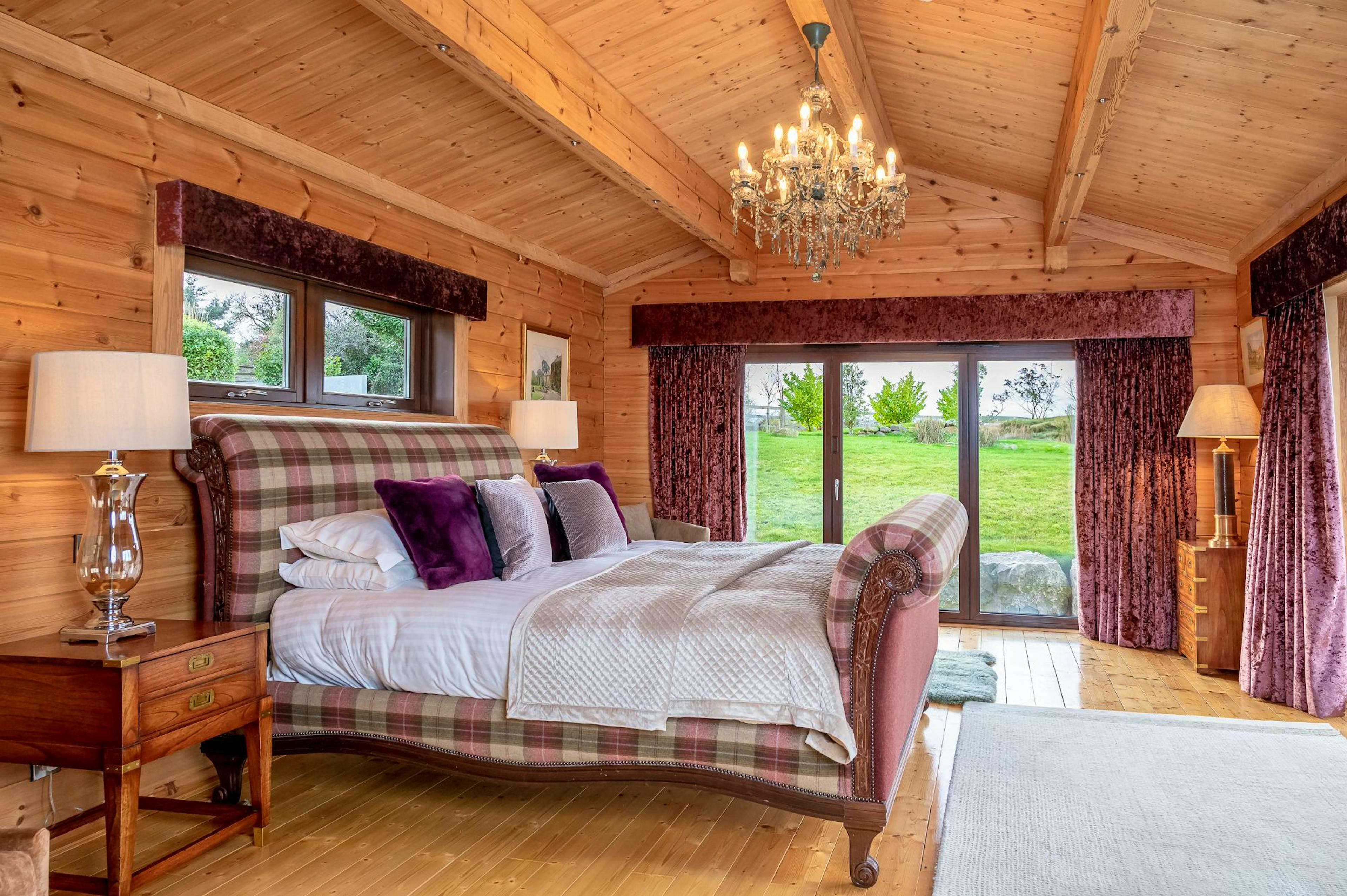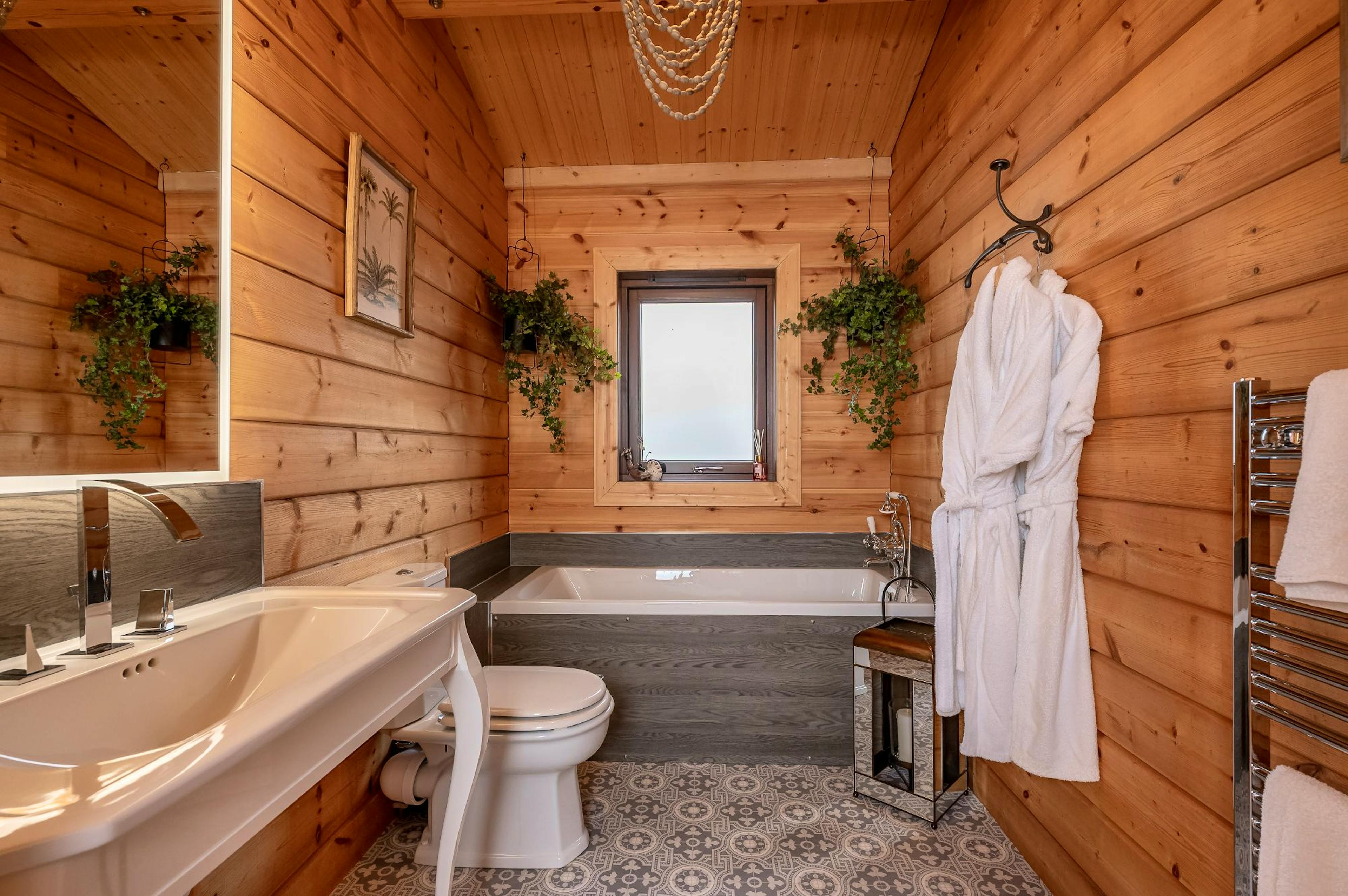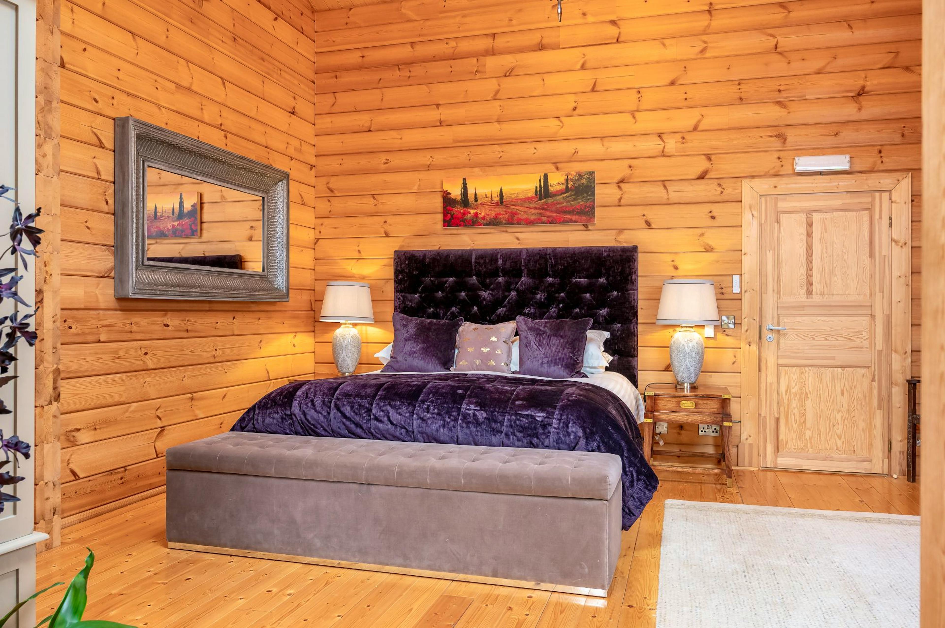 Valley View is a grand four-bedroom luxury log cabin, offering an exclusive winter retreat for up to eight guests. Available only between November and February, this lodge combines contemporary style, cosy interiors and spectacular outdoor features for a magical festive escape in the Yorkshire Dales. With its hydrotherapy hot tub, fire pit, panoramic views and elegant living spaces, Valley View provides the perfect setting for a luxurious seasonal getaway with friends or family. Inside, the lodge is designed for both comfort and indulgence. The large open-plan living and dining area features high ceilings, floor-to-ceiling sliding doors, underfloor heating and a roaring log burner, all framed by sweeping views of the Yorkshire hills. Two sitting areas ensure space for everyone to relax, while the state-of-the-art kitchen – complete with a four-oven Aga, American-style fridge freezer, ice-cold water dispenser and bean-to-cup coffee machine – makes self-catering effortless. For special occasions, a private chef can be arranged to provide fine dining, complete with dishwasher service. Valley View’s four sumptuous bedrooms each feature a king-size bed, stylish décor and ensuite bathrooms with freestanding baths and walk-in showers. The master bedroom offers copper bath luxury and bi-fold doors opening to panoramic hillside views, while the second bedroom boasts a ceiling window perfect for stargazing. The third features a four-poster bed and the fourth mirrors the master with views over the paddocks. Natural hues, fur throws and plush headboards ensure every night is restful and indulgent. Outdoor living is equally spectacular. The private enclosed garden includes a hydrotherapy hot tub, fire pit, rattan seating and a four-burner gas BBQ, all framed by the rolling Yorkshire hills. Water features, including a small pond, add to the serene ambiance, while guests are welcome to explore the paddocks and grounds, home to Sun Hill’s trained racehorses. Just four miles from Leyburn, Valley View combines seclusion with access to local attractions. Enjoy shopping at boutiques or Campbell’s of Leyburn, sample artisan chocolates from Inspired Chocolate, visit Tennant’s auction house and café, or explore the weekly Friday market. With its combination of style, comfort and seasonal exclusivity, Valley View is the ultimate luxury winter lodge for creating unforgettable memories in the Yorkshire Dales.