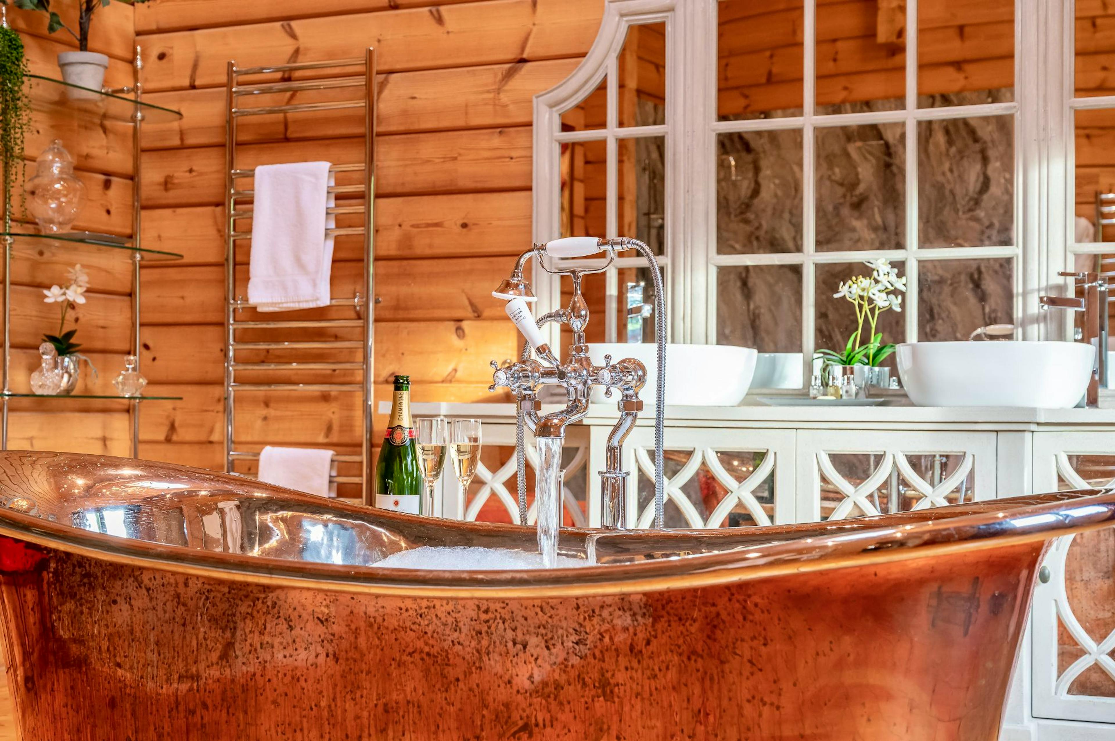 Four sumptuous bedrooms, each with king-size beds and en-suite bathrooms featuring freestanding baths and walk-in showers, including a copper bath in the master.