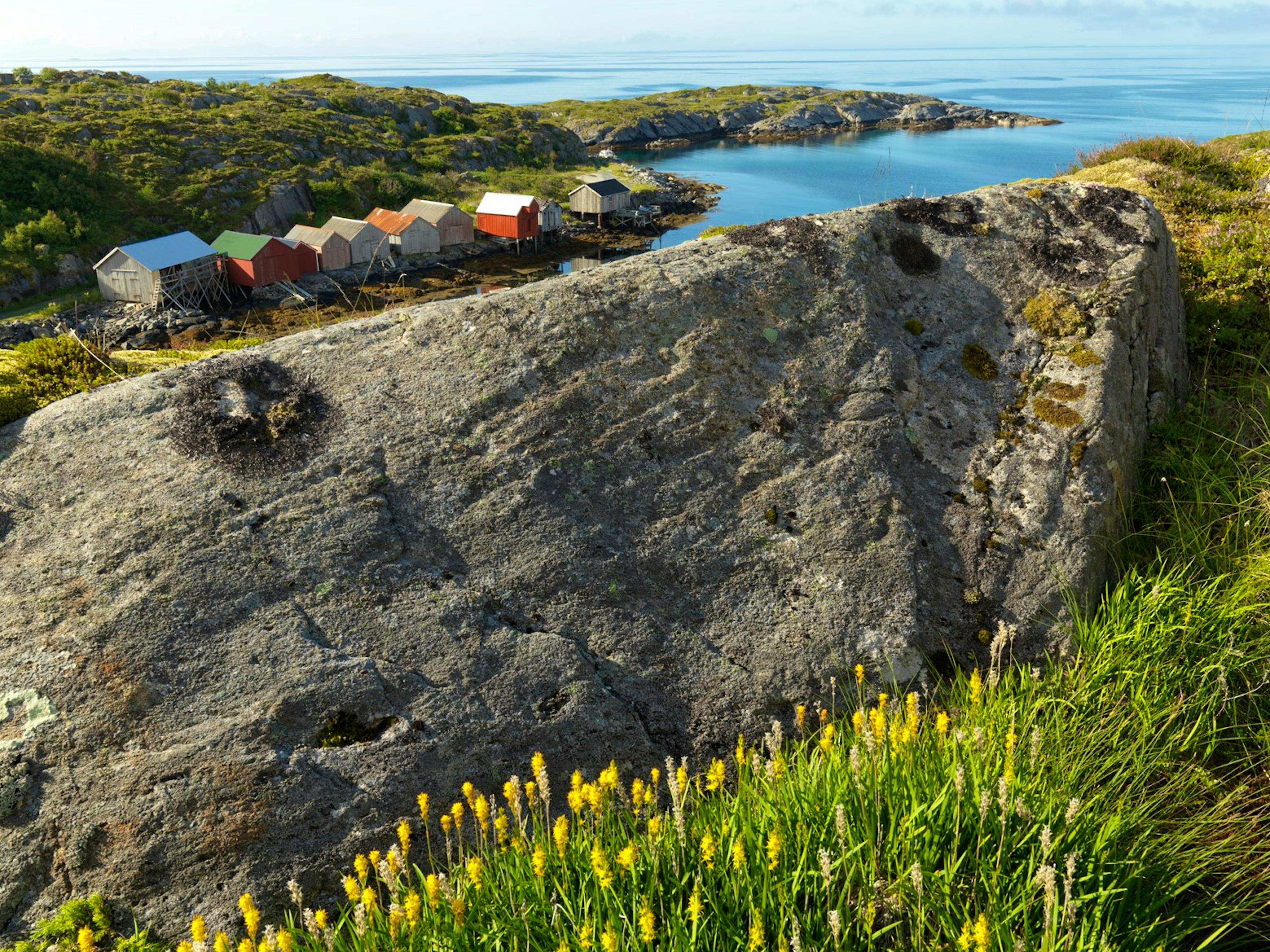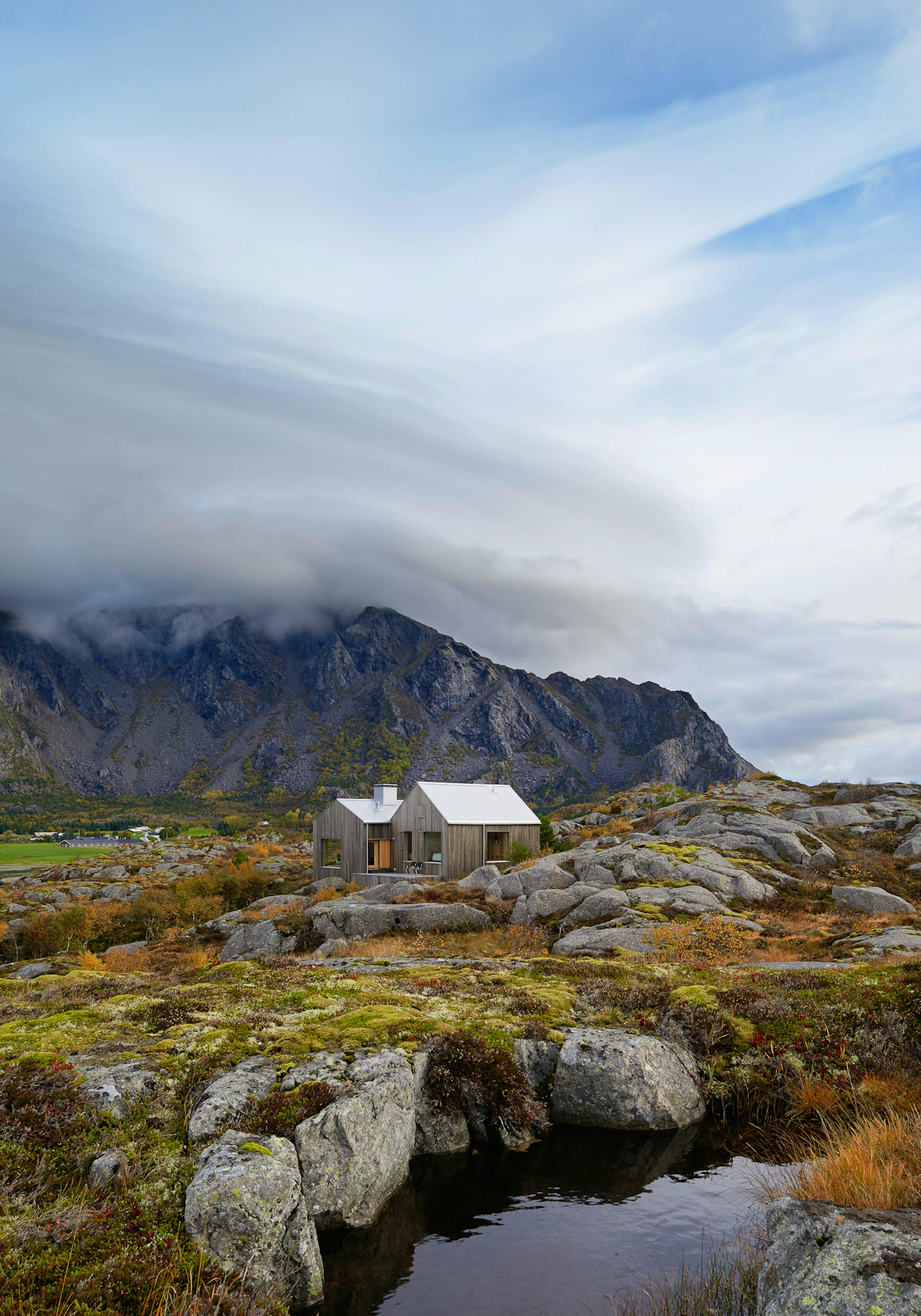 Perched atop the craggy rocks of this ancient landscape sits a property that astounds as much as it puts at ease. Vega Island Hideaway sits on Norway's Vega Island, itself part of a series of 6,500 islands occupied since the Stone Age and boasting the status of "UNESCO World Heritage Site". The cabin sleeps up to six guests across three bedrooms - or seven, if you request a child's travel cot. Not far from the artic circle, this is a stay that is for those who seek the stillness and tranquillity of northern life. And if you're lucky, in the winter months you may sit under the aurora borealis. Drawing inspiration from the traditional "naust" boathouses found throughout Norway's fishing villages, the exterior of the house blends seamlessly into the island terrain. The interior is of a bright and neutral pallet, directly referencing both traditional and modern Scandinavian designs. Picture windows are found throughout, from which you can survey the stunning and rugged scenery beyond. Comprised of two levels, the ground floor houses an open planned living area which includes a cosy sitting room, beautifully designed kitchen, and a dining table. This is all orientated around the stone fireplace, creating the house's main focal point. Ascend to the upper level to access the two double bedrooms and bathroom - containing a shower, sink, and toilet. The vaulted ceilinged attic also houses another small double bedroom. Step outside and onto the terrace, where you can survey the gorgeous vistas while enjoying a night cap with your loved ones. While Vega is not the busiest the whole year round, it is most popular in July and August. Everything is open and the weather is milder from May to September, while Autumn brings amazing sea storms. December and January are snowy and the island tends to close down, but if you stock up then you may be lucky enough to witness the world famous Northern Lights. Fishing is the main source of industry on the island, and we recommend that visitors cast a line, too. Well worth a hike is Trollvasstinden, the island's highest mountain. In the spring, Vega is wonderful for birdwatching, while in the summer the stillness of the water lends itself perfect to a kayak - or snorkel - in the coastal waters. 20-minutes away in Viksås, Vega Havhotell is run by the award-winning chef Jon Aga. Here, guests can enjoy an abundance of fresh and varied produce.