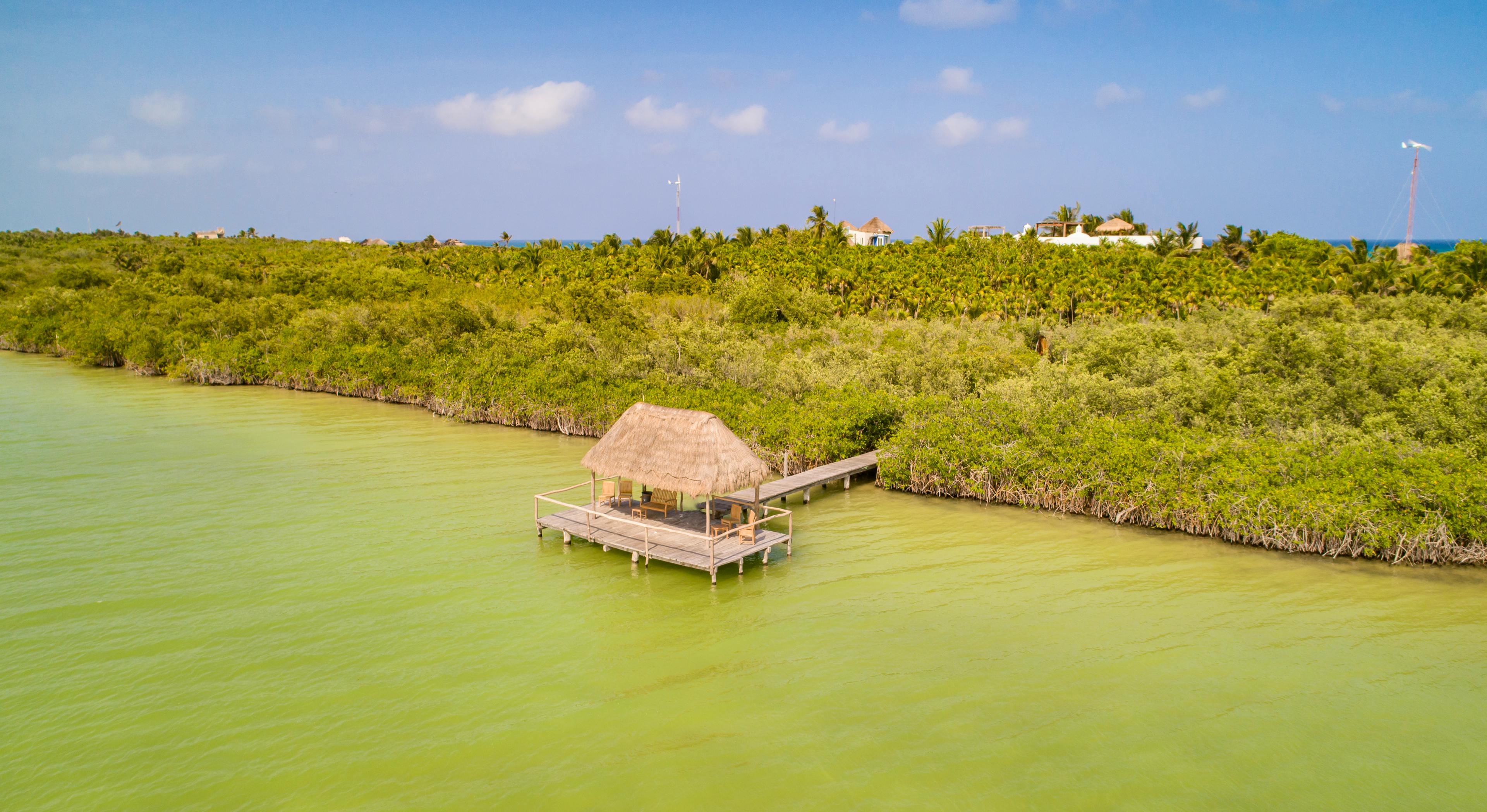 Groups of up to eight guests can enjoy this marvellous, stylish villa that is tucked away on the Caribbean coast of Mexico. With gorgeous interiors and some amazing outdoor social spaces, this is the perfect holiday home for groups looking to escape to a tropical beach and relax and unwind with their loved ones. The villa has a number of fab social spots including the marvellous, sunny roof terrace, complete with sunbathing areas, a dining space and even a swimming pool. Here you can relax with a good book and a glass of something delicious, cool off in the pool or spend some time soaking up the rays chatting with your nearest and dearest. There are also some stunning shaded terrace areas, with their day beds, beanbags and hammocks, providing you with yet more space to unwind and relax. And, to top it off, you're only a short hop to your very own private sandy beach and dock in a truly picturesque lagoon. Stepping inside the villa, guests will love whipping up delicious feasts in the amazing, modern kitchen, which has all the amenities you'll need to prepare delicious feasts during your stay. This room is also beautifully sleek and stylish with dark work surfaces and atmospheric lighting. Enjoy preparing dinner in the well equipped kitchen, which you can enjoy on the large dining table that shares the space or outside in the fresh sea air. There's also a large salon/lounge area with some comfy seating for socialising. When bedtime beckons, the villa has four double bedrooms that all face the beach. Each room has an ensuite bathroom for added privacy as well as air conditioning to keep you nice and cool when the weather's warm. Some of the bedrooms also have their own TV for added entertainment. This gorgeous villa is sitting in an absolutely spectacular location, nestled in the natural surrounds of the Sian Ka’an Biosphere, with the Caribbean Sea in front and nature reserve to the rear. You can spend days lounging on your private beach, but there is plenty to see and do in the area. You're not far from the Tulum ruins, which are the remains of an ancient, pre-Columbian Mayan walled city. These remarkable ruins are well worth a visit and can be accessed via bicycle or taxi. You may also wish to visit the Sian Ka’an biosphere, which is a beautiful World Heritage site. This natural wonder contains tropical forests, mangroves, marshes, a barrier reef and a range of animal species including dolphins, tropical birds, crocodiles, sea turtles, monkeys and tropical fish.