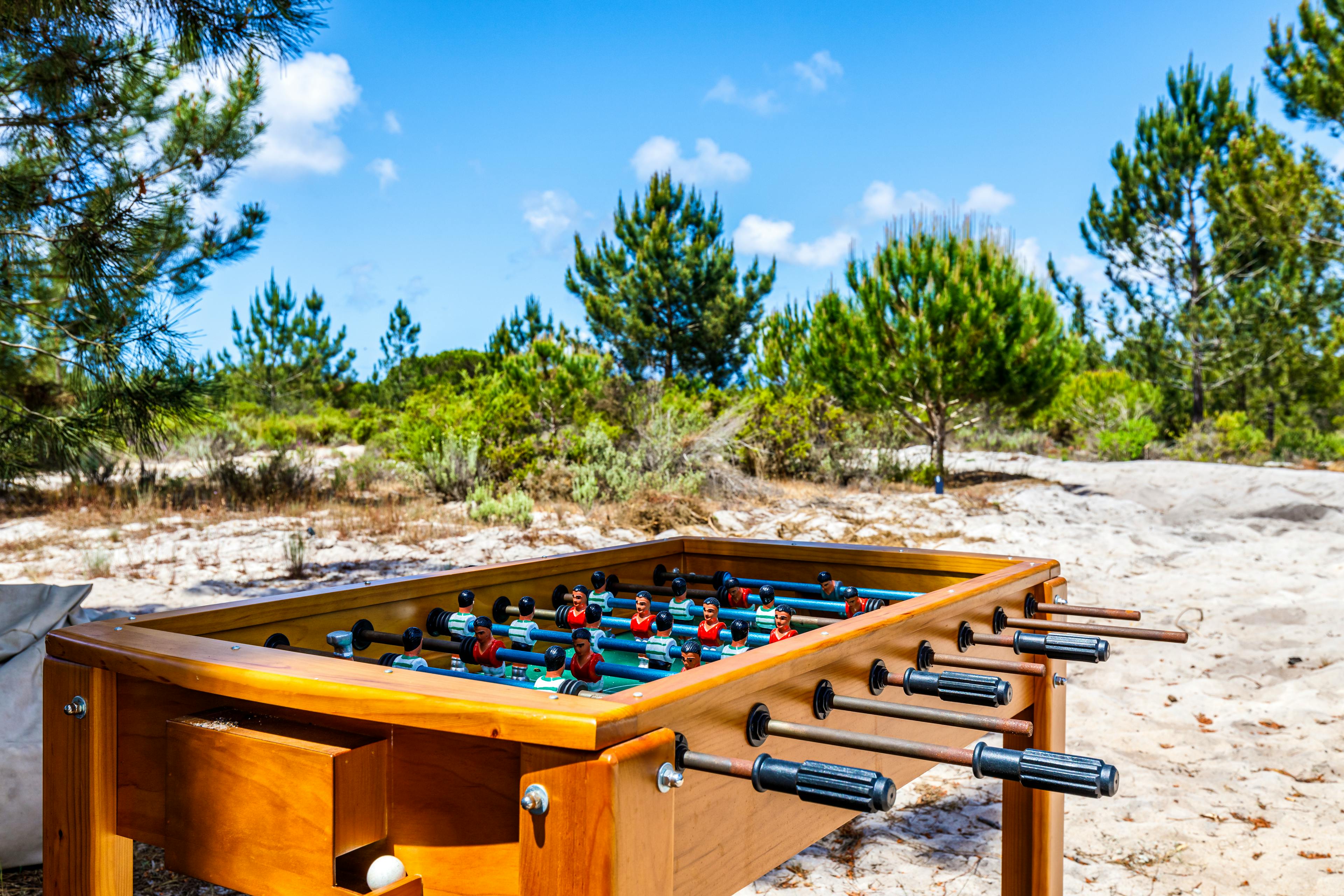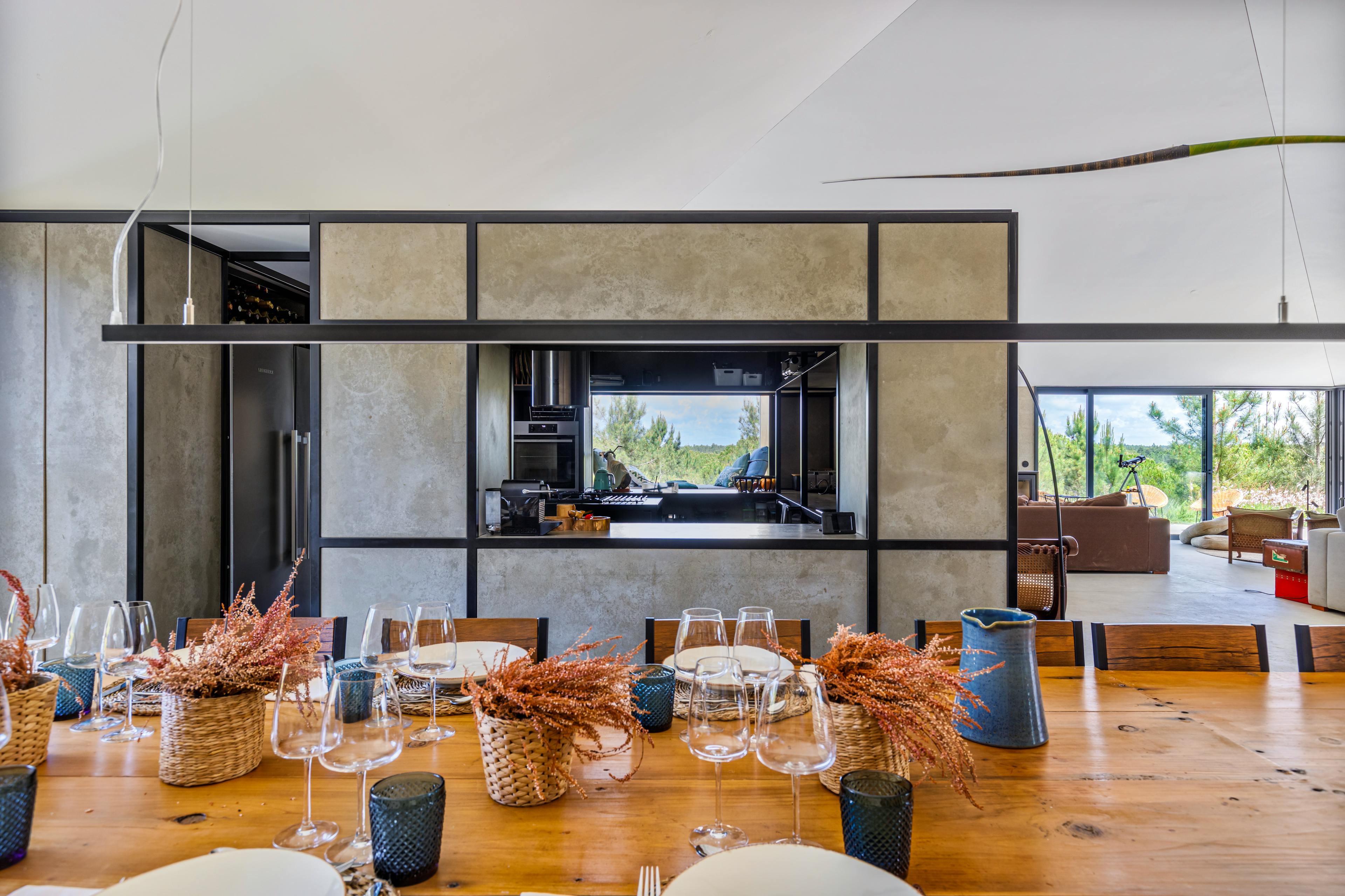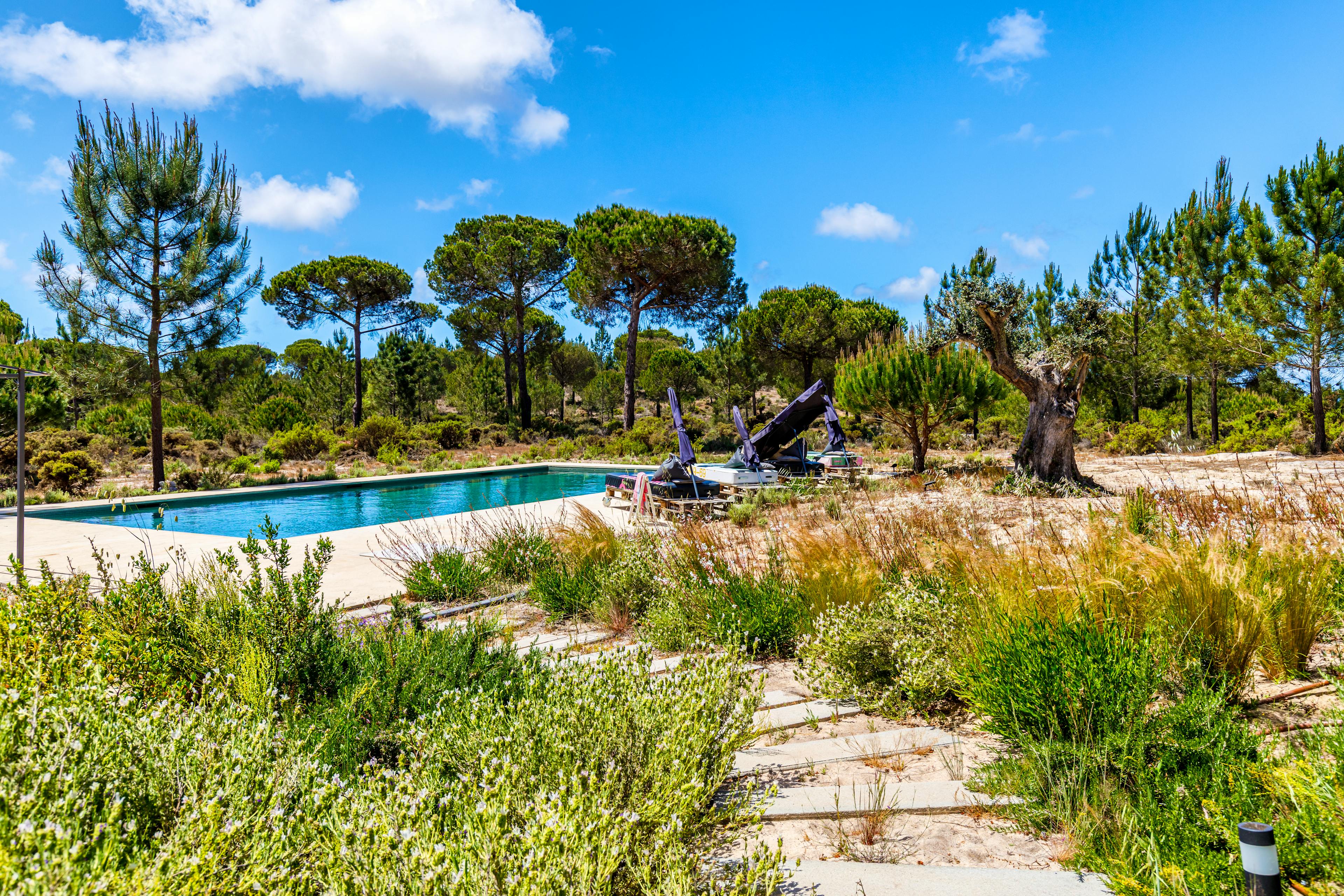 Nestled amidst some beautiful nature, Villa MAM offers a peaceful escape with its five comfortable bedrooms designed for peace and relaxation. Surrounded by olive and pine trees, this property provides a retreat from the hustle and bustle of daily life and is an opportunity to reconnect with nature. Located in a prime spot, Villa MAM invites guests to explore the region's natural beauty. Whether you prefer hiking, birdwatching or leisurely nature strolls, there's something for everyone. Upon arrival, you'll find a spacious living room with panoramic views and a supremely stylish, well-equipped kitchen for preparing meals with local ingredients. The interior design throughout is super modern and fabulously stylish. Beautiful tiled floors combine with exposed block walls to give the space a cool, contemporary feel. Add to this the huge, rustic dining table and the carefully chosen furnishings throughout and you’ve got a truly special home from home. Step outside and you’ll love the large swimming pool, which is the perfect place to unwind after a day exploring the local area. There is also plenty of space to sit out in the sunshine and even outdoor table football should you feel competitive. Beyond the property, guests can discover the local culture and natural attractions. Options include visiting Portugal's largest beach, exploring the village of Comporta, or exploring historical sites like the Troia Roman ruins and Alcácer do Sal. Villa MAM offers a blend of luxury, comfort, and natural beauty, making it an ideal place to escape daily stresses and reconnect with nature in a tranquil setting.
