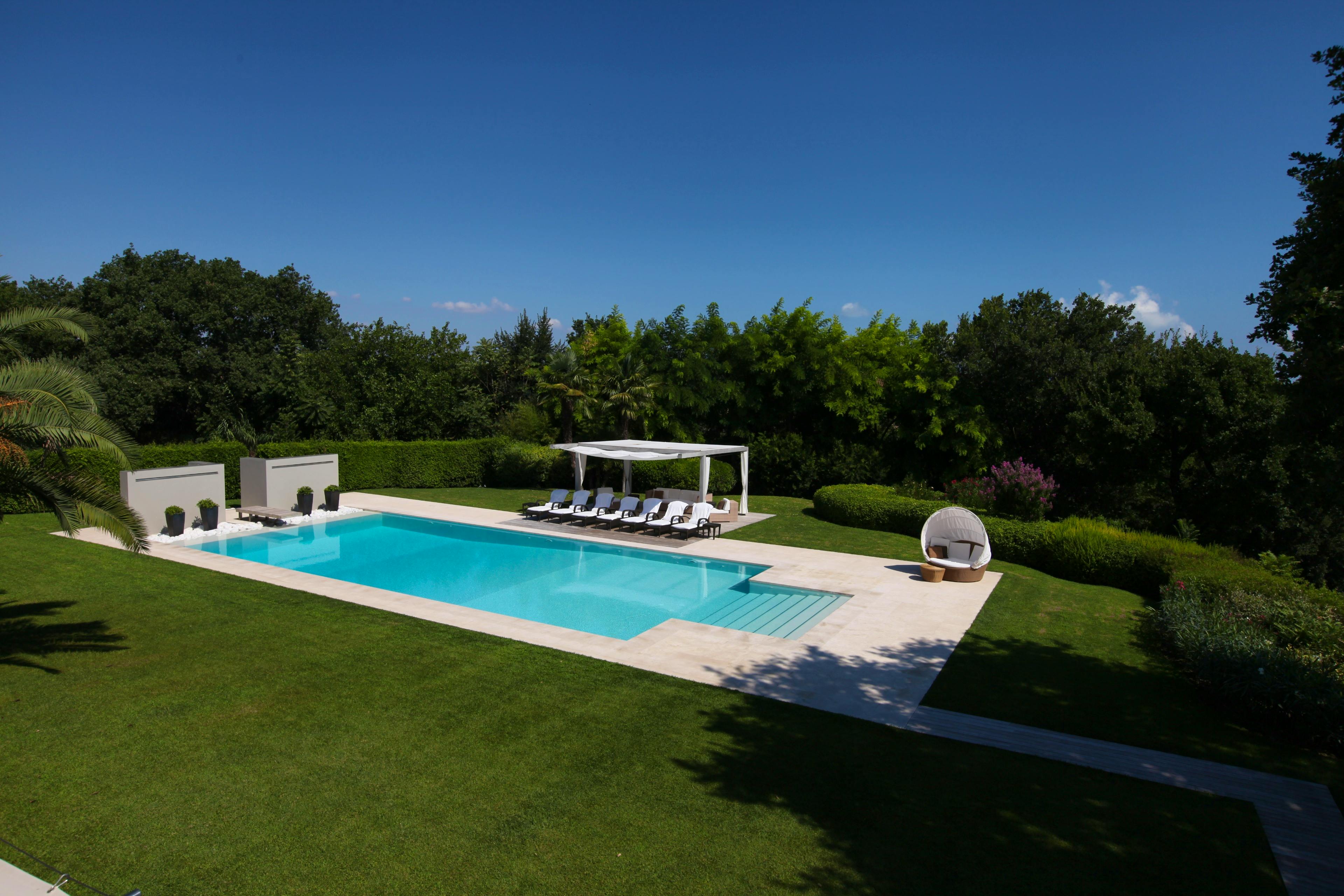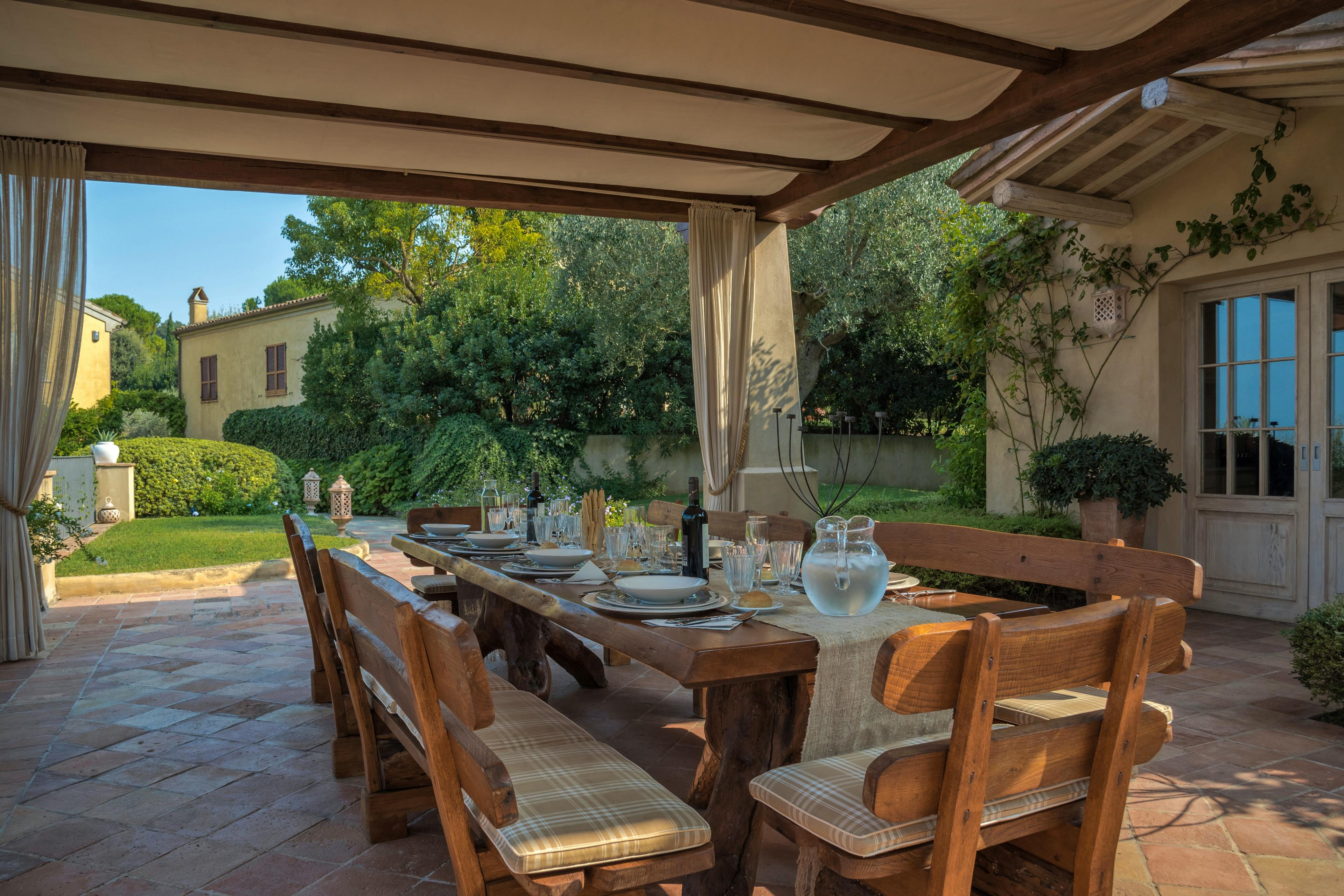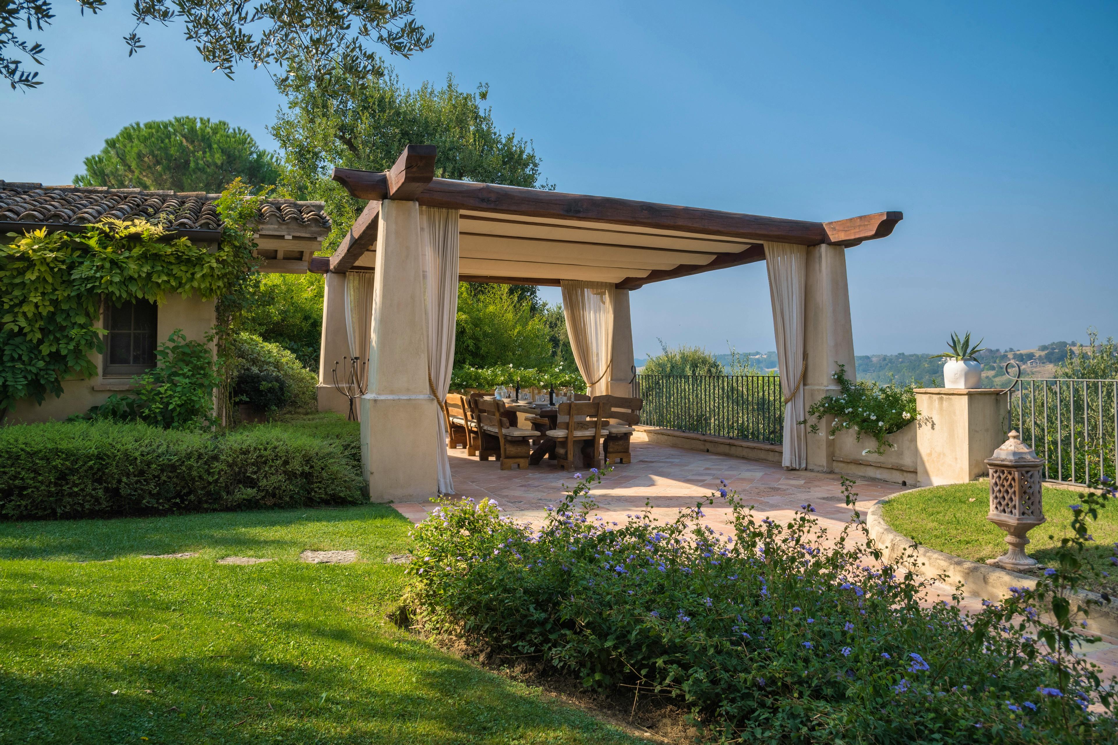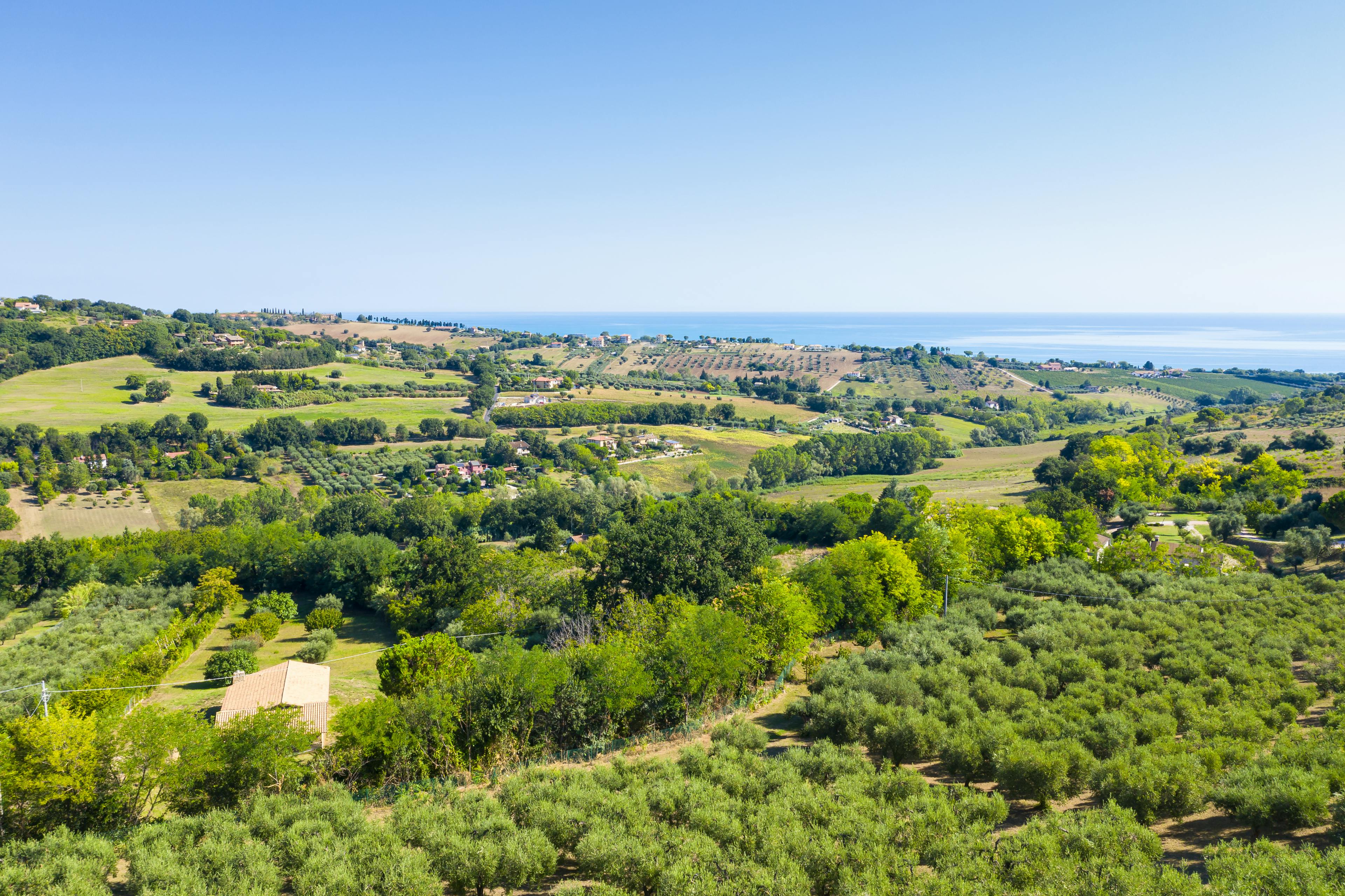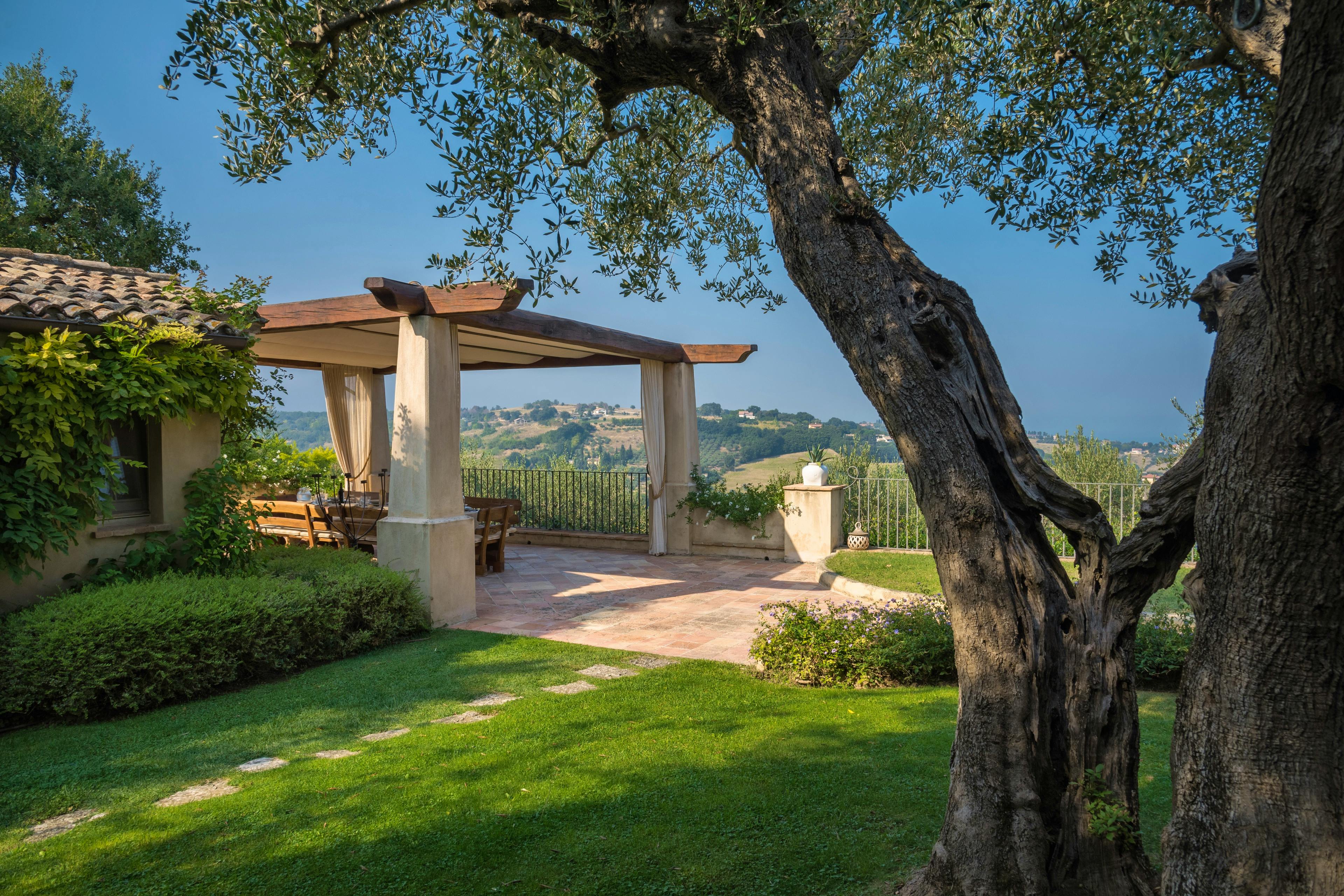 Gorgeous Italian villa nestled amidst vineyards and olive groves in Le Marche with a beautiful pool, tennis court and exquisite interiors.