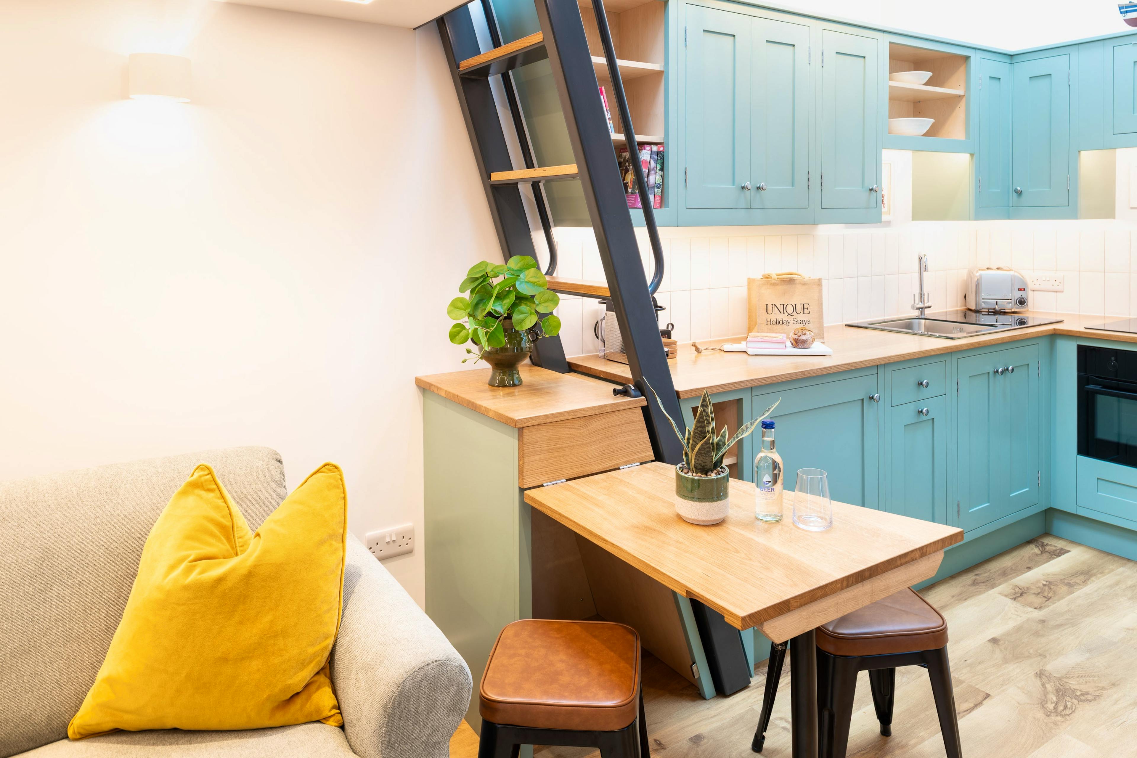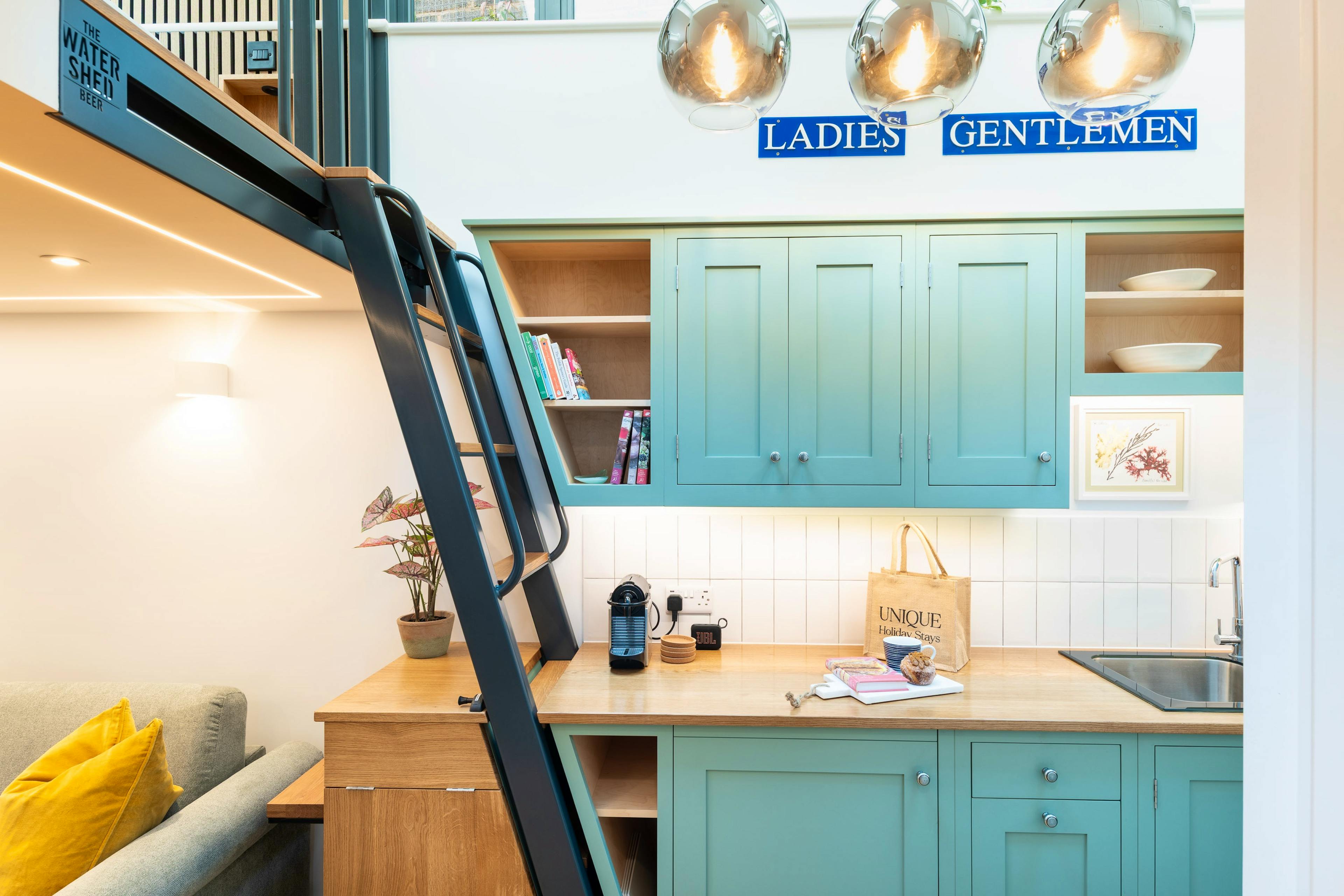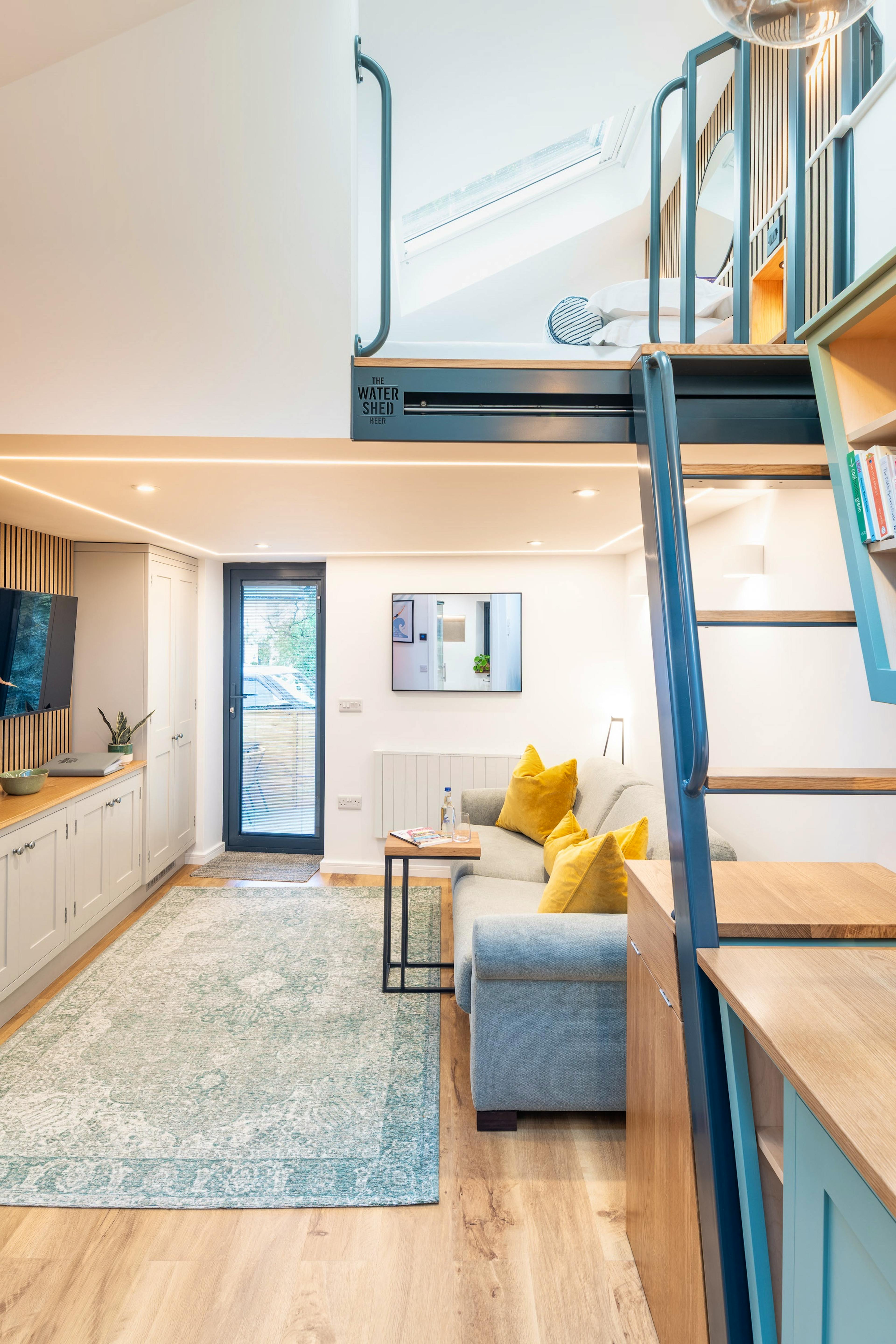 The Water Shed is a lovingly transformed former public loo that is now a boutique bolthole just moments from the shimmering waters of Beer’s pebble beach. Small but stylish, this clever coastal escape blends high-end design with a playful spirit, giving you a front-row seat to village life on the Jurassic Coast. Step inside and you’ll feel the calming pull of seaside living, where every inch has been thoughtfully crafted to make your stay feel special. The interiors are a masterclass in compact luxury. The lounge invites you to settle in with its cosy sofa bed, warm lighting and soft textures, while the fully fitted kitchen offers everything you need for laid-back breakfasts or quiet evenings in. Neutral tones and natural materials create a soothing atmosphere, elevated by bespoke fittings crafted by local artisans. Solar-powered air conditioning keeps the space perfectly comfortable year-round, a subtle reminder that this little retreat is quietly innovative. When it’s time to turn in, glide up the state-of-the-art roll-out stairs to the inviting mezzanine. Here a dreamy double bed makes the most of the height and cosy nook-like feel, promising restful nights after coastal rambles. A third guest can snuggle into the lounge’s sofa bed, making this a great base for couples, friends or a teen adventurer along for the ride. The sleek bathroom completes the space with its luxurious finish, making every shower feel spa-worthy. Outside, the private courtyard is your sun-dappled sanctuary. Sip your morning coffee listening to Beer Brook drifting by, bask in a lazy afternoon with a book or savour pre-dinner drinks before wandering down to the seafront for fish straight off the boat. With the beach just a short stroll away and the village unfolding around you, it’s easy to immerse yourself in the relaxed charm of Beer. From walking the dramatic cliffs of the Jurassic Coast to sampling seafood, pottering around independent shops or watching golden sunsets melt into the horizon, this little corner of Devon has plenty to explore. The Water Shed puts you right at the heart of it, offering a unique and luxurious base for your coastal adventure.