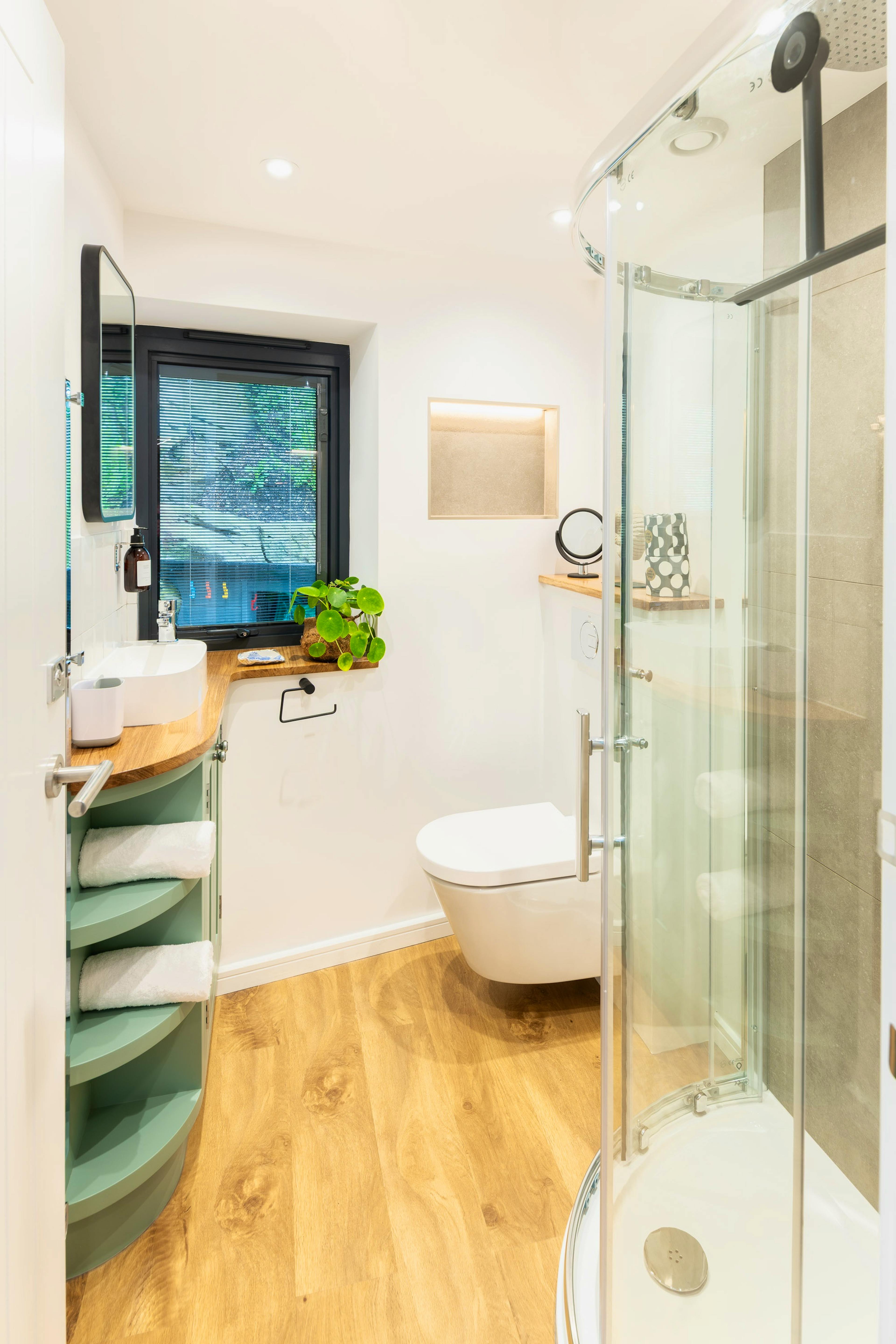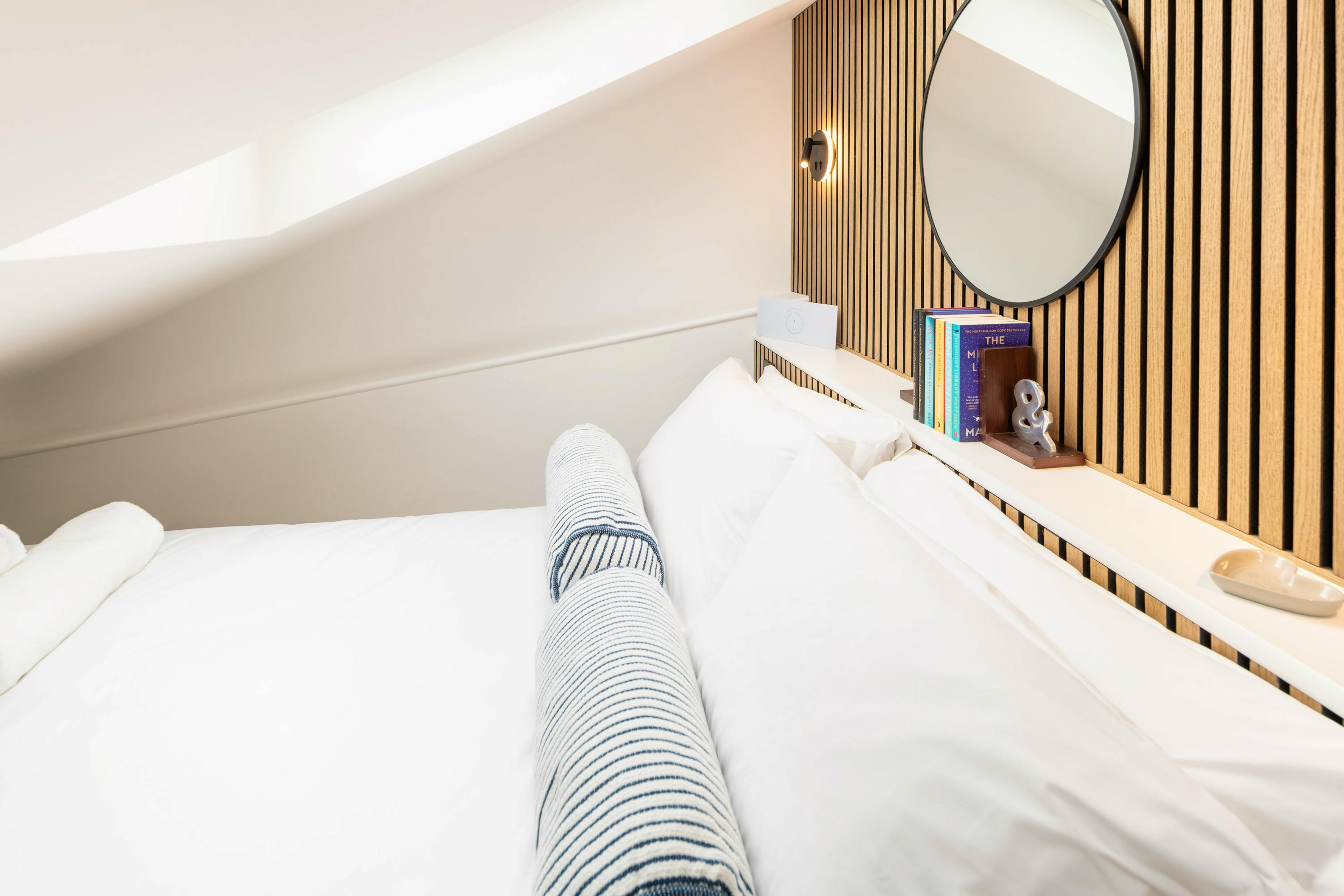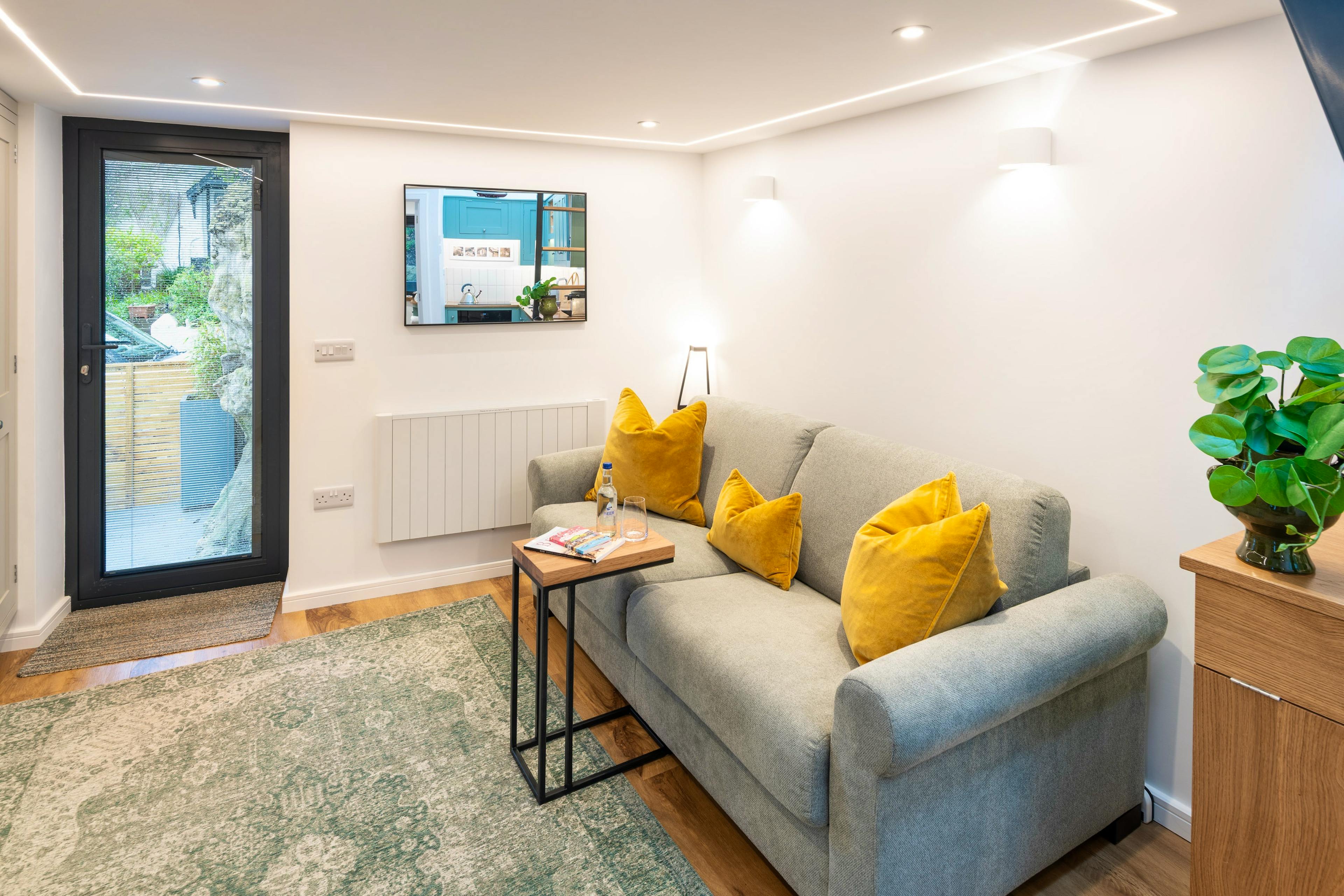 The Water Shed is a lovingly transformed former public loo that is now a boutique bolthole just moments from the shimmering waters of Beer’s pebble beach. Small but stylish, this clever coastal escape blends high-end design with a playful spirit, giving you a front-row seat to village life on the Jurassic Coast. Step inside and you’ll feel the calming pull of seaside living, where every inch has been thoughtfully crafted to make your stay feel special. The interiors are a masterclass in compact luxury. The lounge invites you to settle in with its cosy sofa bed, warm lighting and soft textures, while the fully fitted kitchen offers everything you need for laid-back breakfasts or quiet evenings in. Neutral tones and natural materials create a soothing atmosphere, elevated by bespoke fittings crafted by local artisans. Solar-powered air conditioning keeps the space perfectly comfortable year-round, a subtle reminder that this little retreat is quietly innovative. When it’s time to turn in, glide up the state-of-the-art roll-out stairs to the inviting mezzanine. Here a dreamy double bed makes the most of the height and cosy nook-like feel, promising restful nights after coastal rambles. A third guest can snuggle into the lounge’s sofa bed, making this a great base for couples, friends or a teen adventurer along for the ride. The sleek bathroom completes the space with its luxurious finish, making every shower feel spa-worthy. Outside, the private courtyard is your sun-dappled sanctuary. Sip your morning coffee listening to Beer Brook drifting by, bask in a lazy afternoon with a book or savour pre-dinner drinks before wandering down to the seafront for fish straight off the boat. With the beach just a short stroll away and the village unfolding around you, it’s easy to immerse yourself in the relaxed charm of Beer. From walking the dramatic cliffs of the Jurassic Coast to sampling seafood, pottering around independent shops or watching golden sunsets melt into the horizon, this little corner of Devon has plenty to explore. The Water Shed puts you right at the heart of it, offering a unique and luxurious base for your coastal adventure.