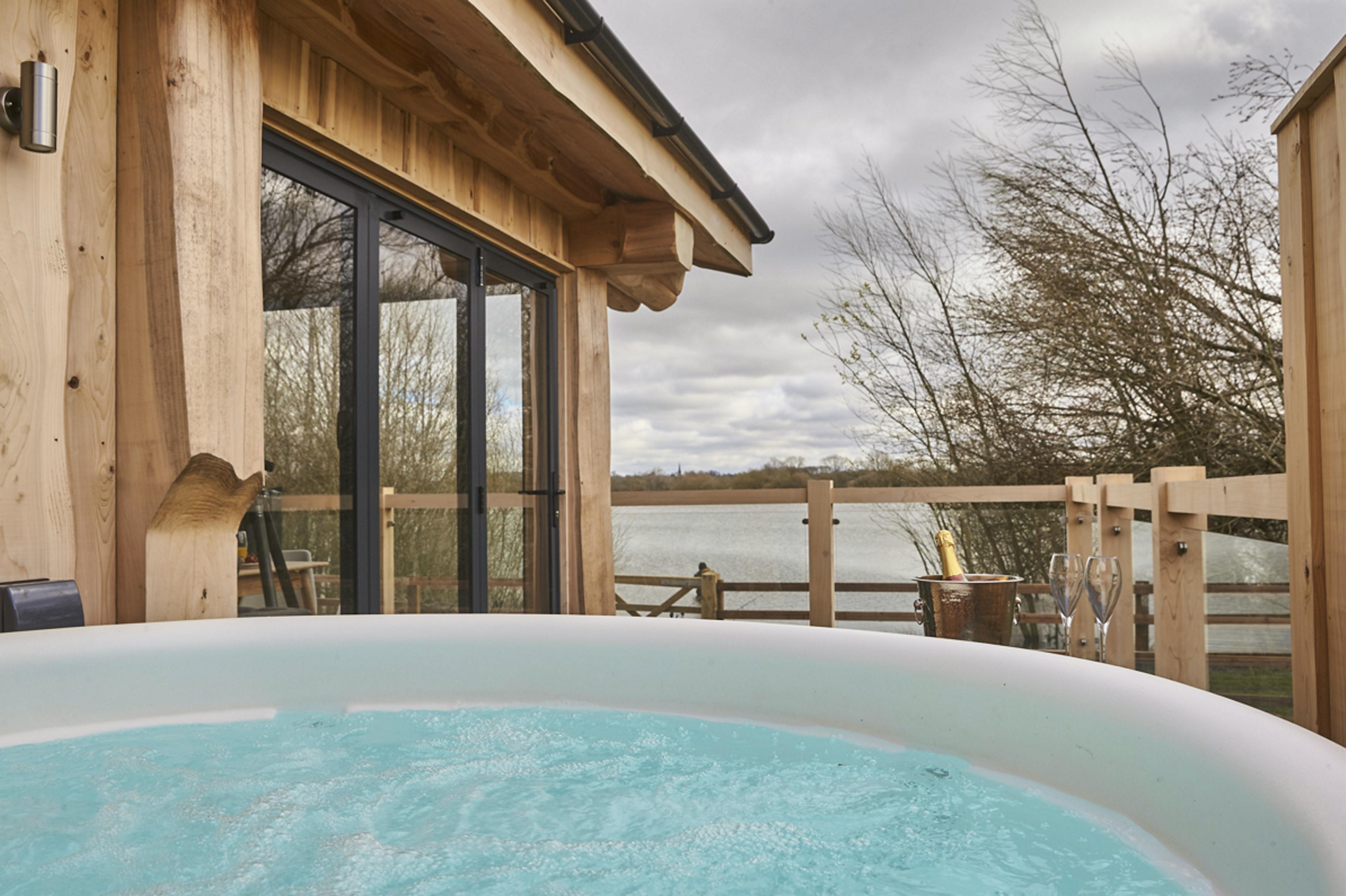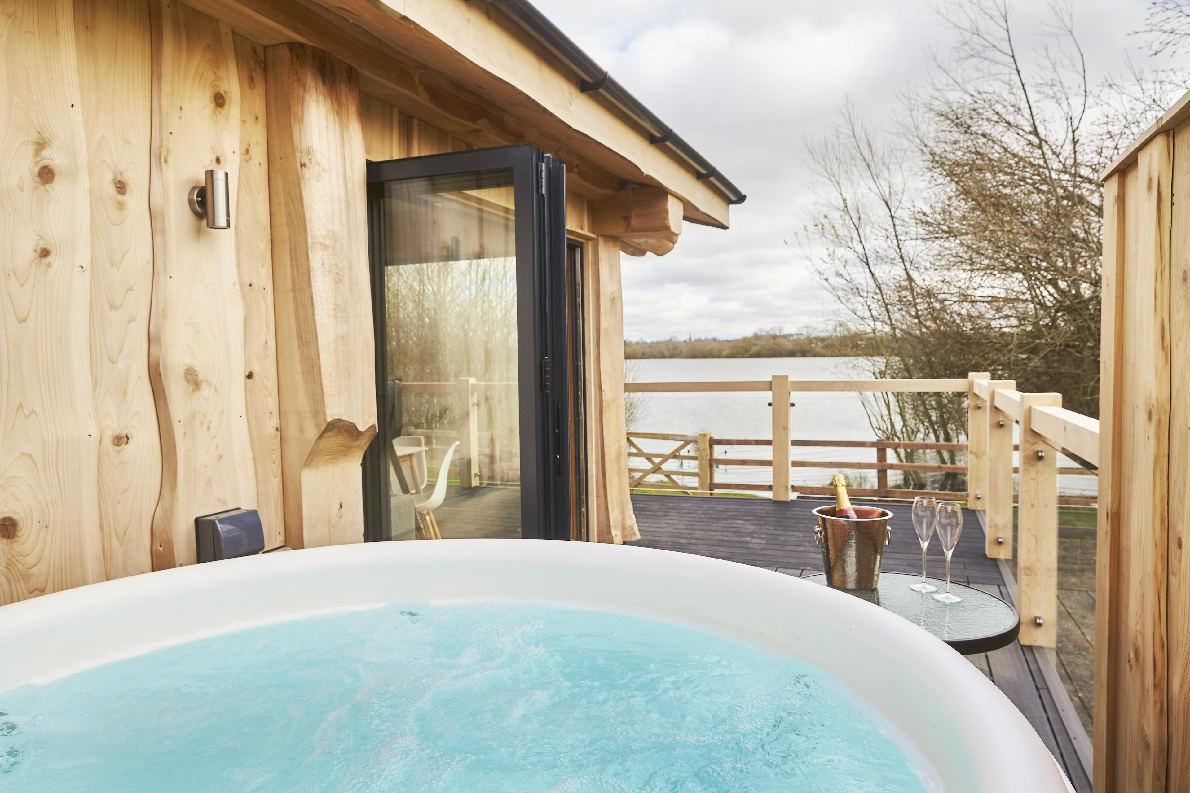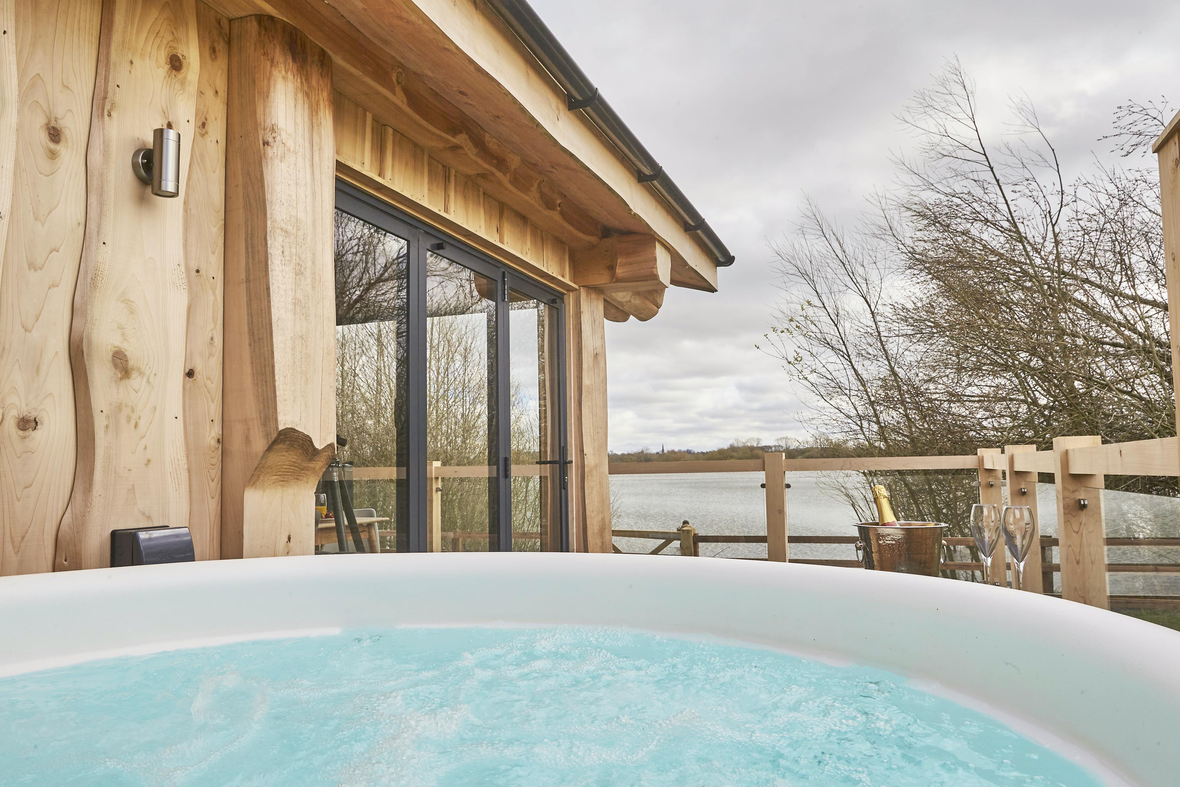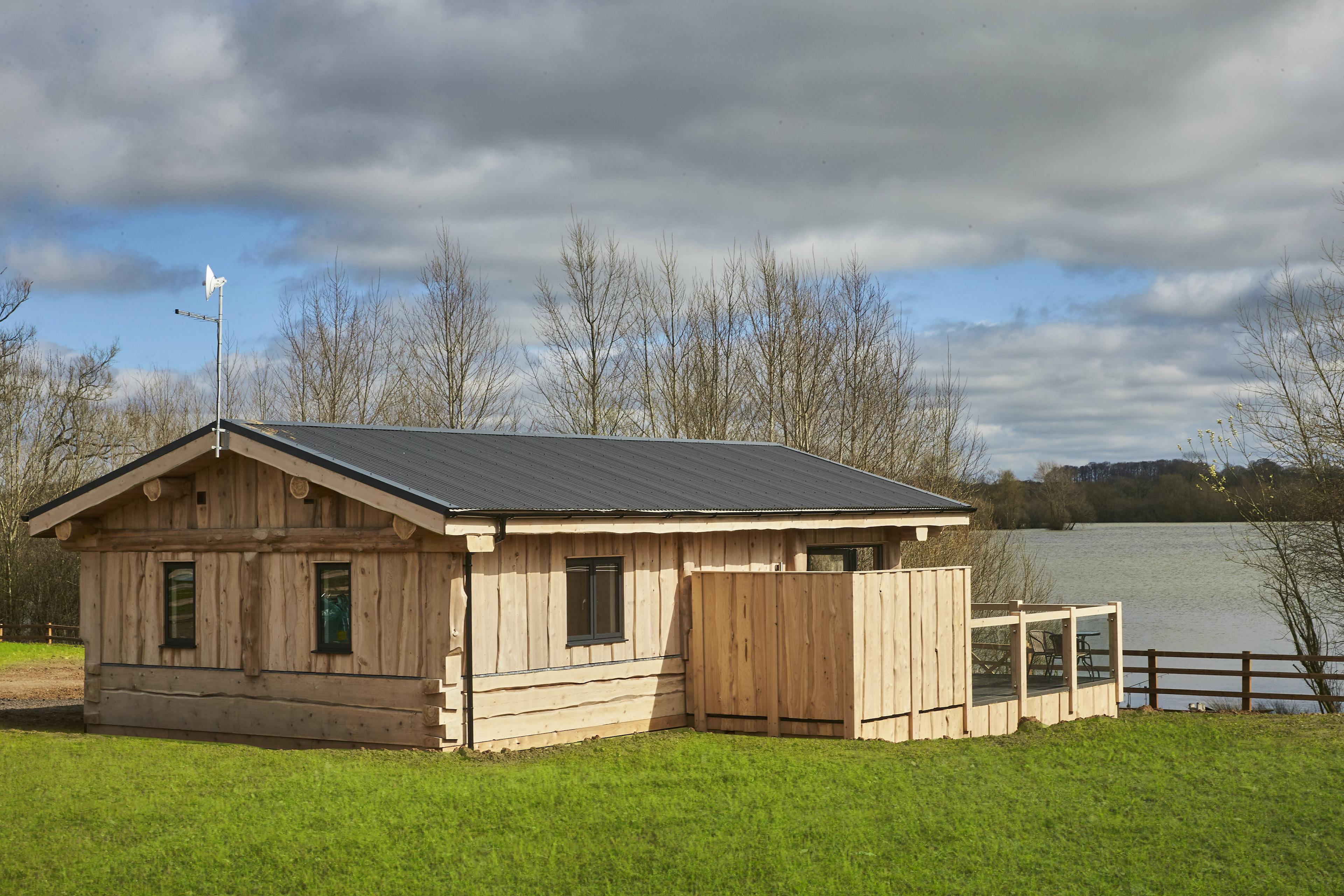 Unwind with friends or family in peaceful lakeside surroundings in this handbuilt, luxury log cabin in Northamptonshire.