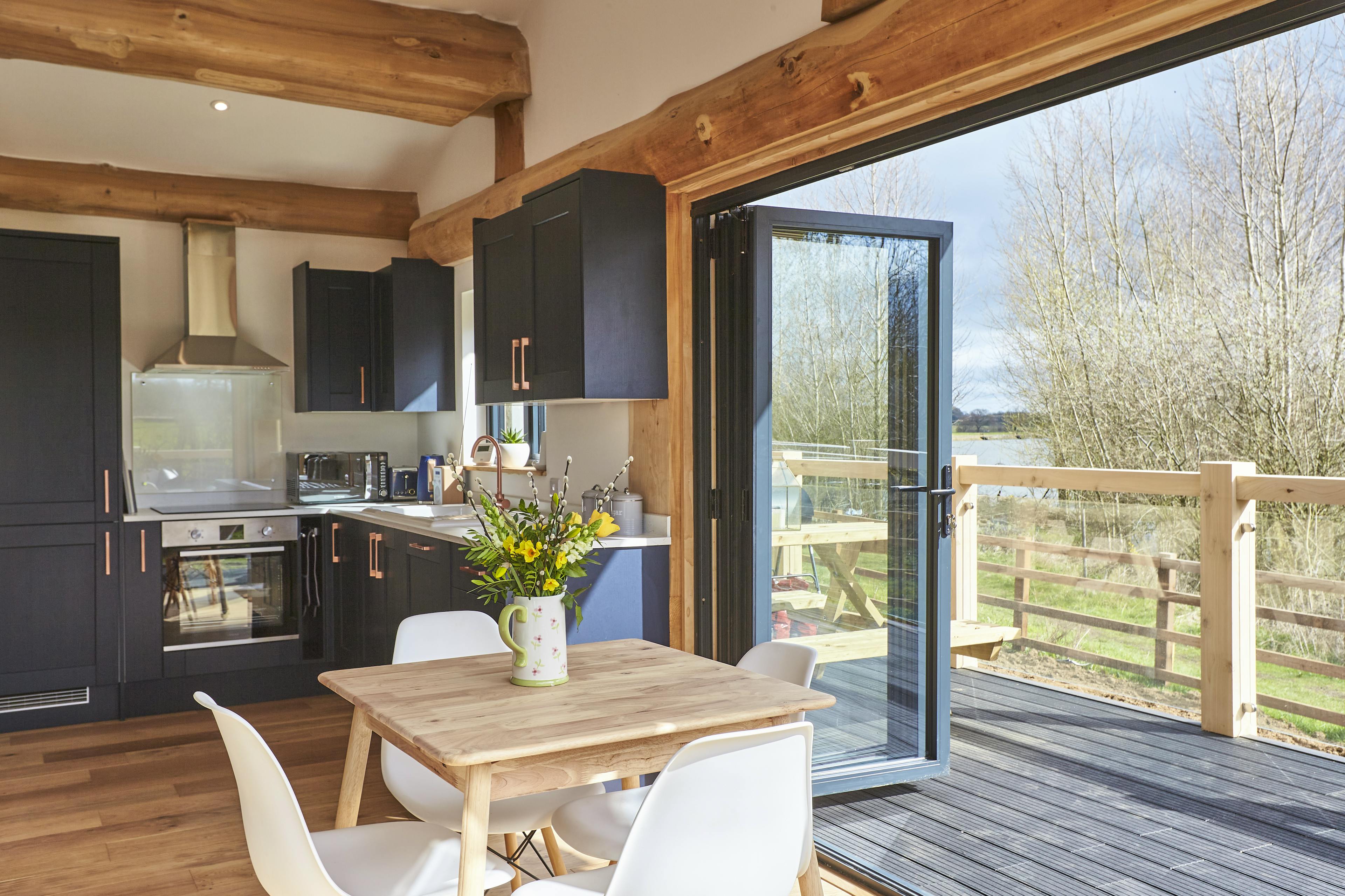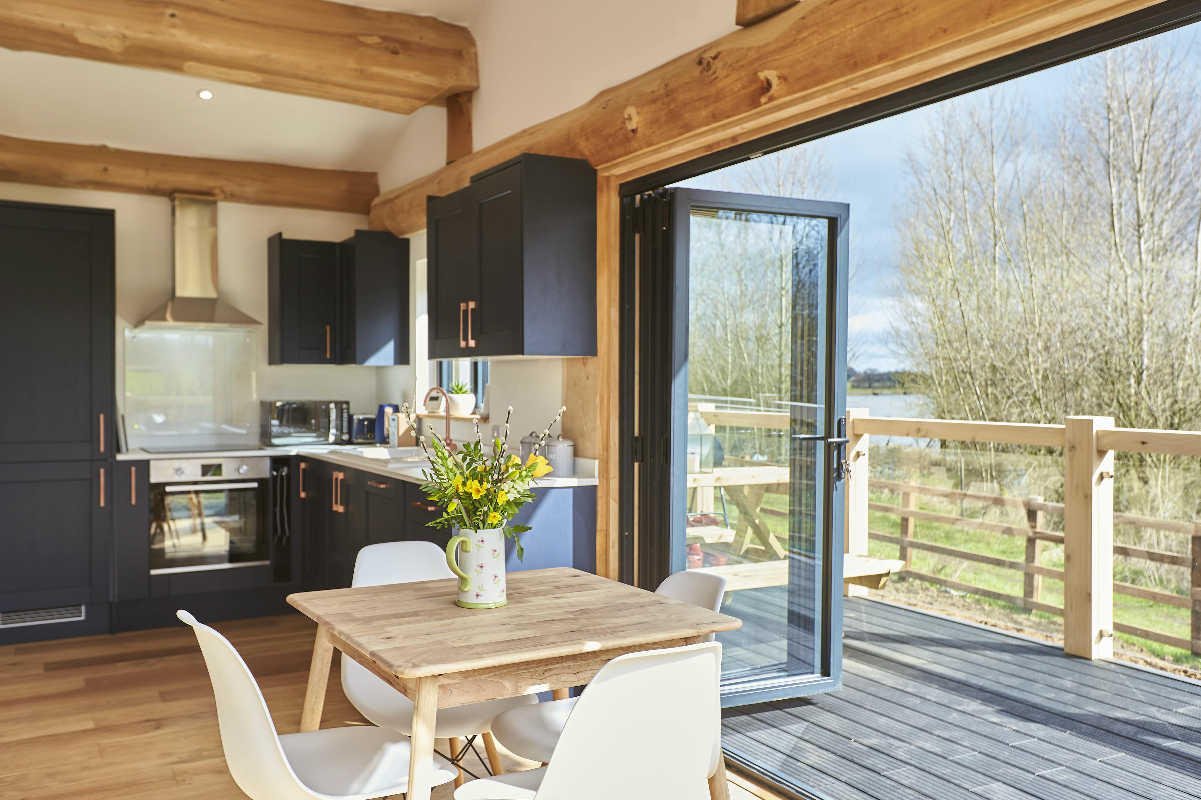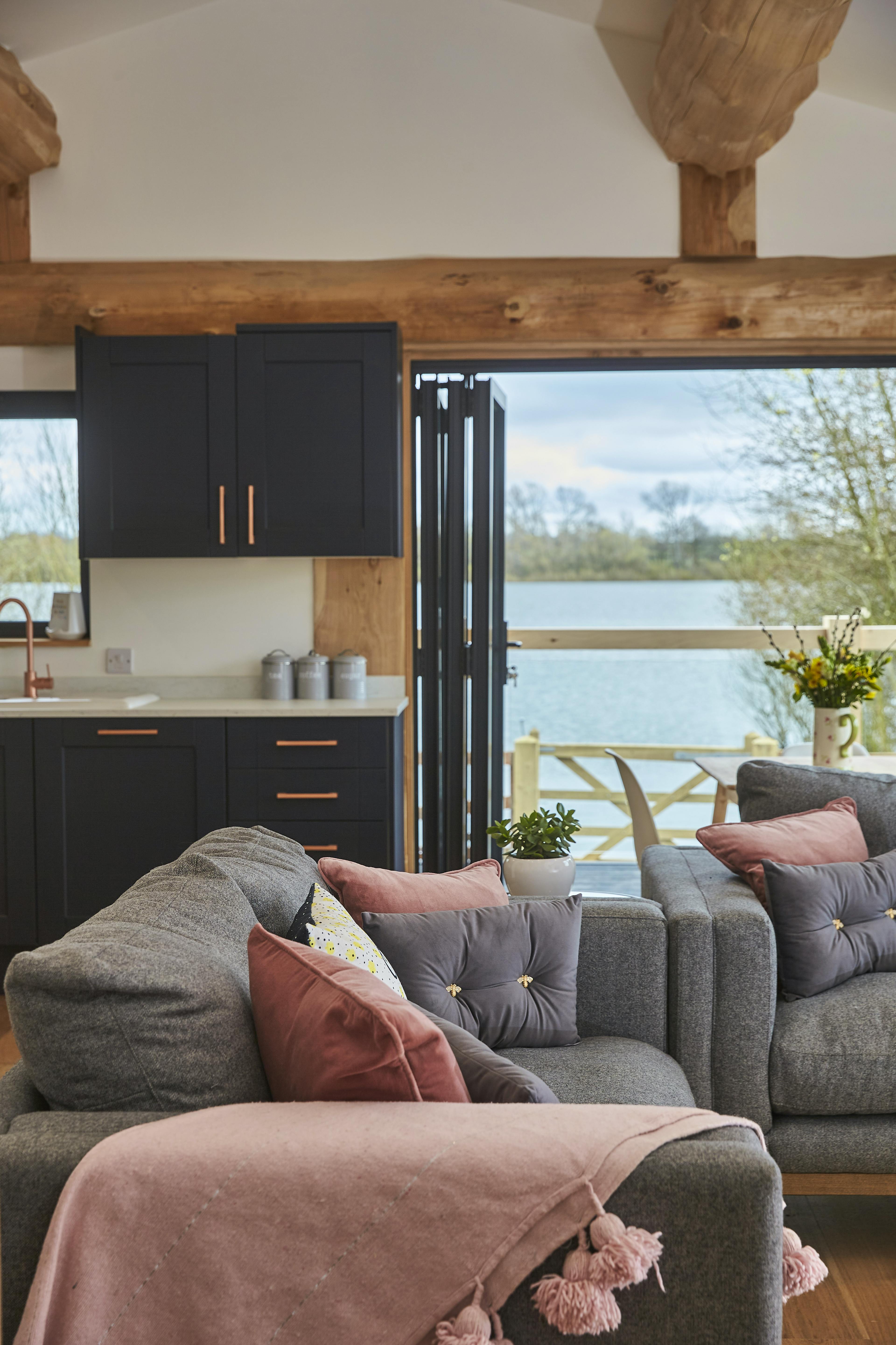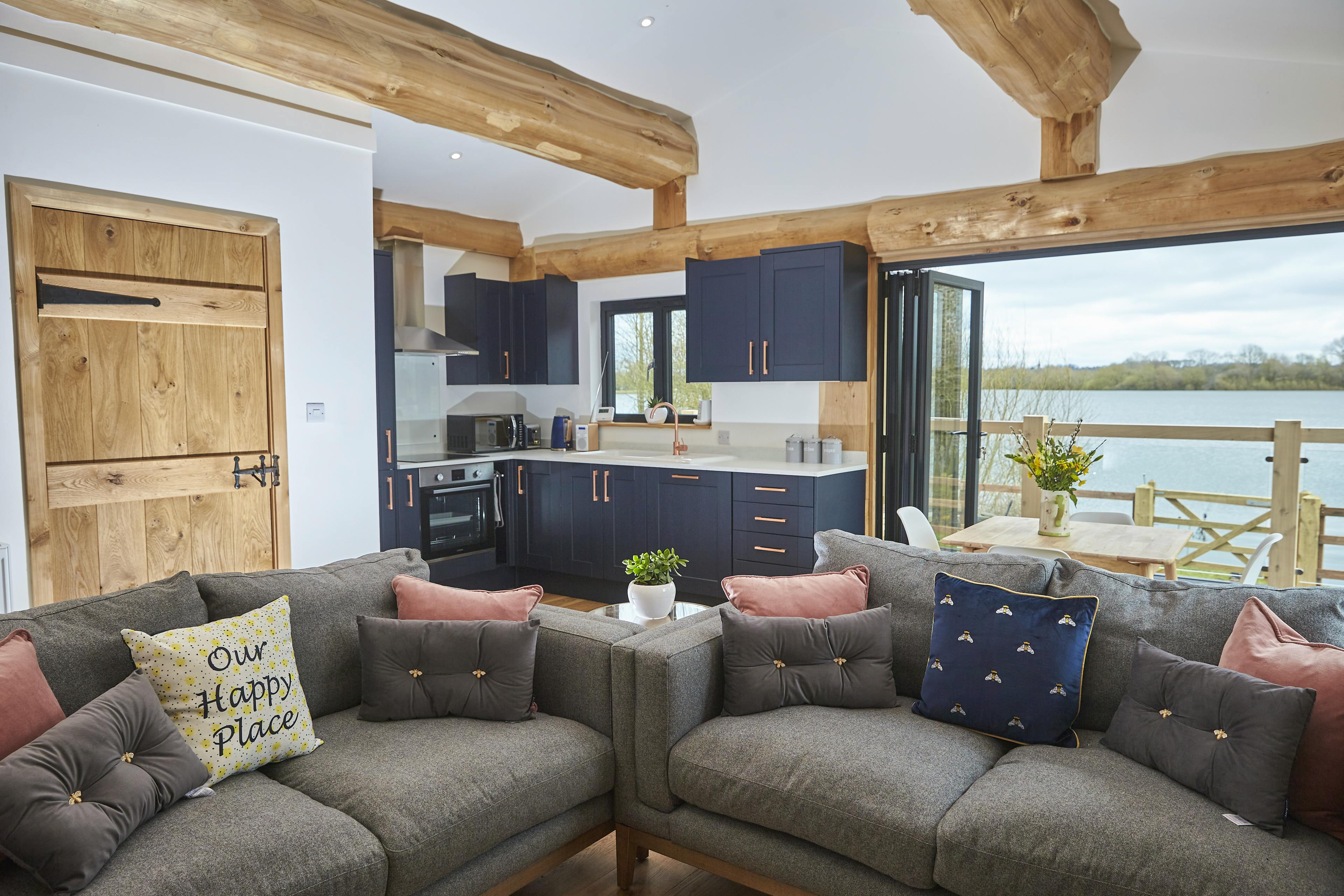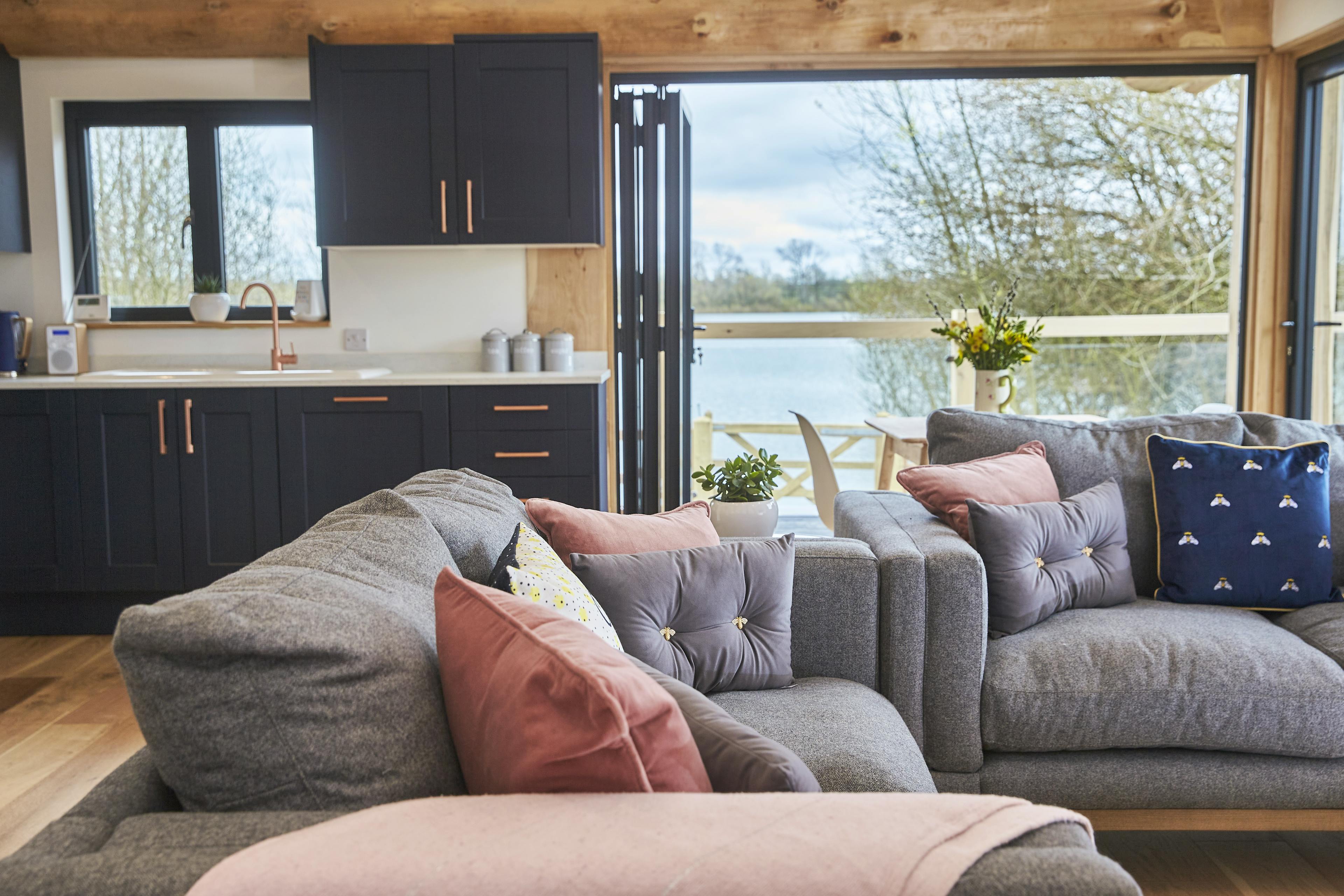 Unwind with friends or family in peaceful lakeside surroundings in this handbuilt, luxury log cabin in Northamptonshire.