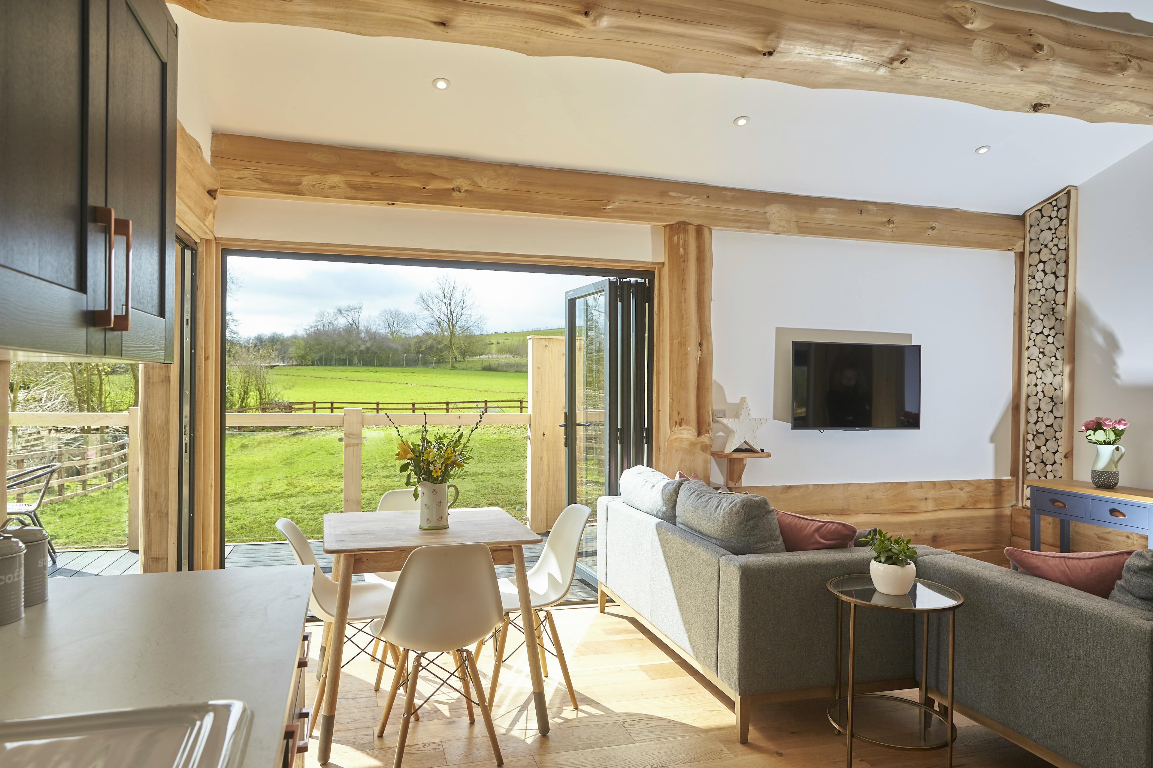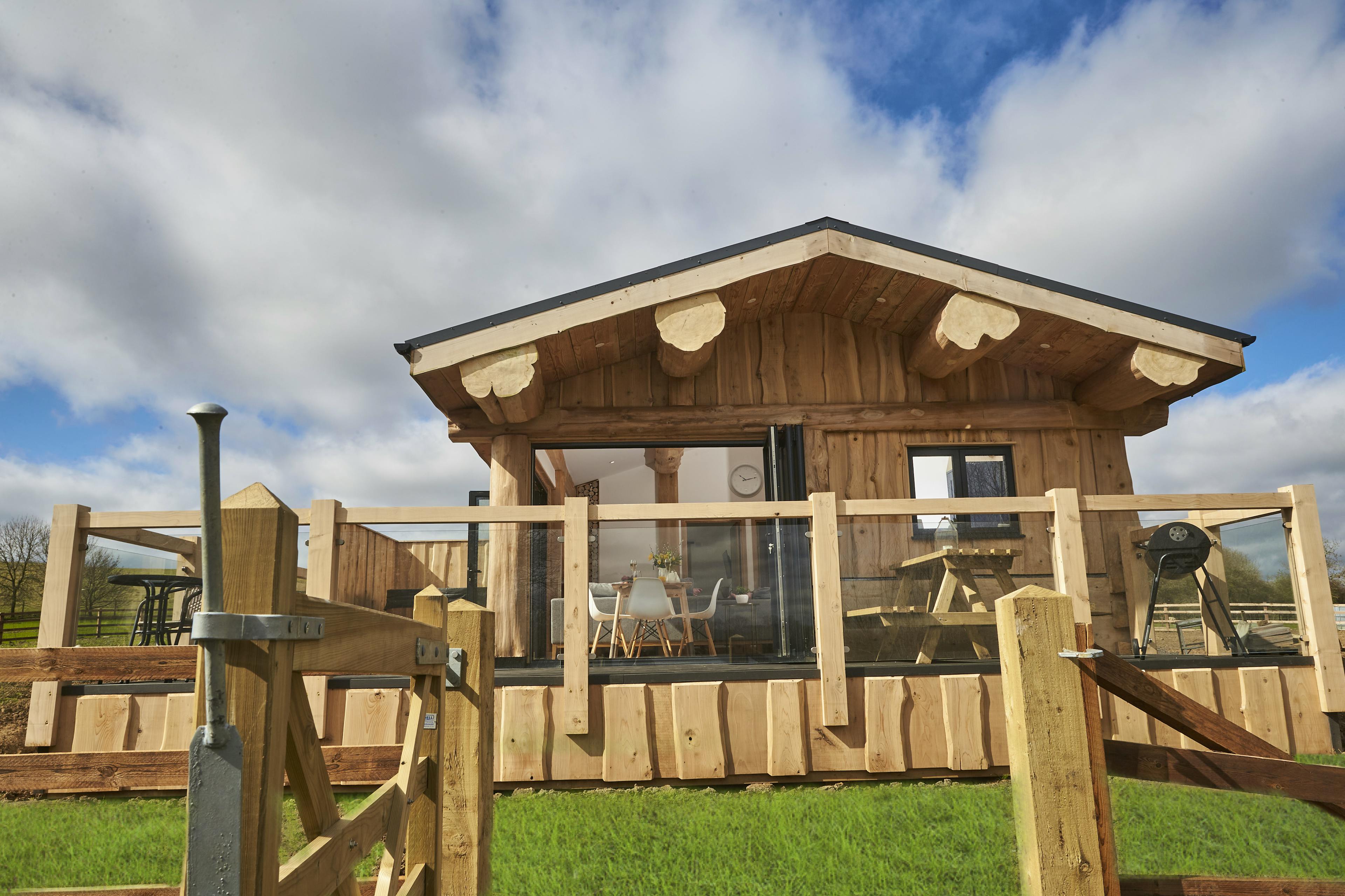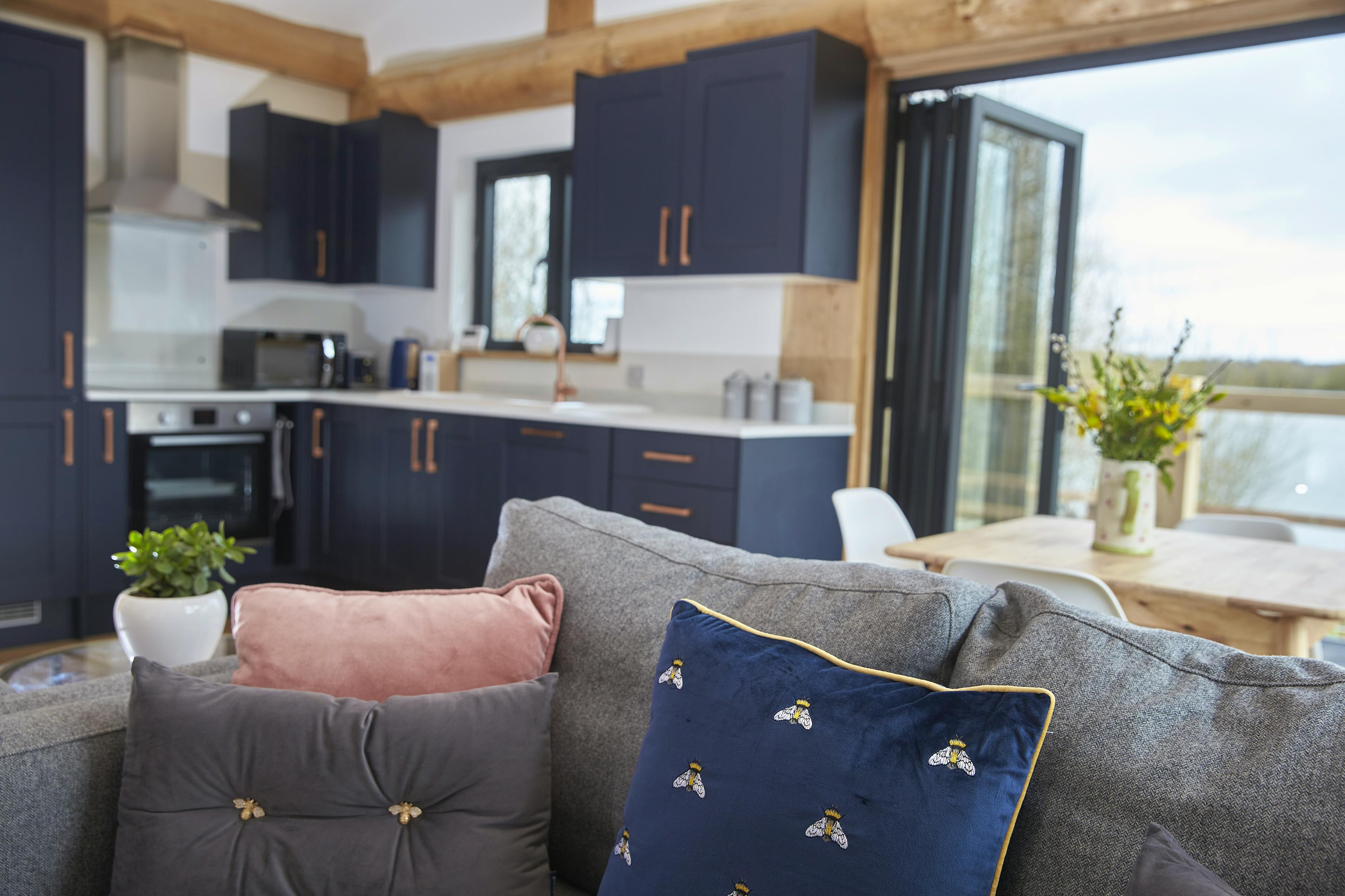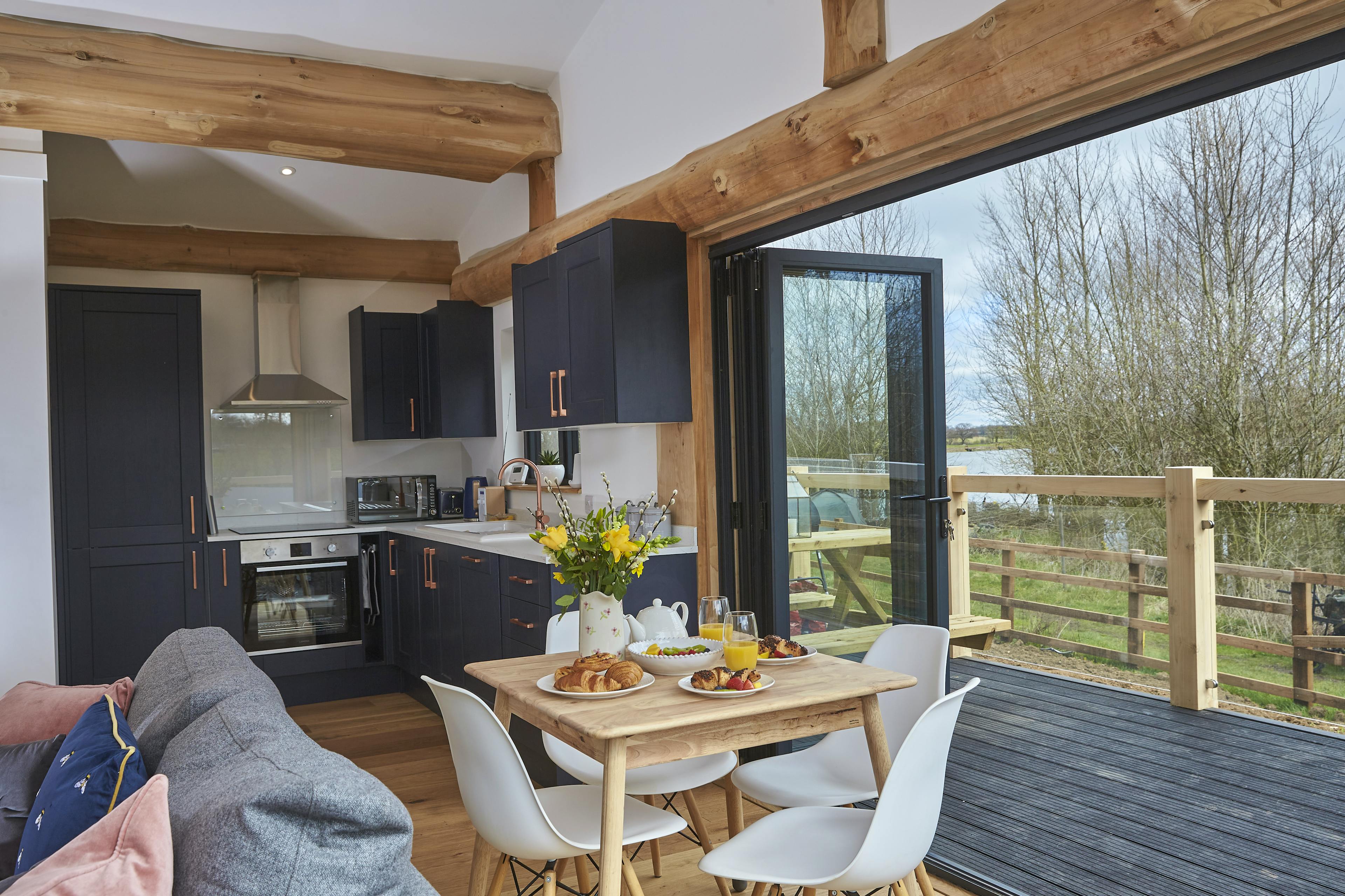 Unwind with friends or family in peaceful lakeside surroundings in this handbuilt, luxury log cabin in Northamptonshire.