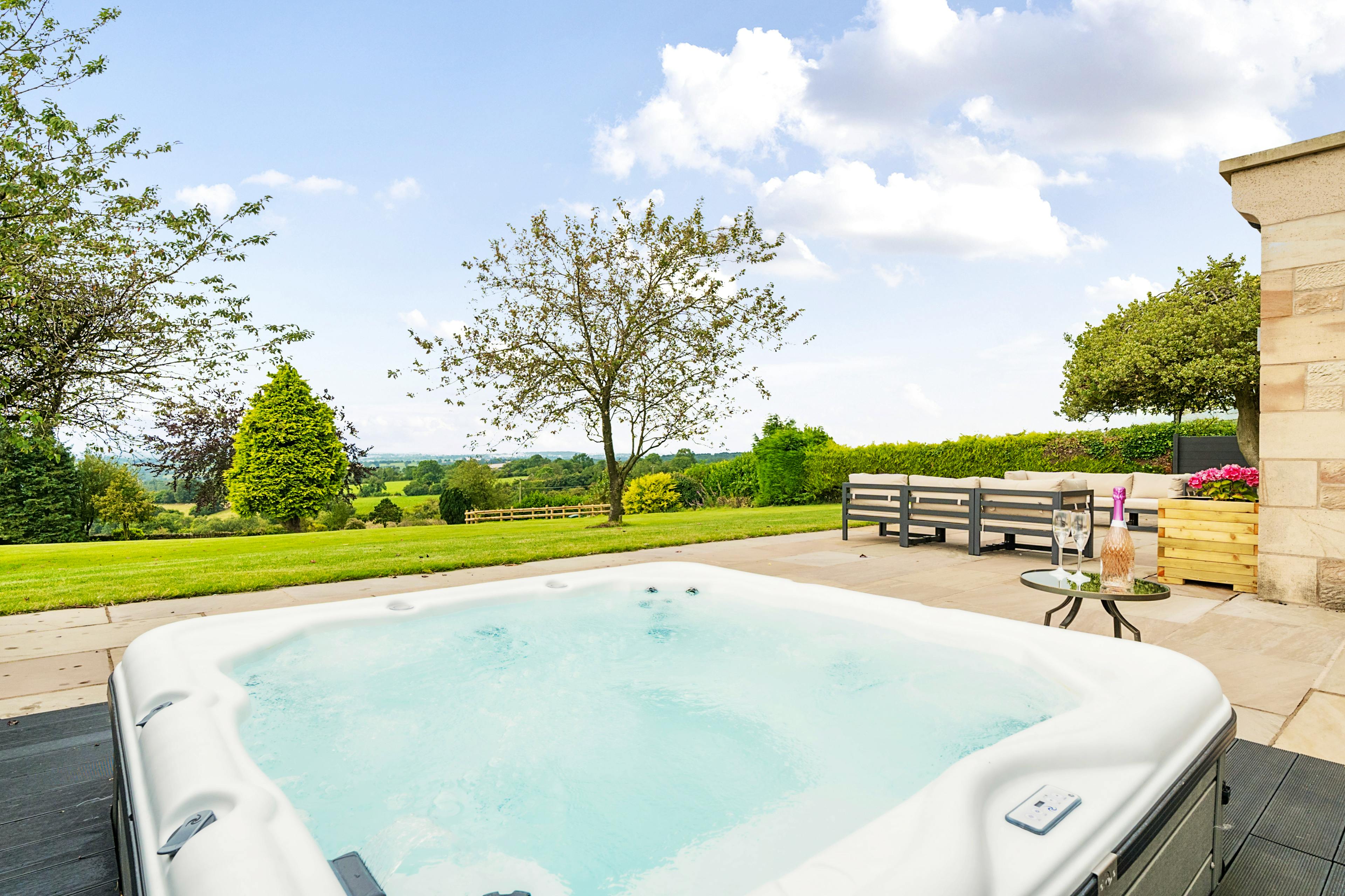 Sink into your private outdoor hot tub while the kids explore the huge, secure garden.