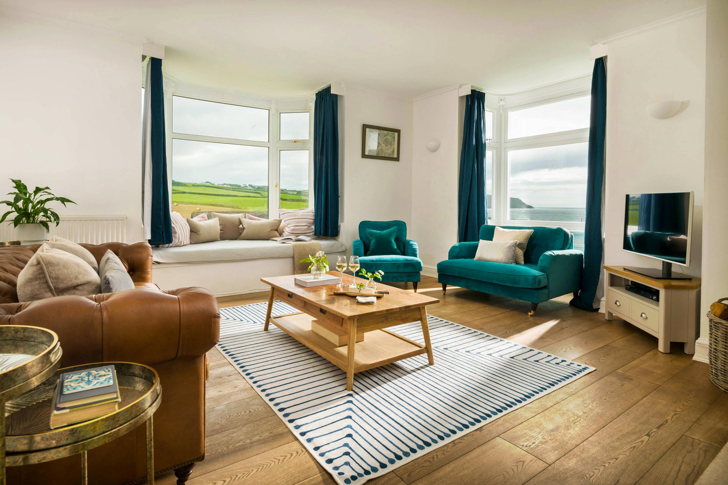 Stylish coastal home in Widemouth Bay offering groups of up to 12 guests a peaceful stay with stunning sea views.