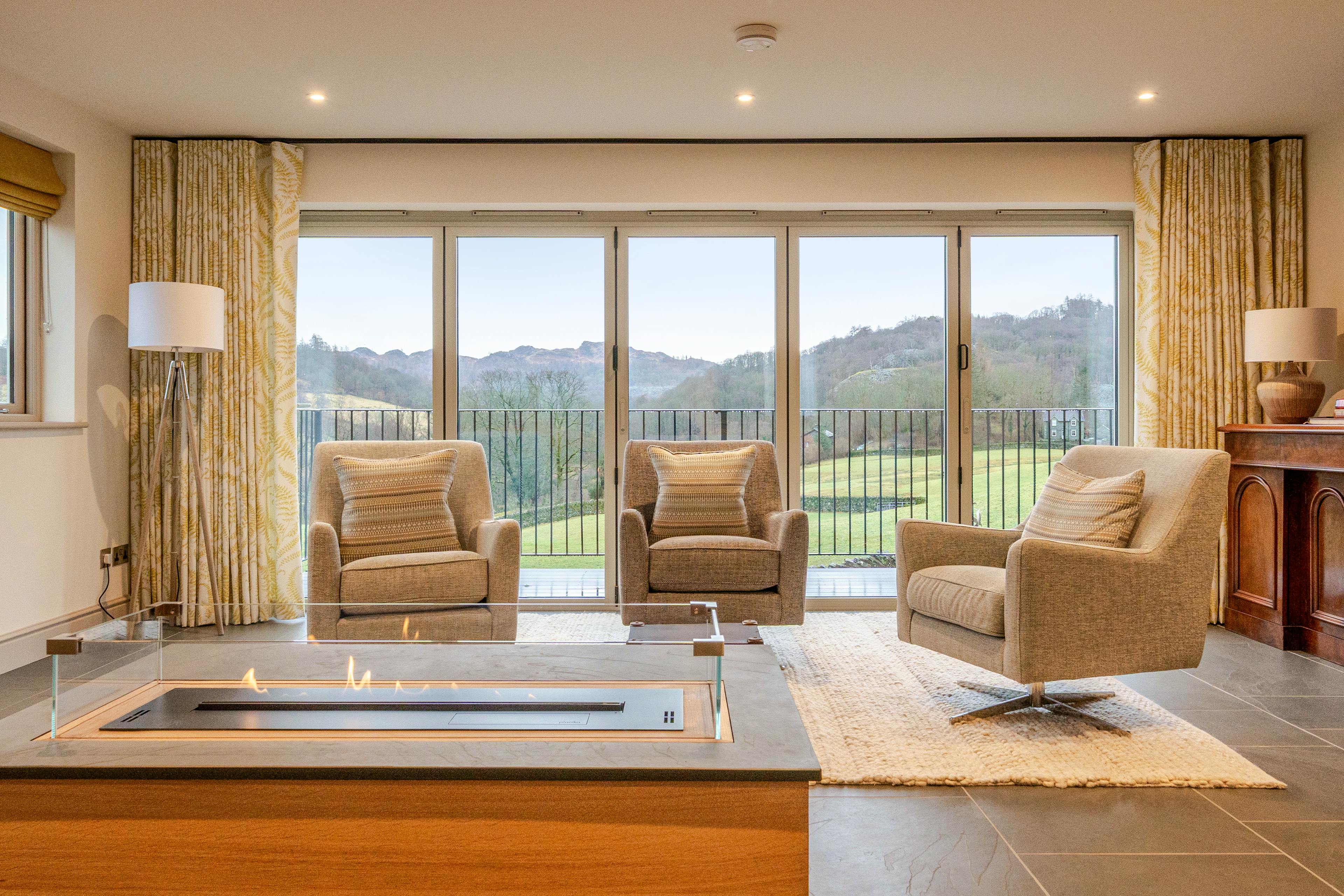 Spacious chalet-style retreat in Little Langdale with show-stopping views across the Coniston Fells.