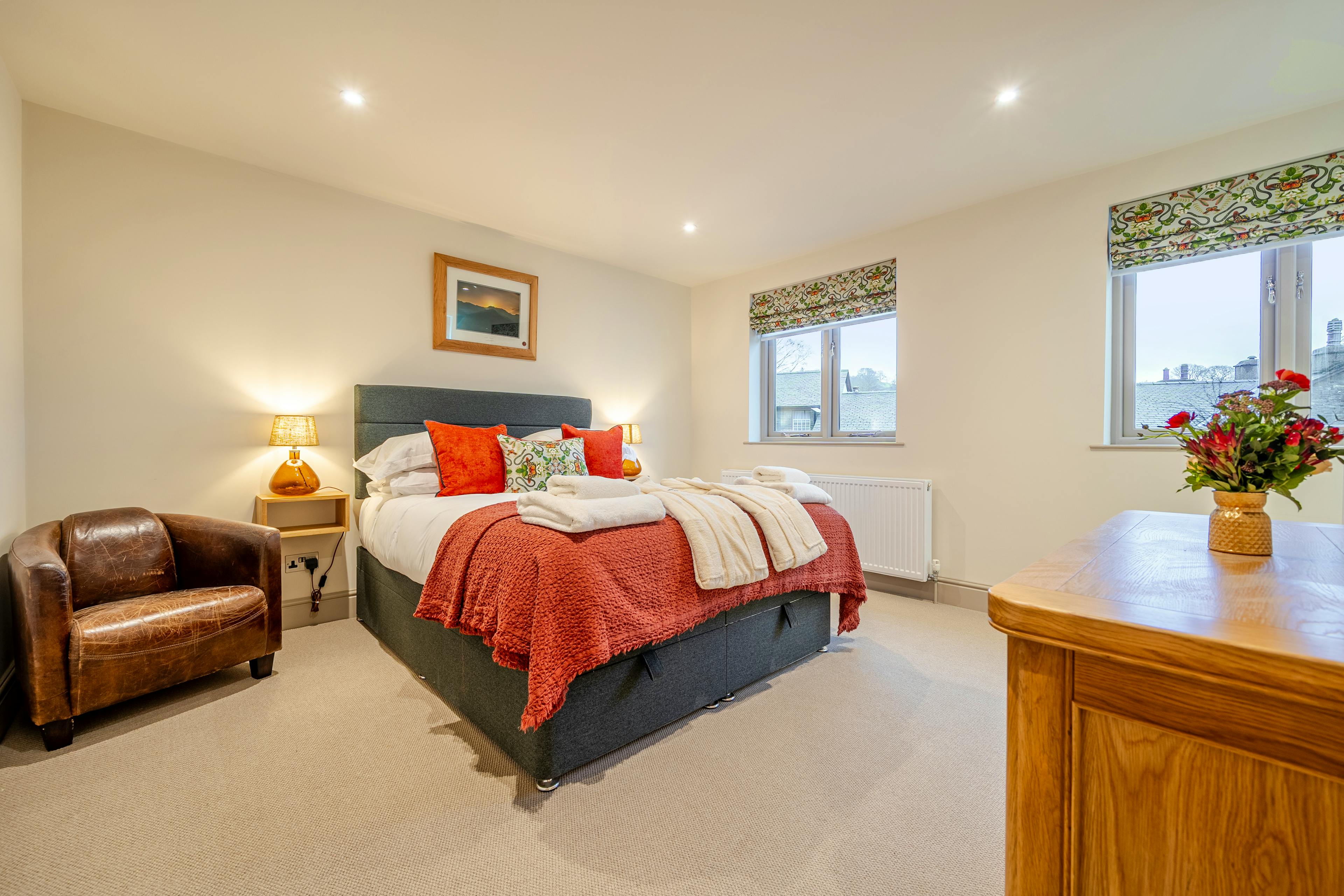 Three stylish bedrooms plus a separate annex, comfortably sleeping up to eight guests.