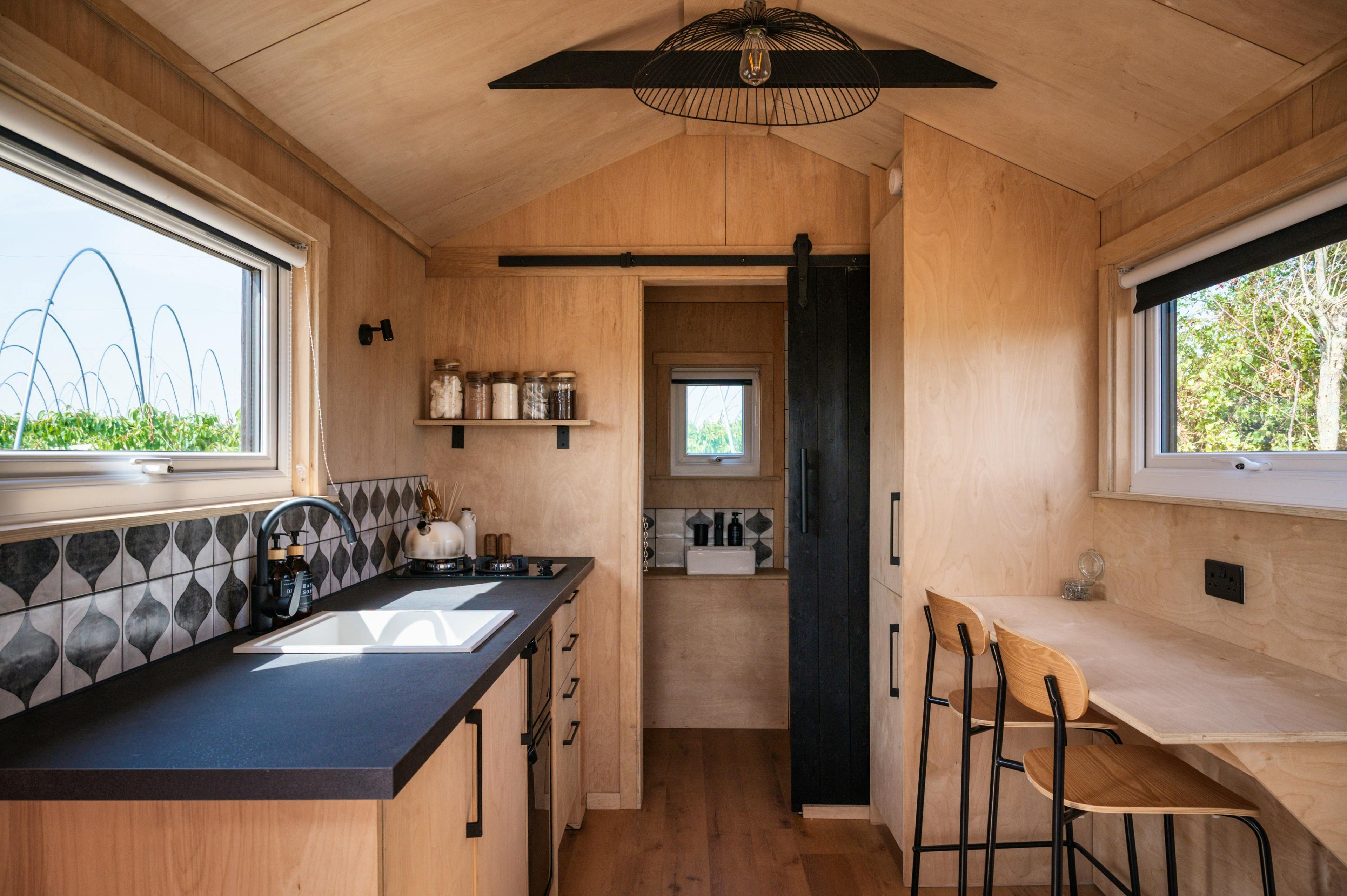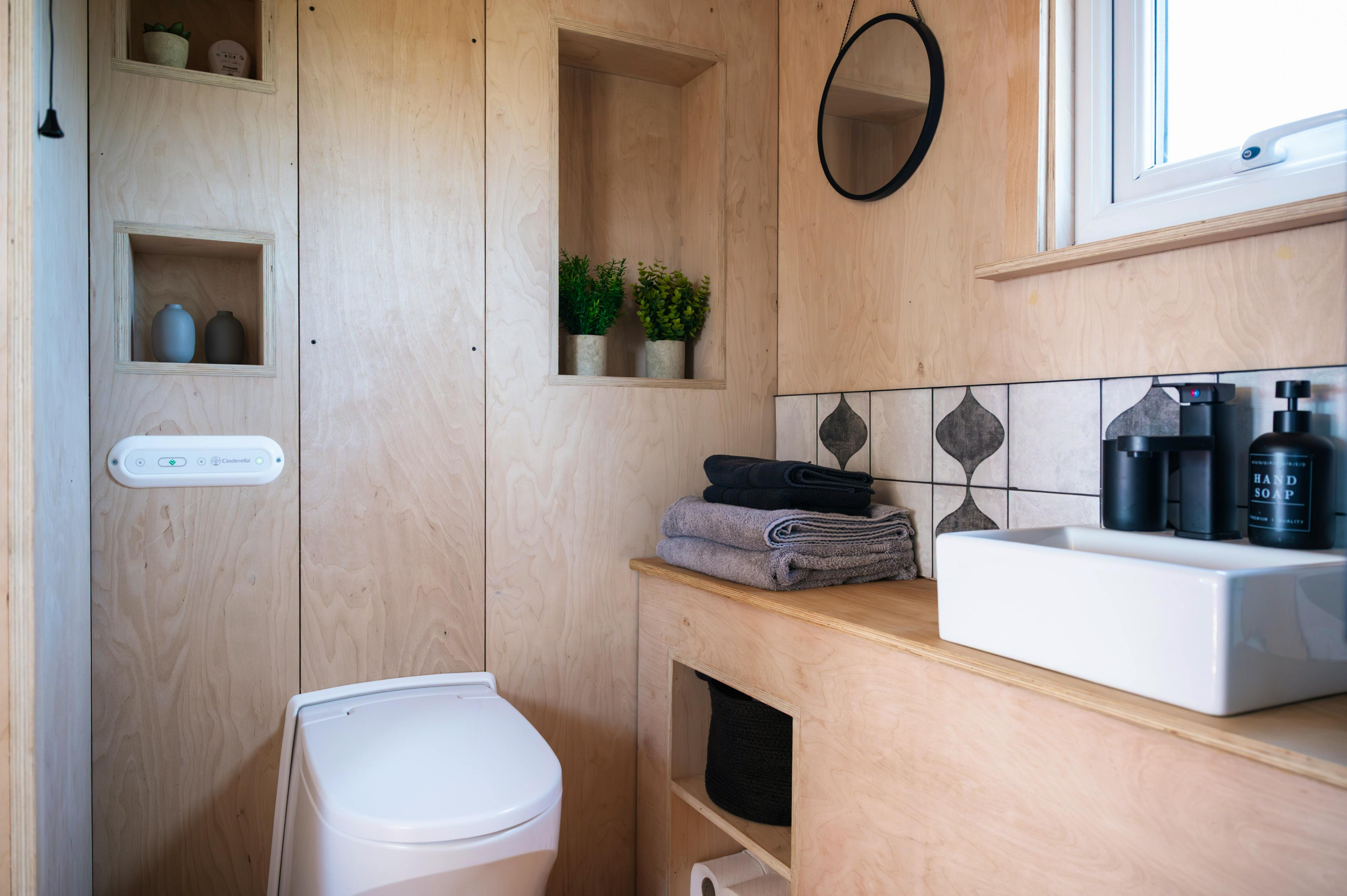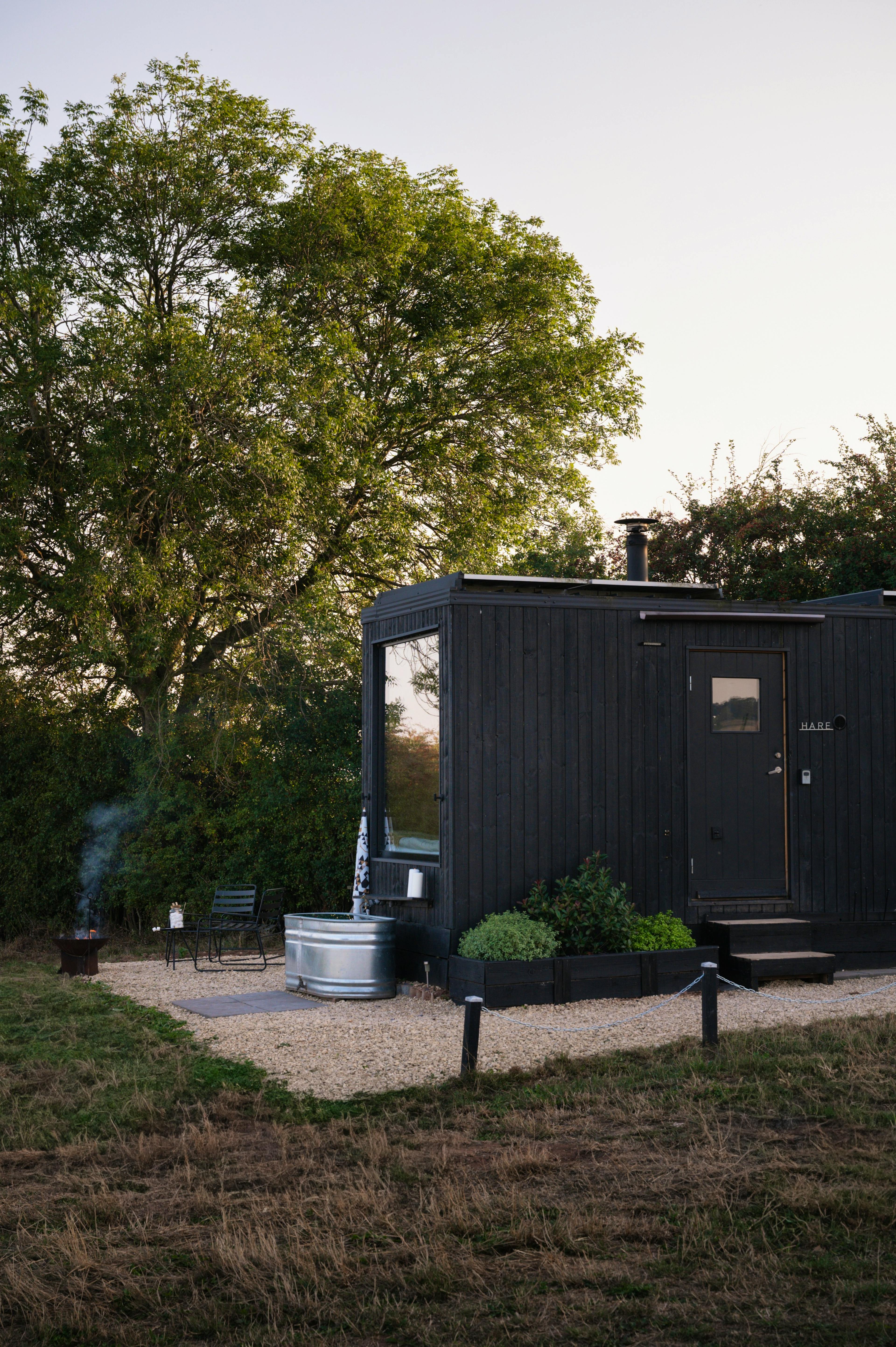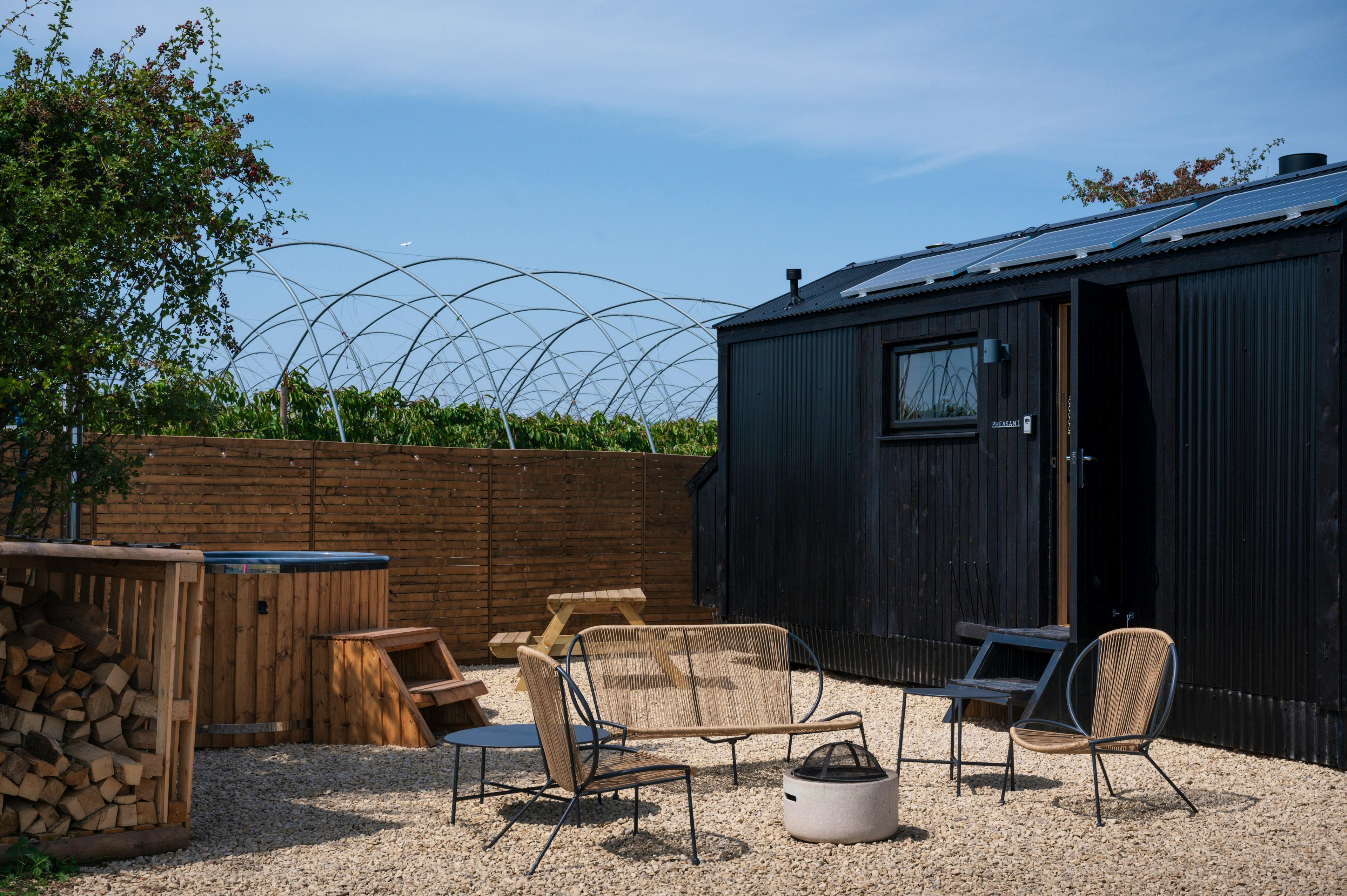 Pheasant cabin features an incinerating toilet; Hare and Fox have compost loos.