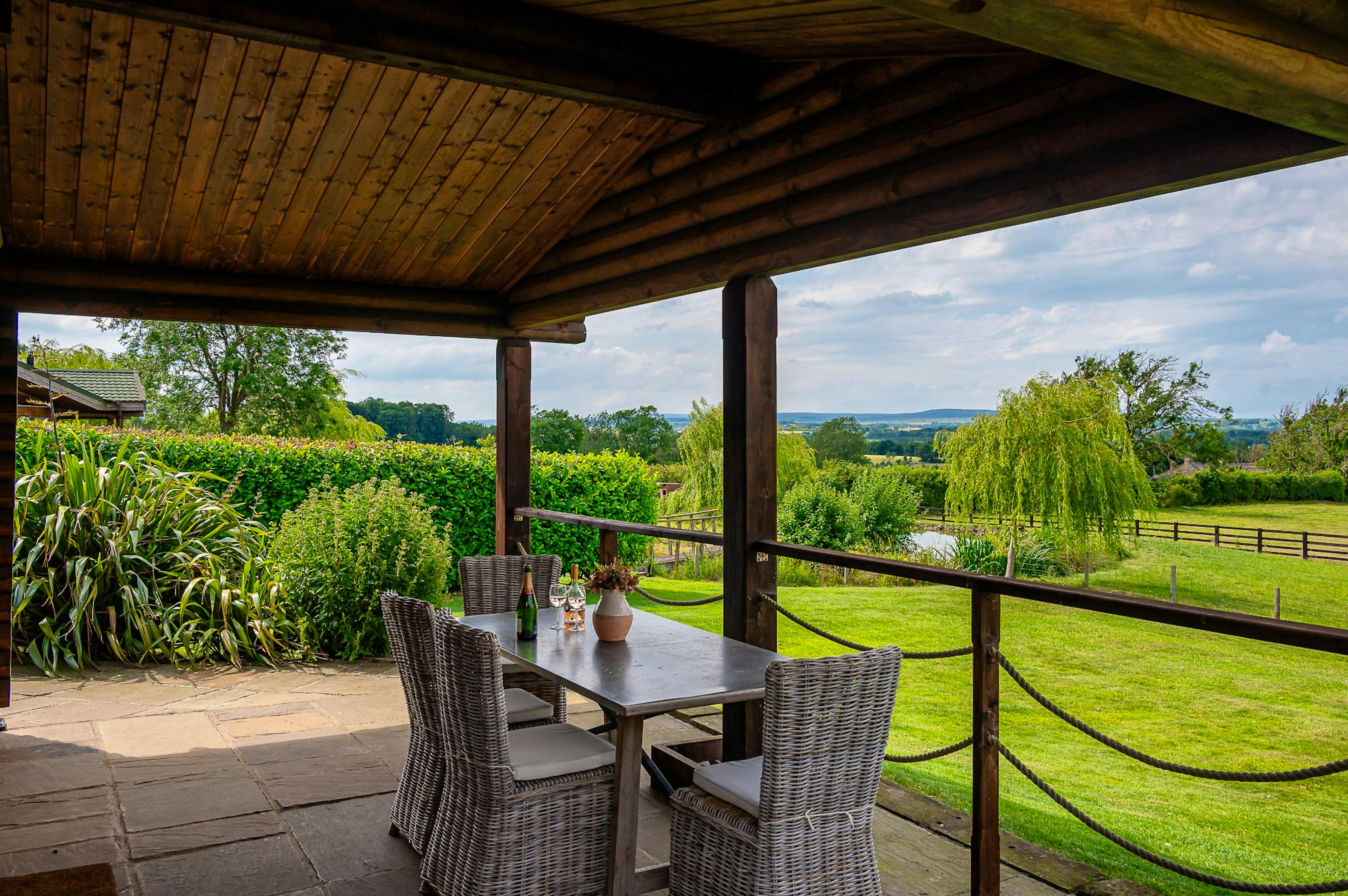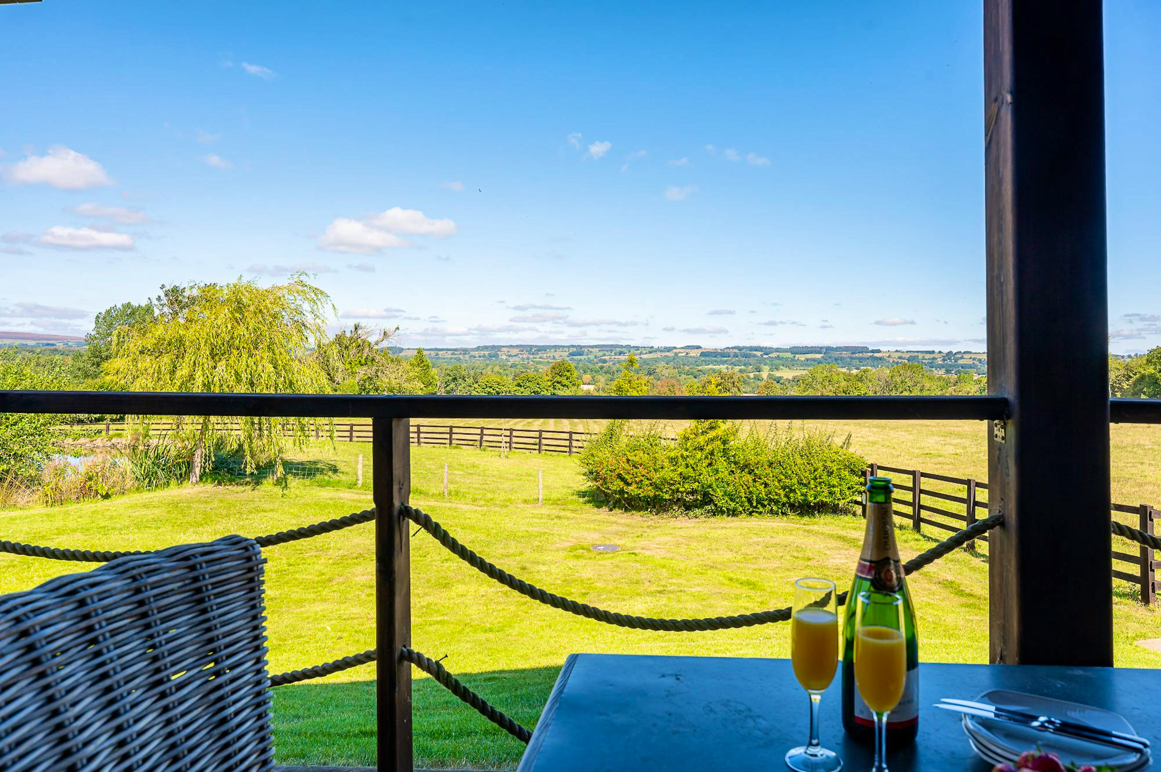 Luxury two-bedroom lodge with a hot tub and Scandinavian sauna in the Yorkshire Dales.