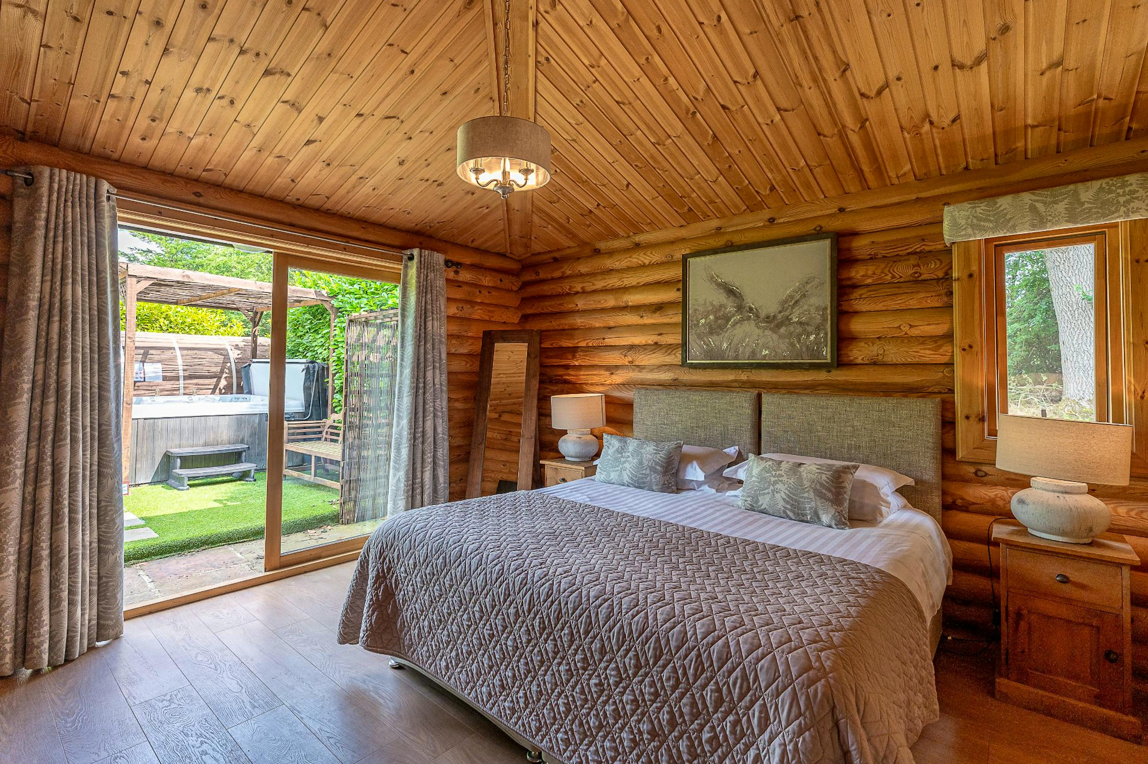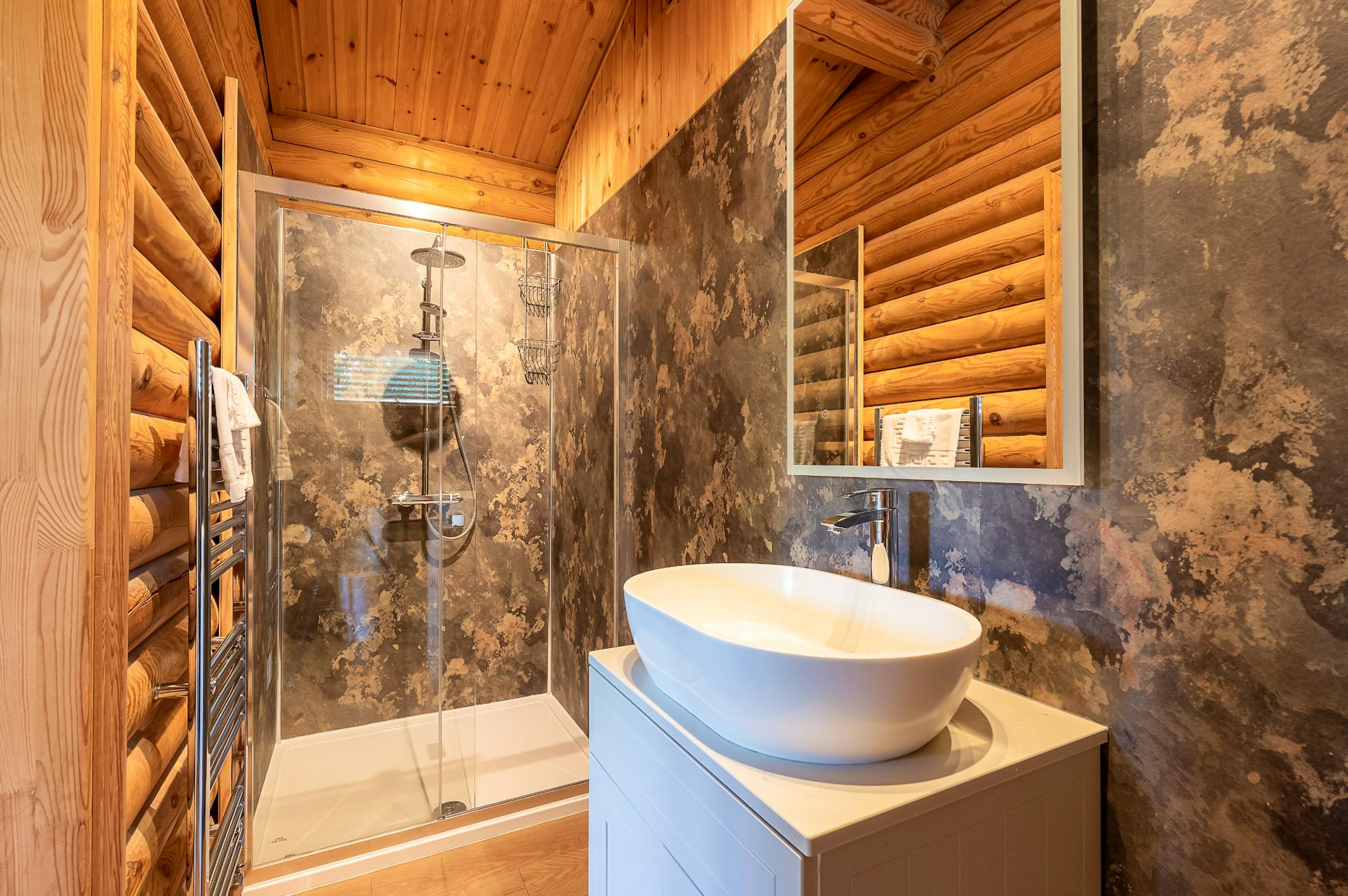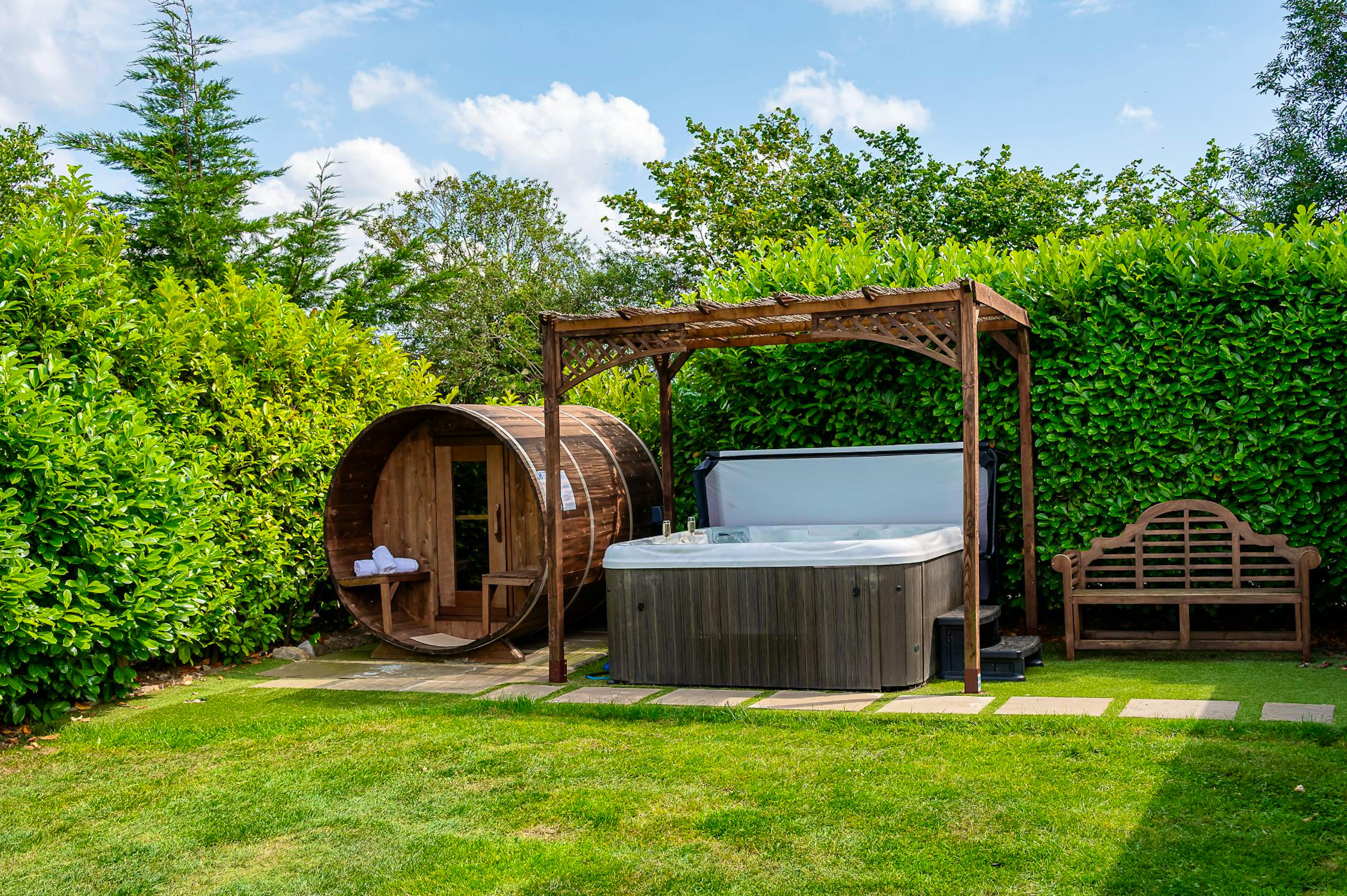 Two-bedroom dog-friendly lodge with private hot tub, traditional Scandinavian barrel sauna and invigorating outdoor shower for a spa-like escape.