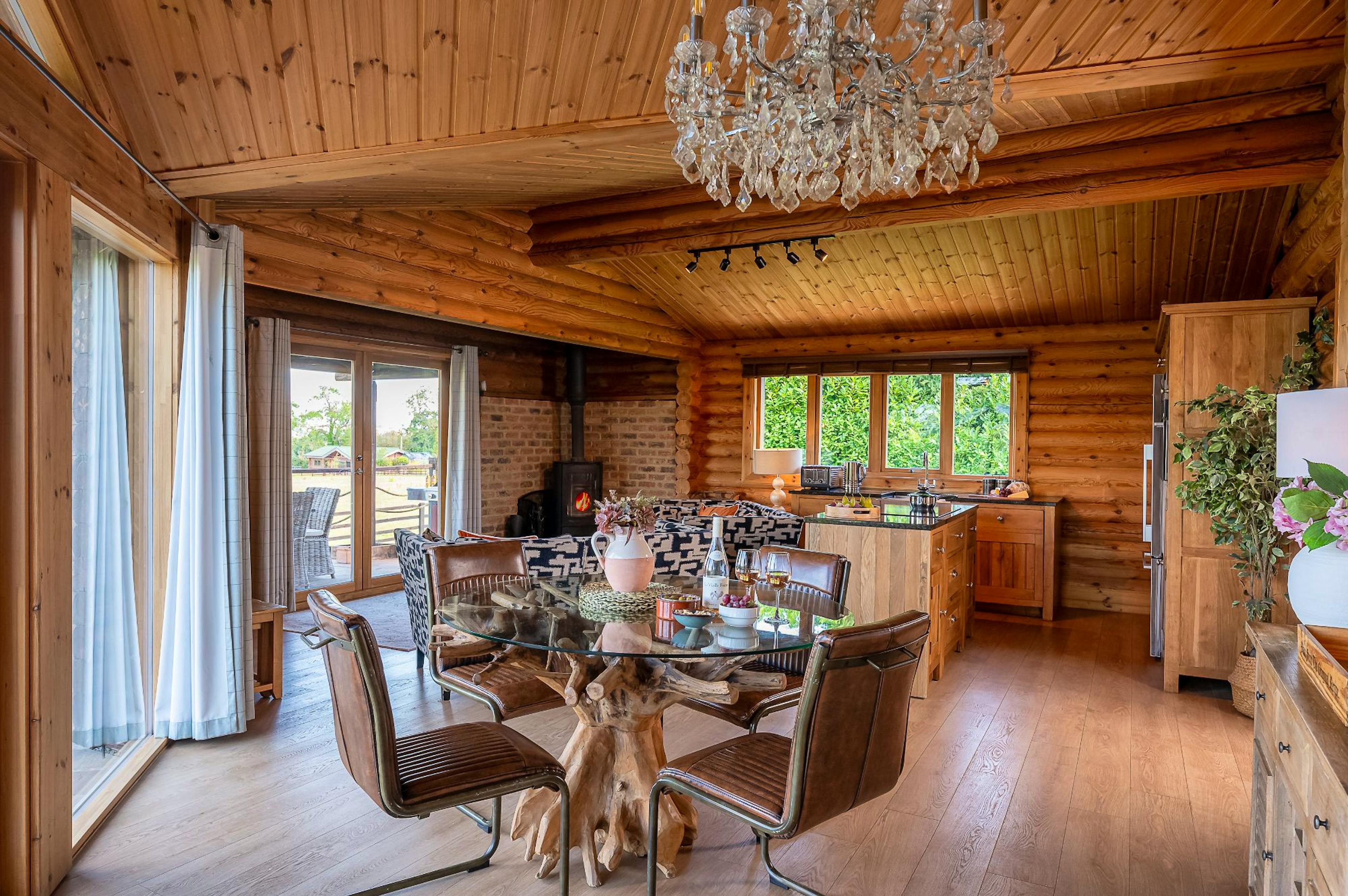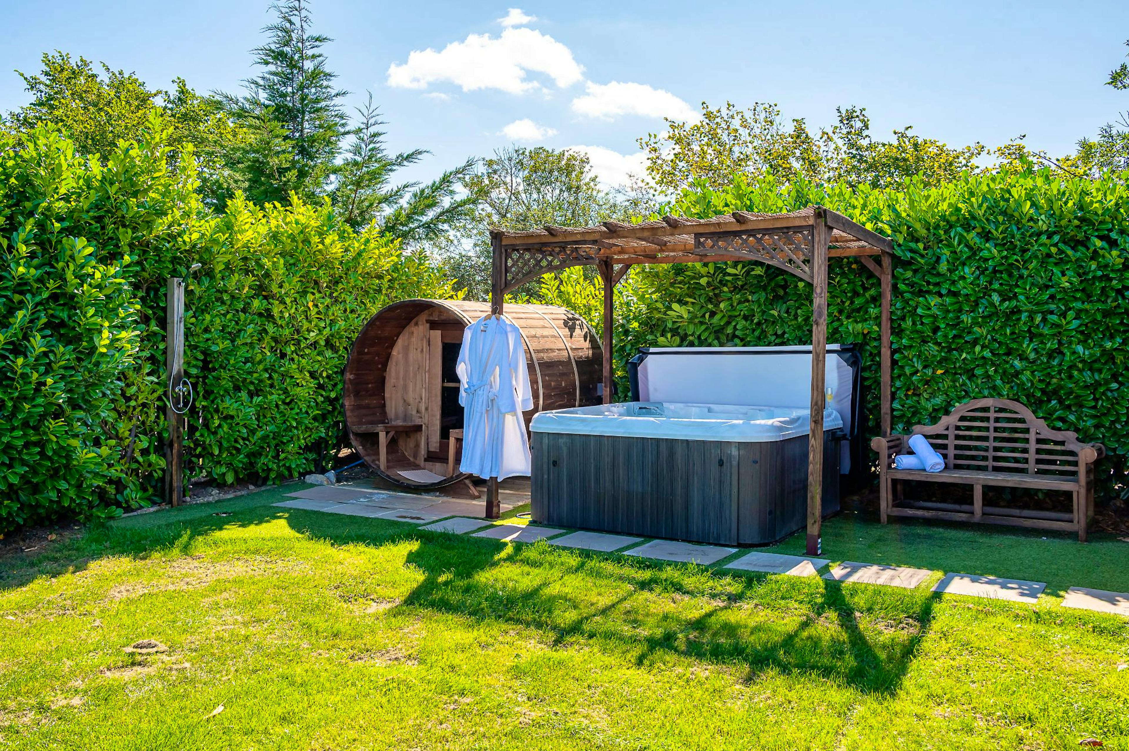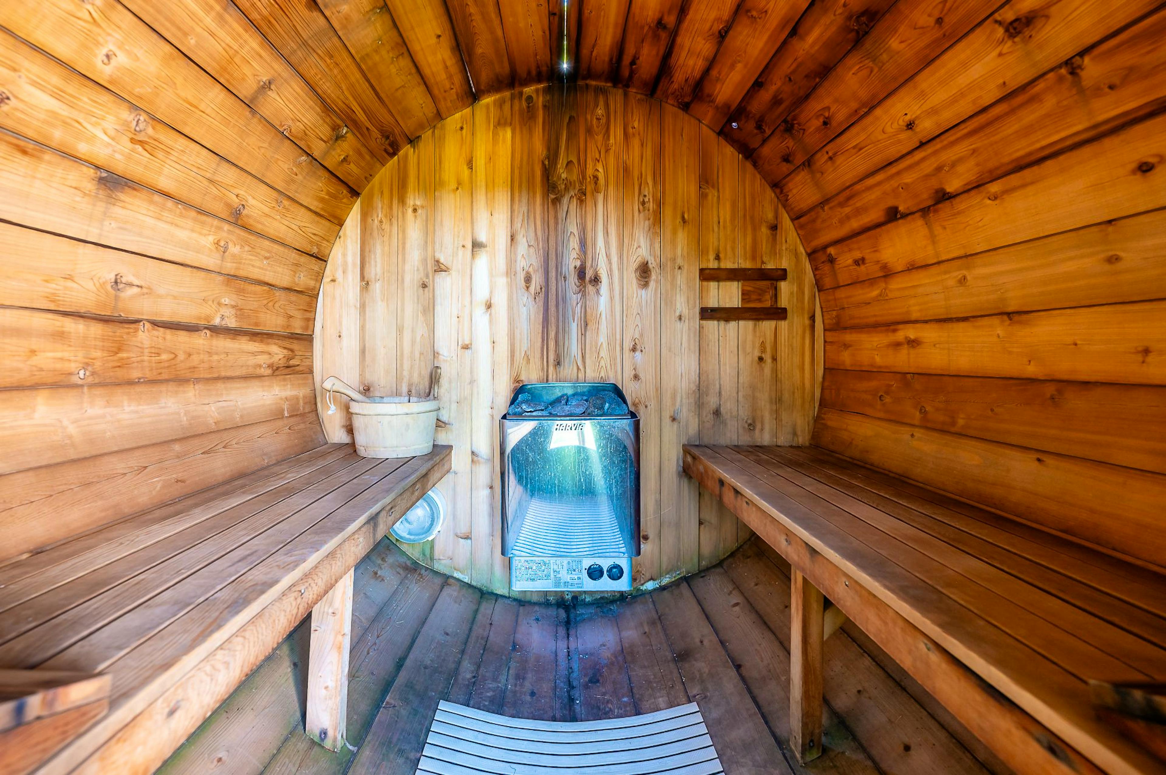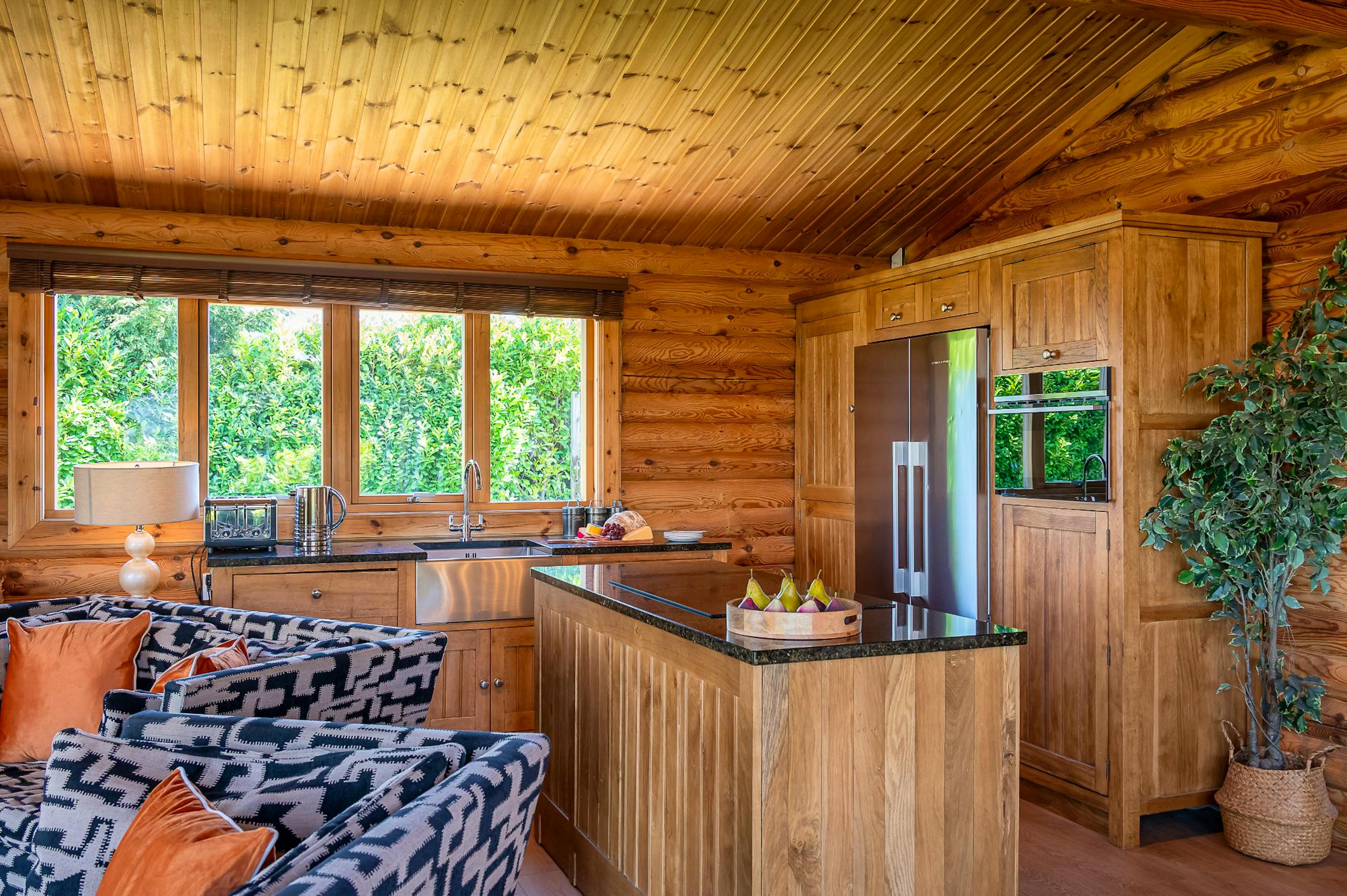 Two-bedroom dog-friendly lodge with private hot tub, traditional Scandinavian barrel sauna and invigorating outdoor shower for a spa-like escape.