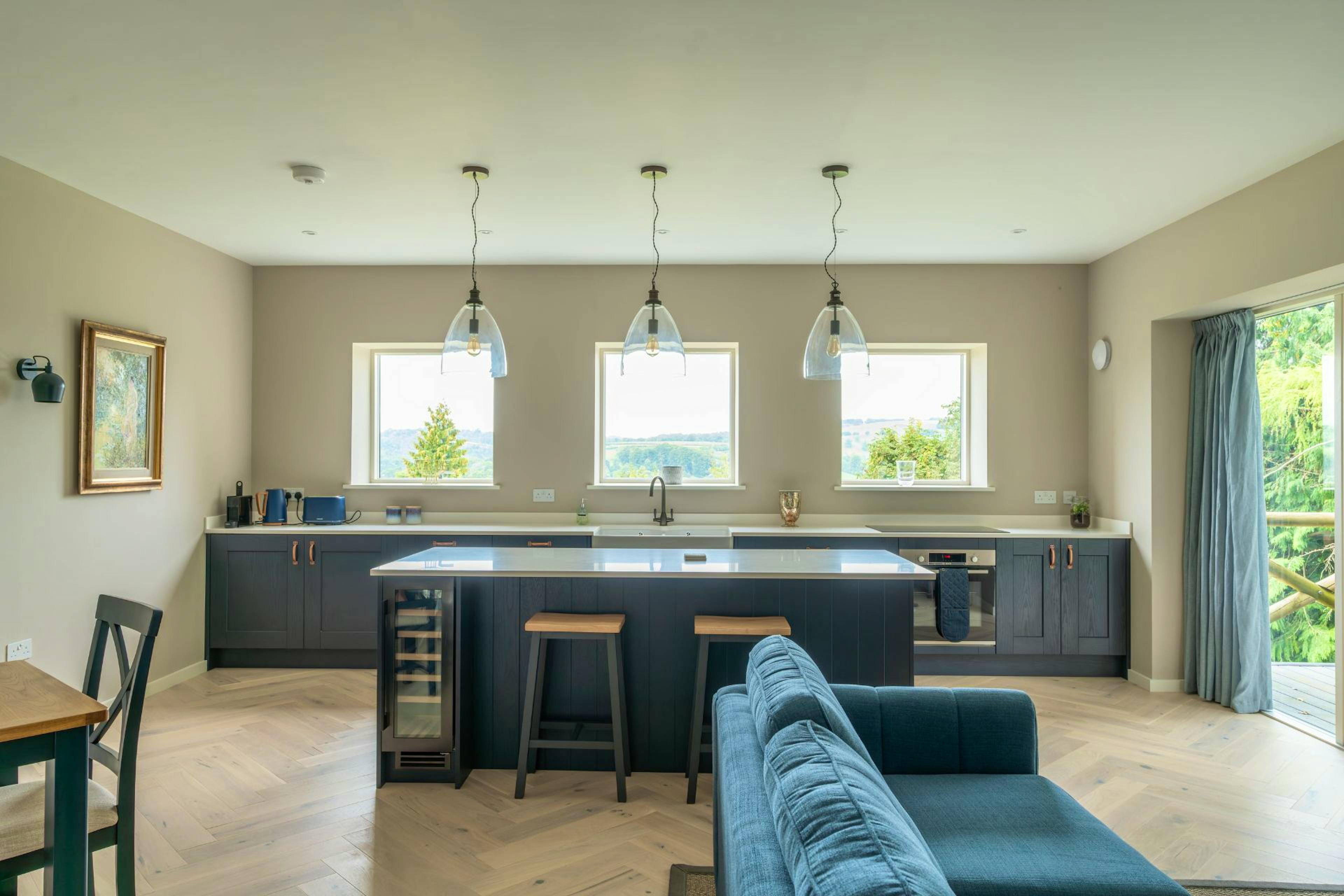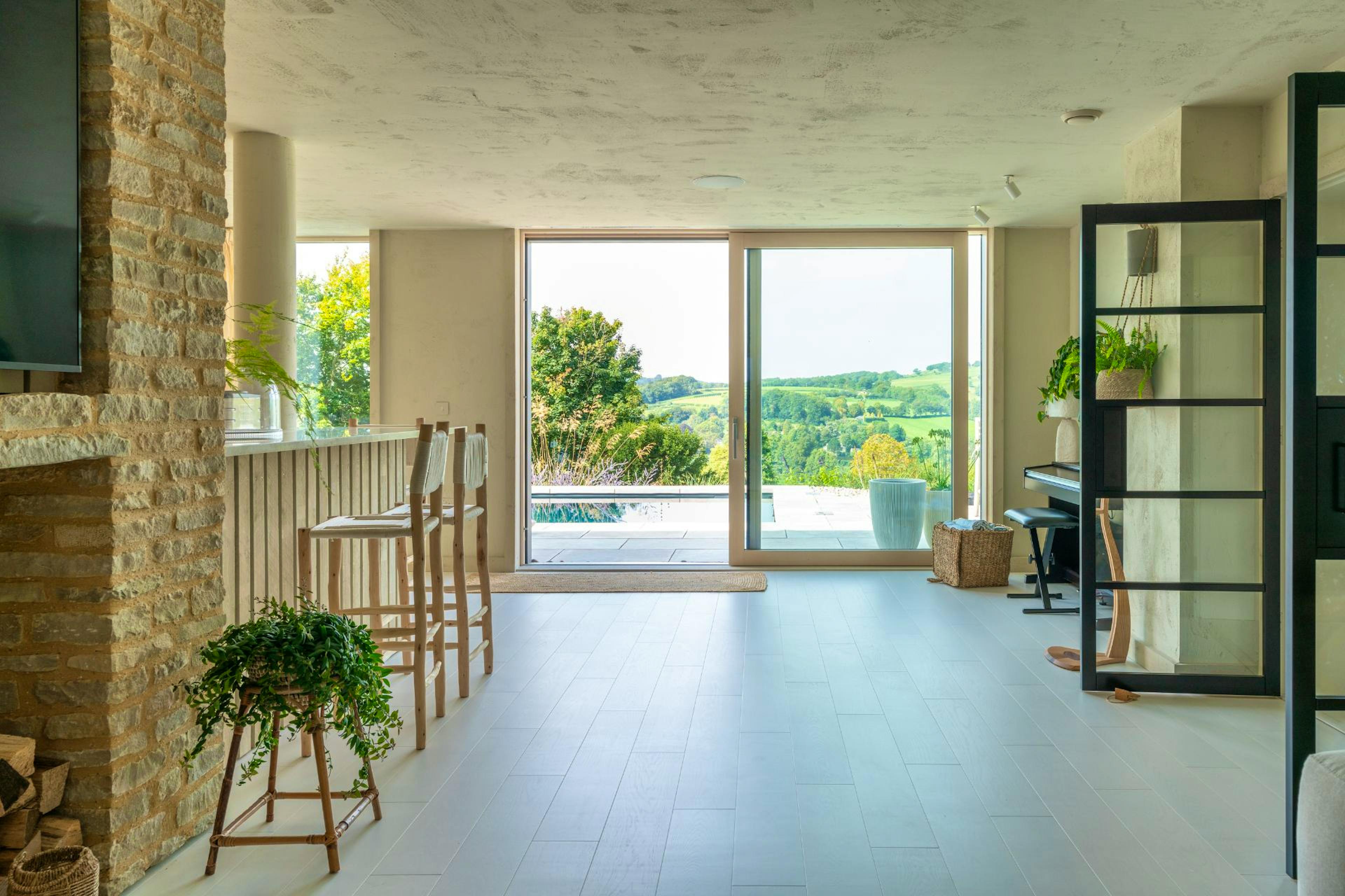Gorgeous open-plan interiors with panoramic windows that frame the Cotswolds at every turn.
