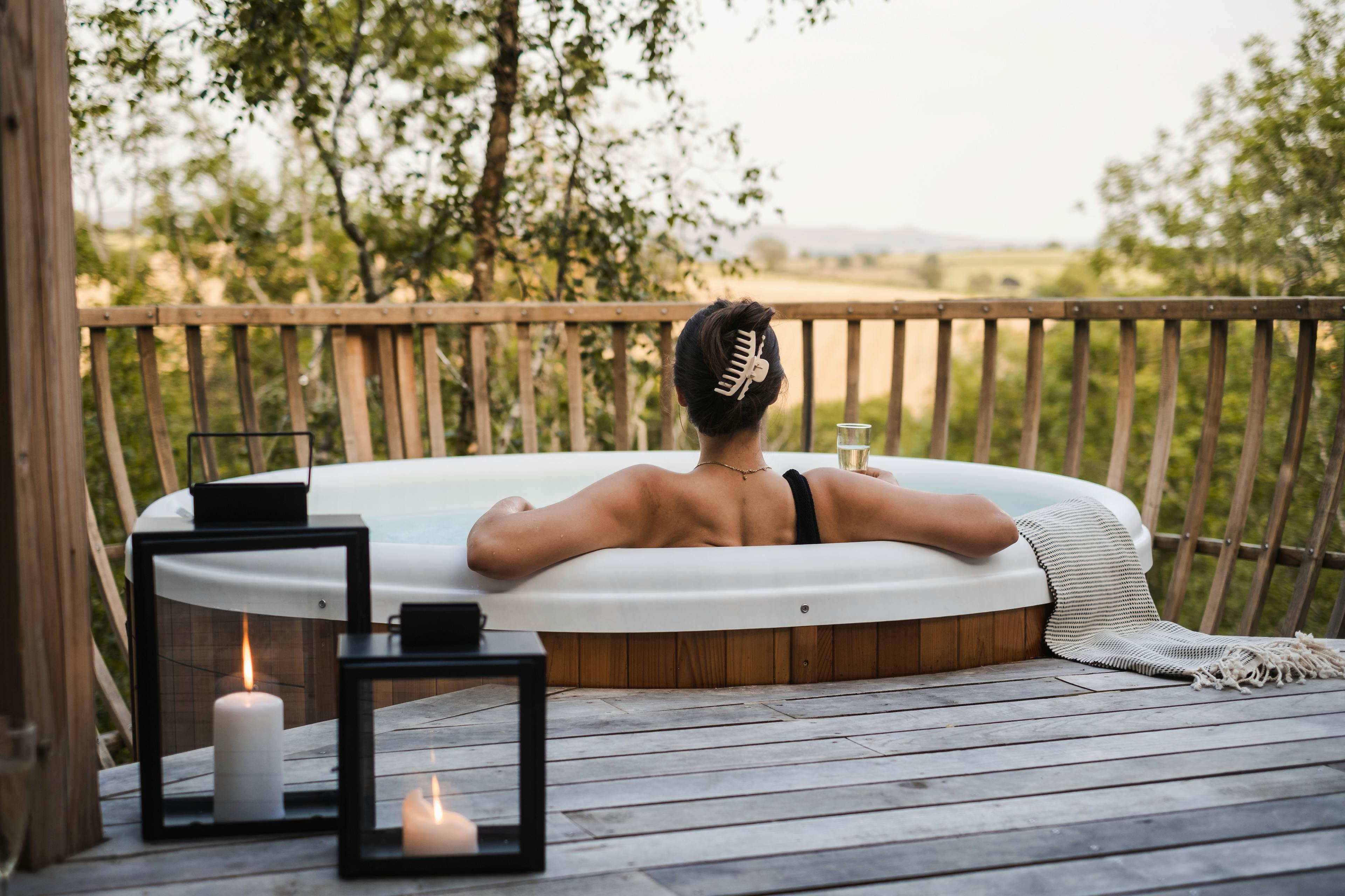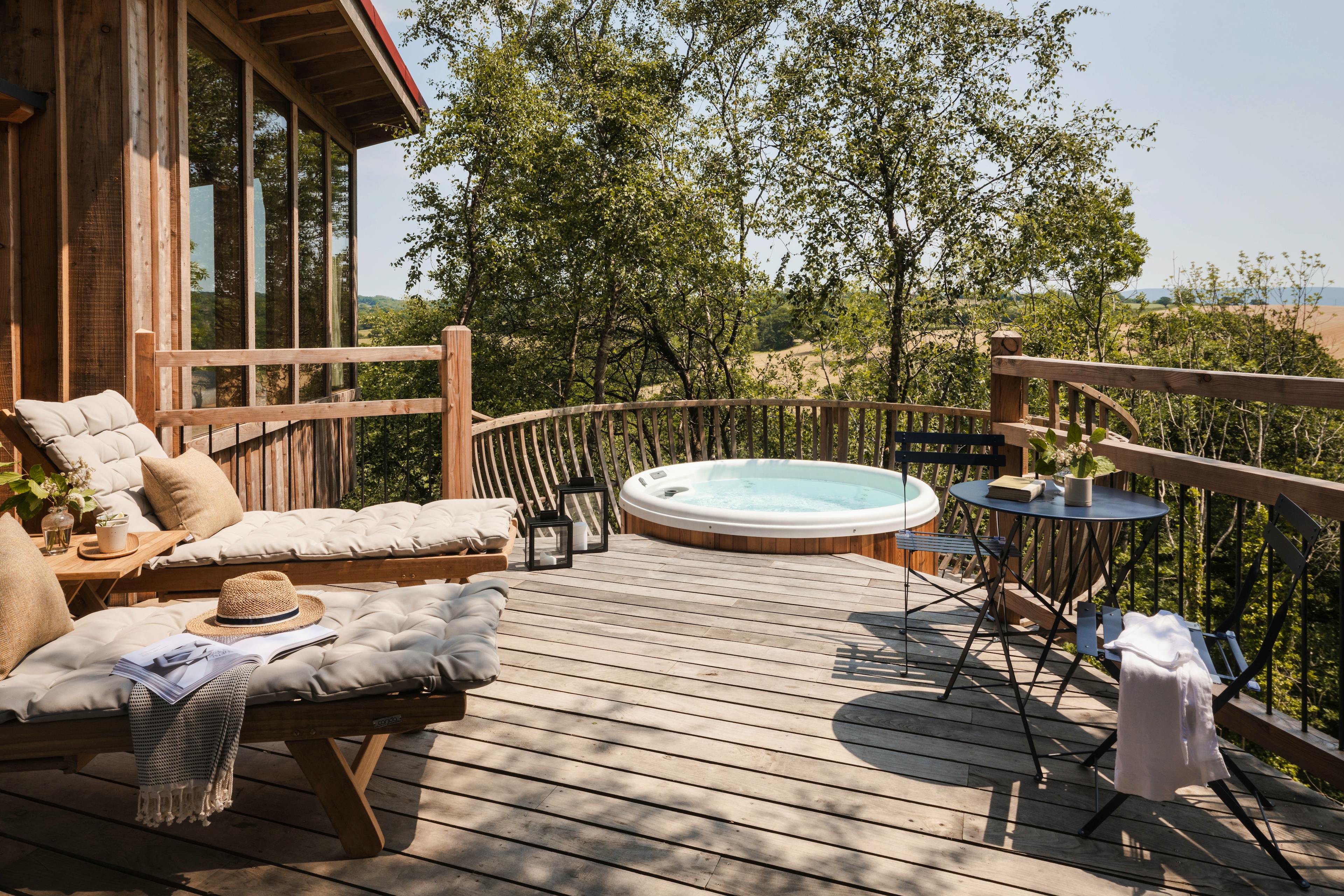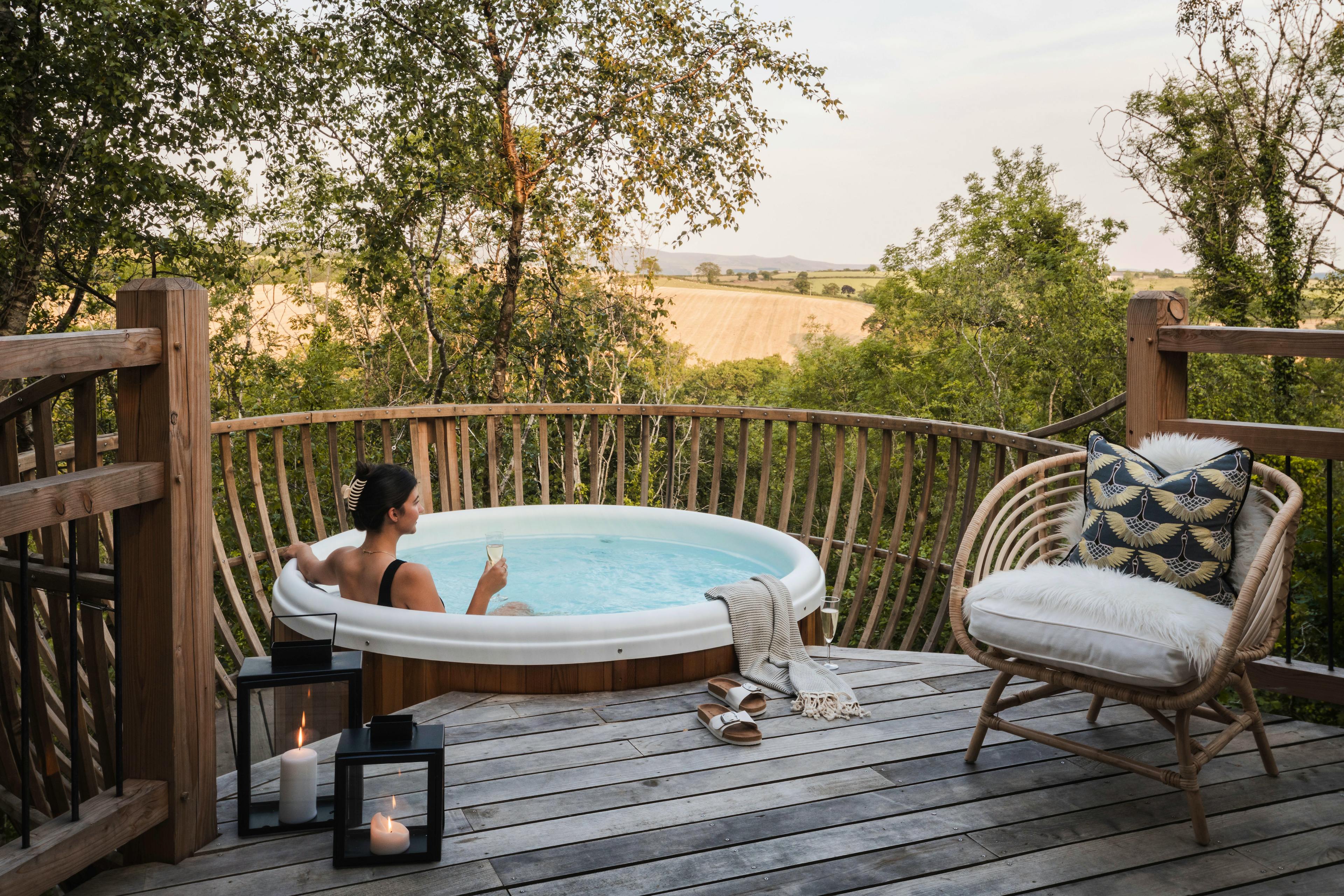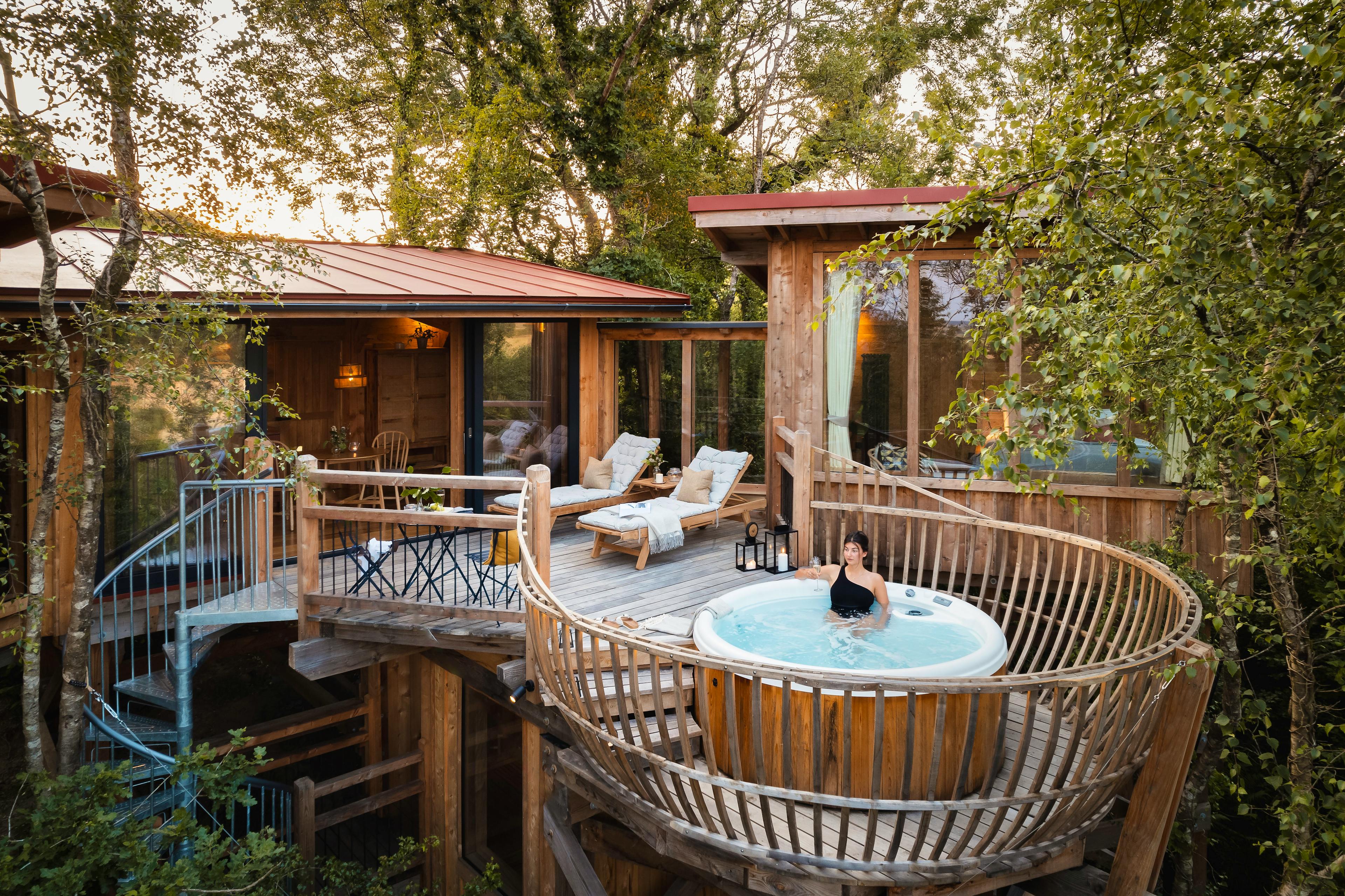 Unwind in nature with a unique spa experience high in the treetops of Wolf Wood in Devon – your hot tub and luxury sauna await you.