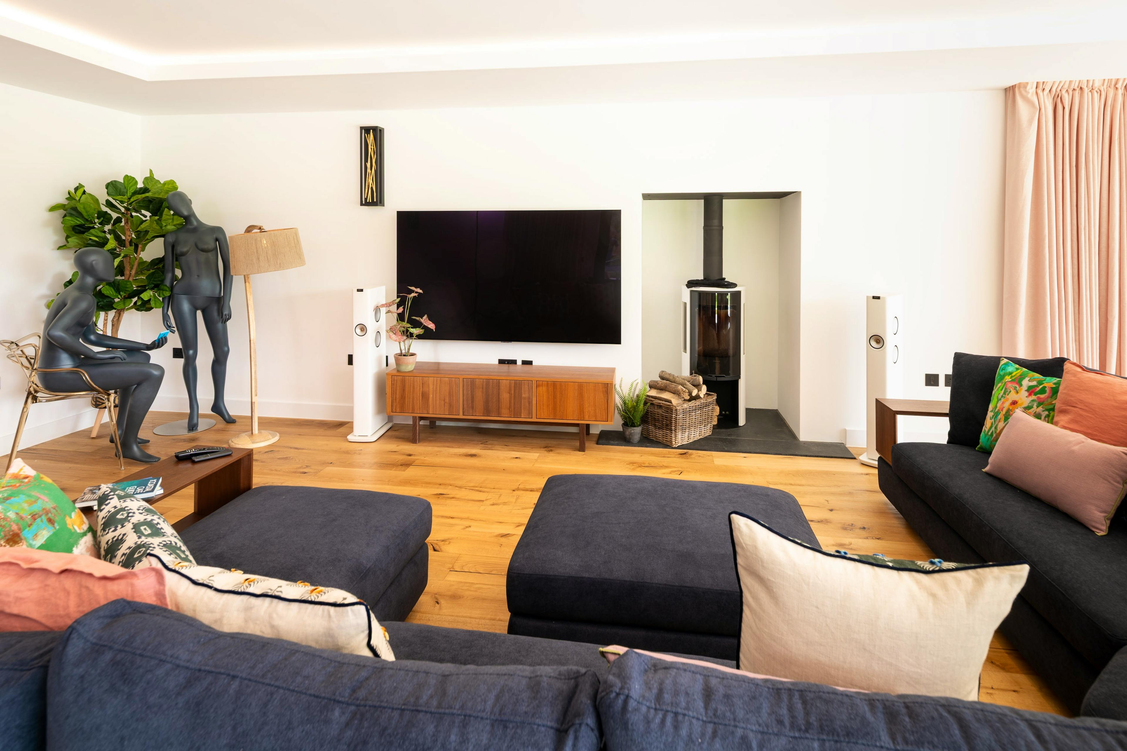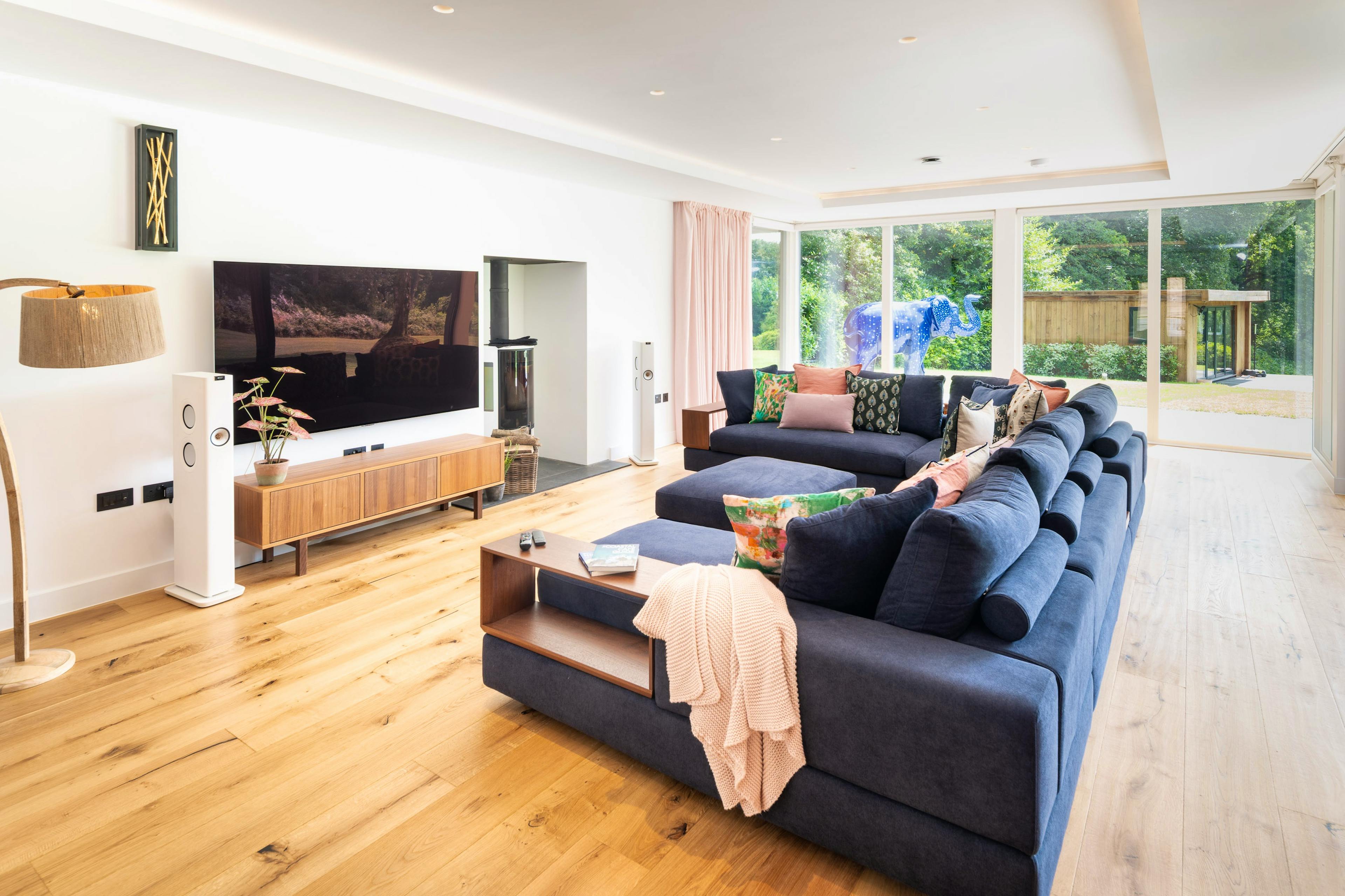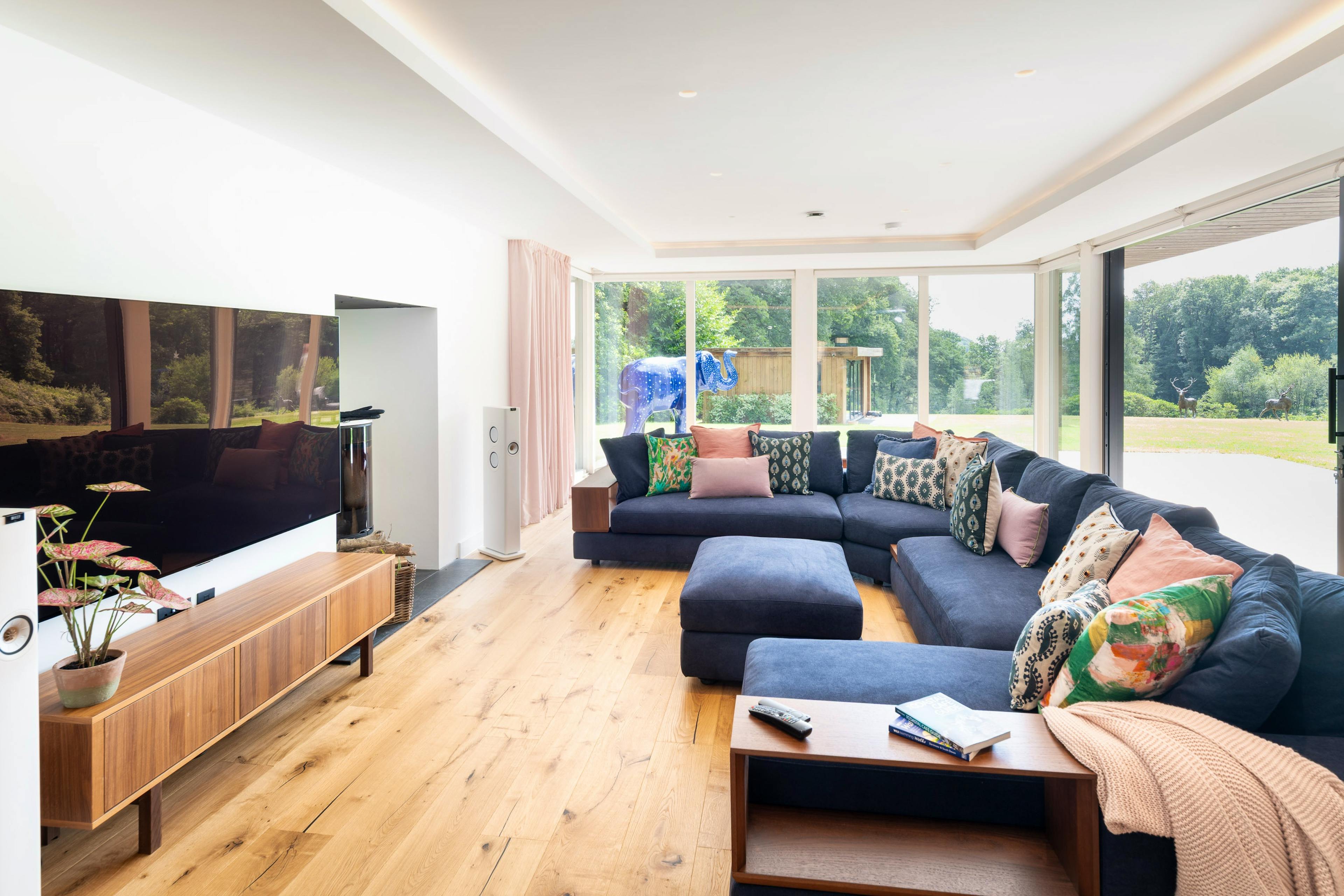 Sink into the giant sofa each evening, letting the peaceful woodland backdrop lull you into absolute relaxation after a day exploring the Jurassic Coast.