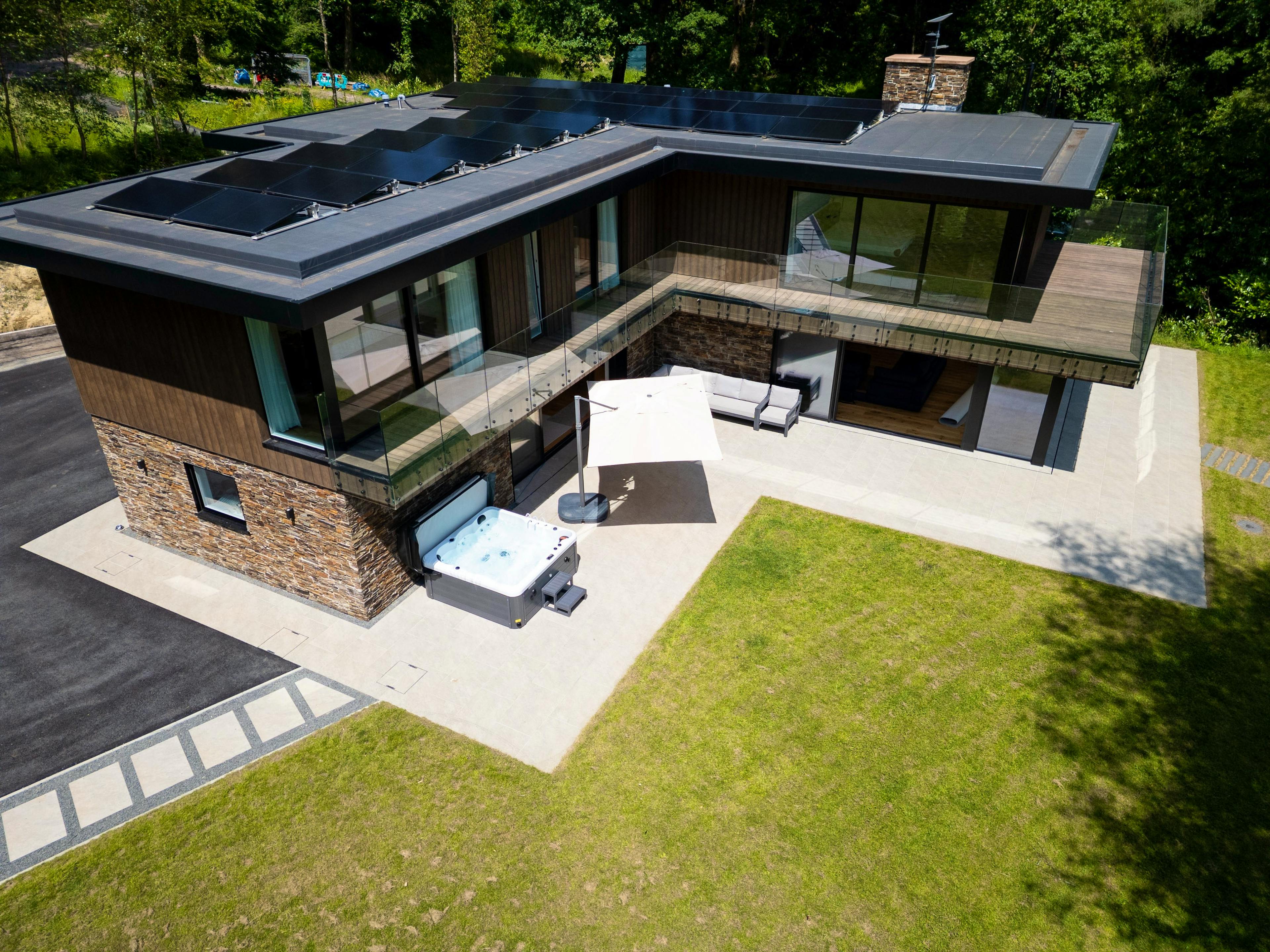 Slip into the steaming hot tub under the shelter of the patio and soak surrounded by nature, whatever the weather.