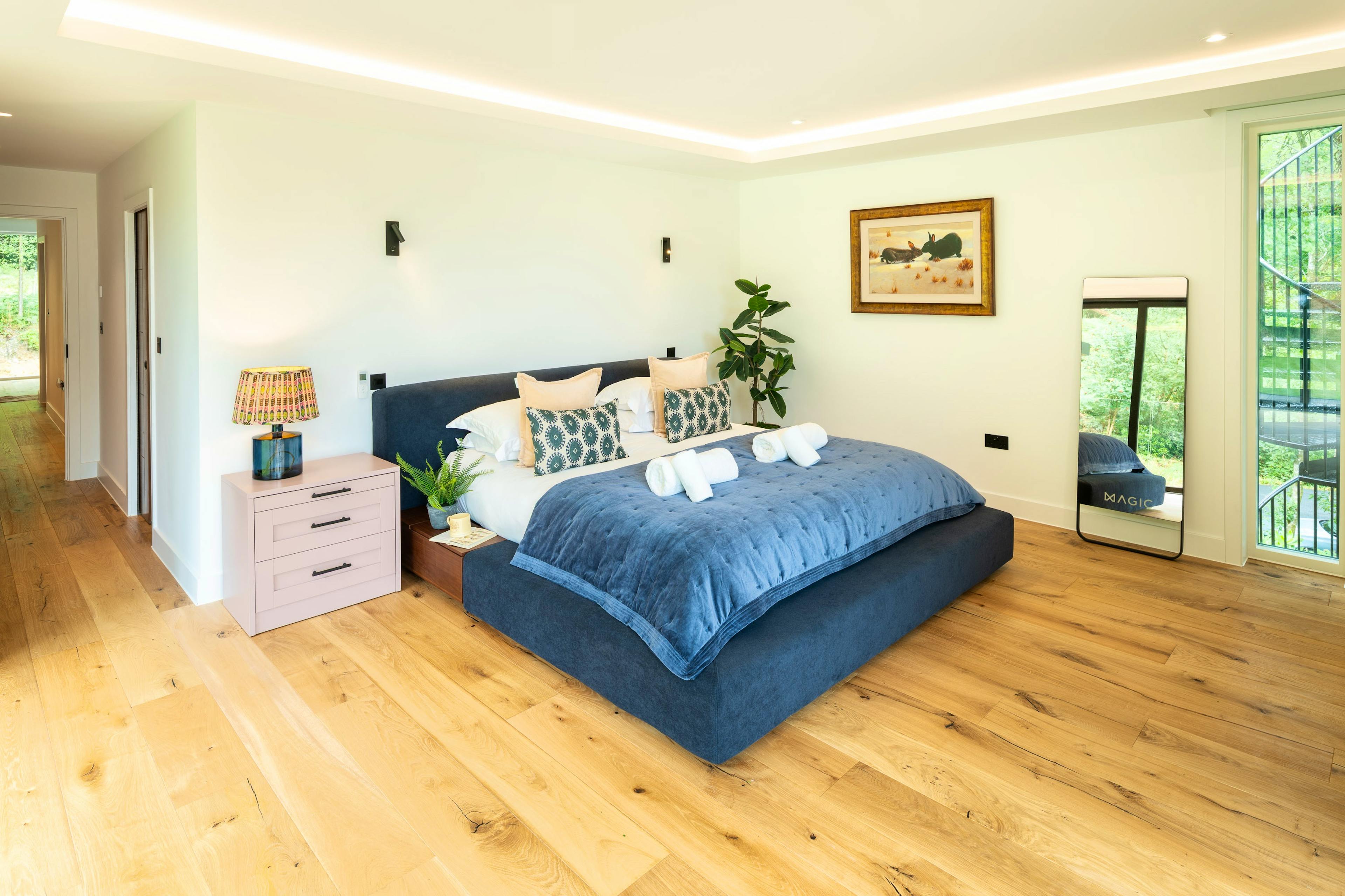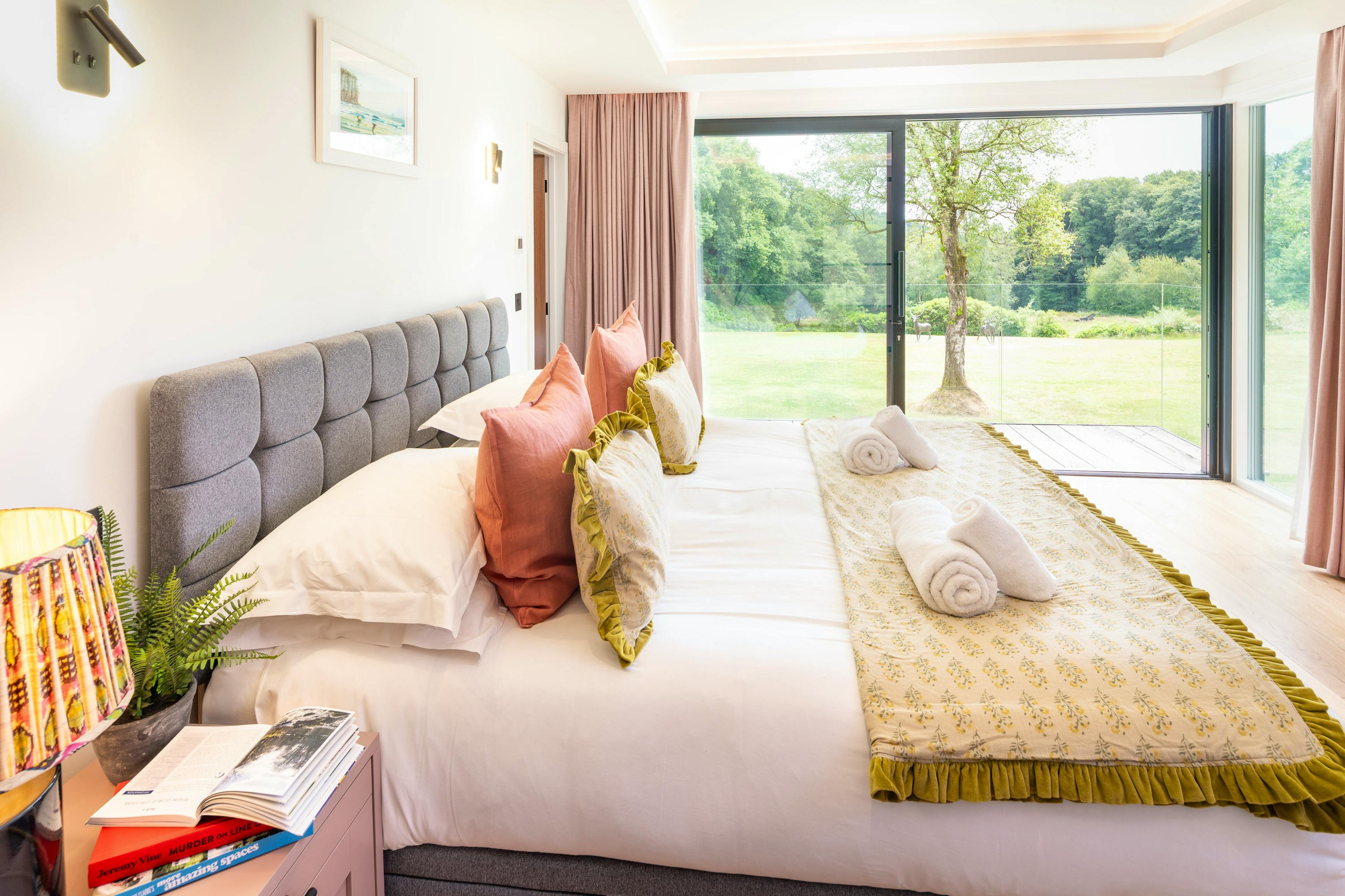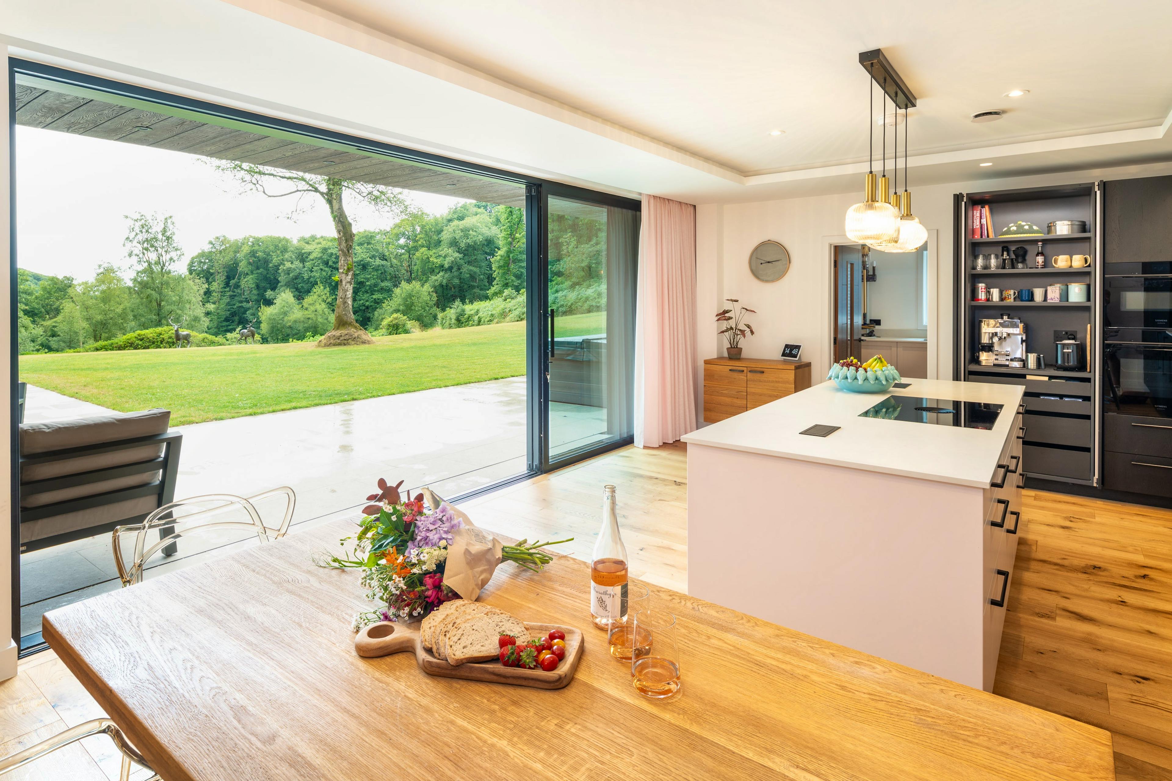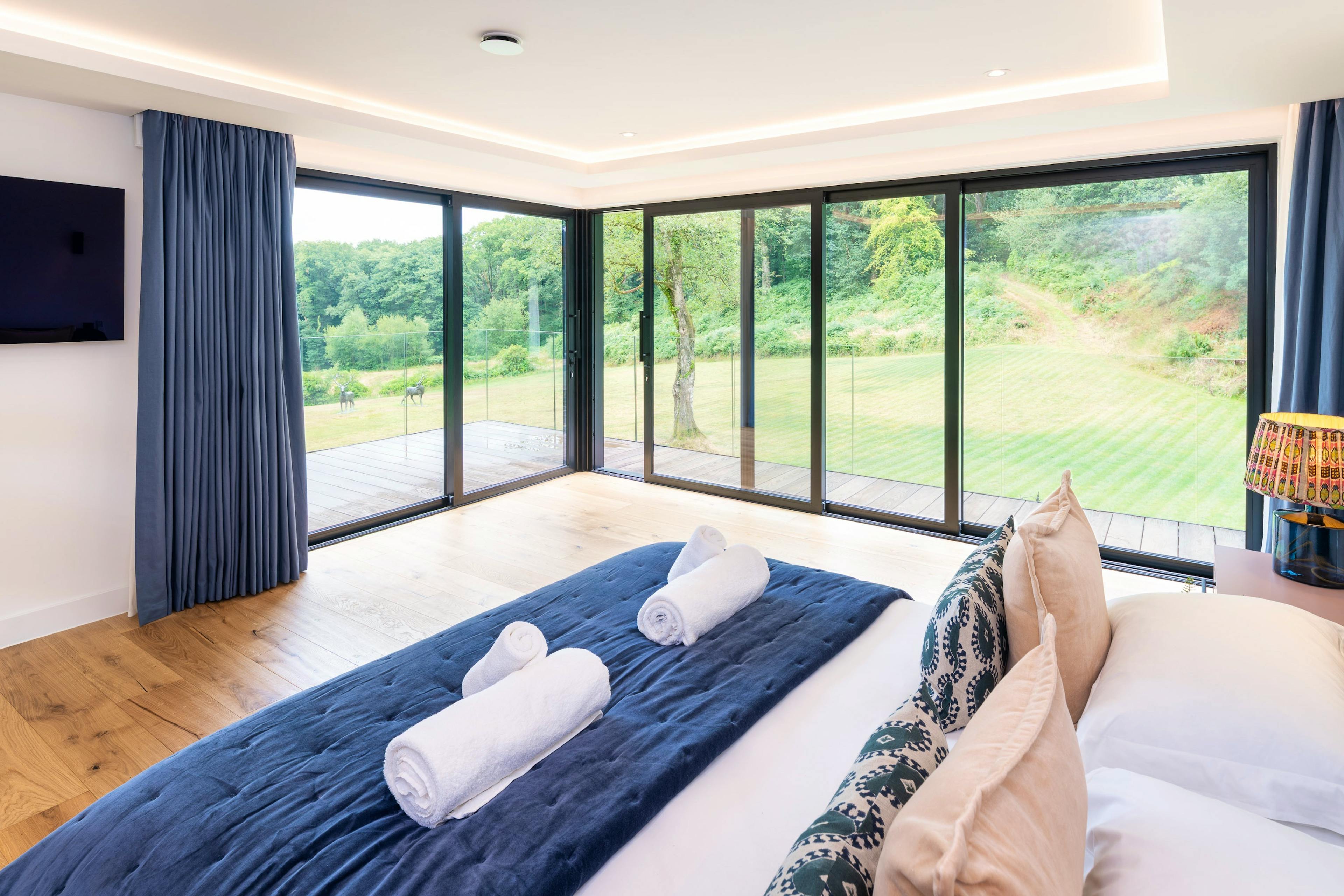 Wake to soft birdsong and roe deer wandering through the glade as morning light pours through floor-to-ceiling windows.