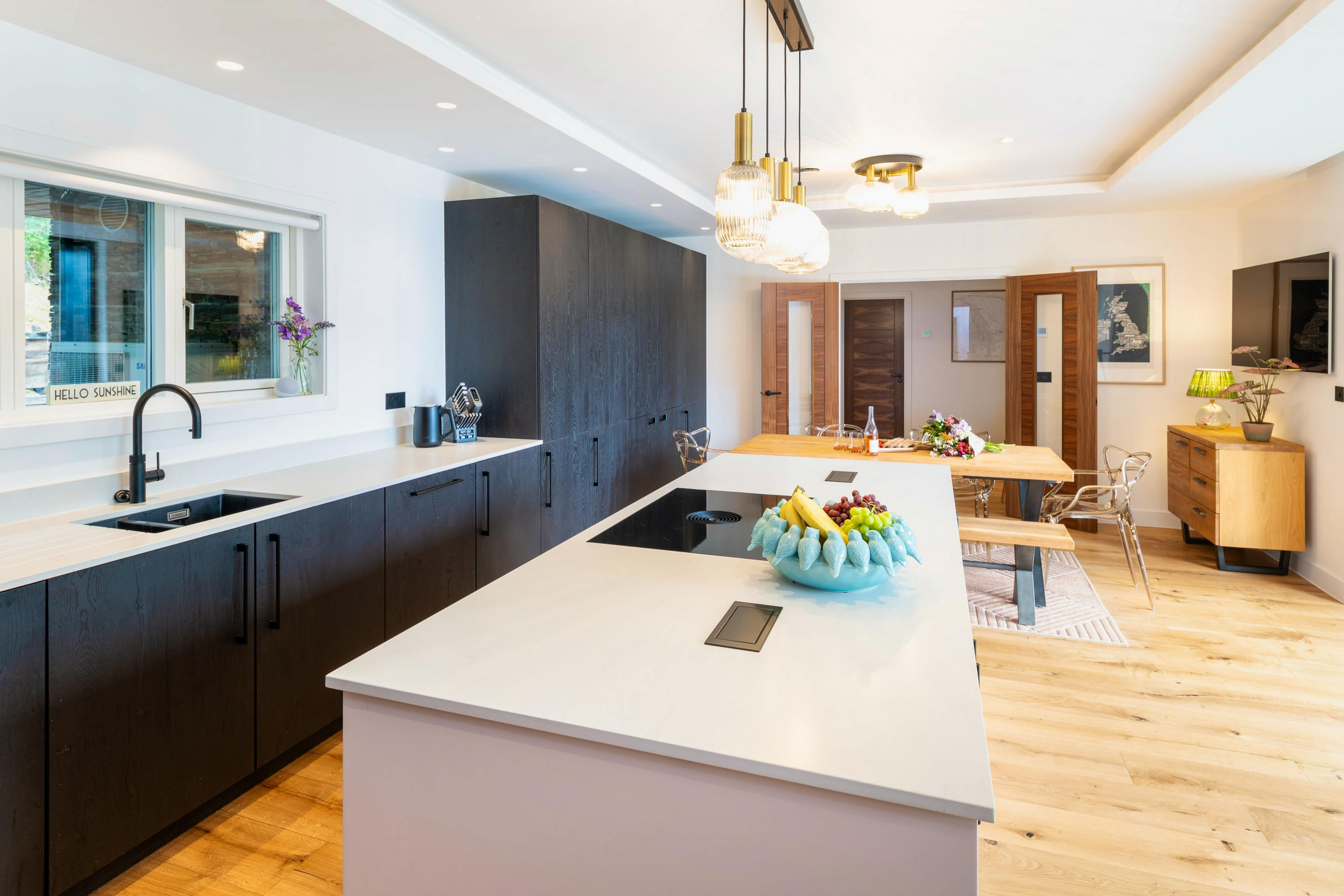 Enjoy memorable meals around the huge dining table or throw open the glass doors for dreamy alfresco feasts beside the trees.