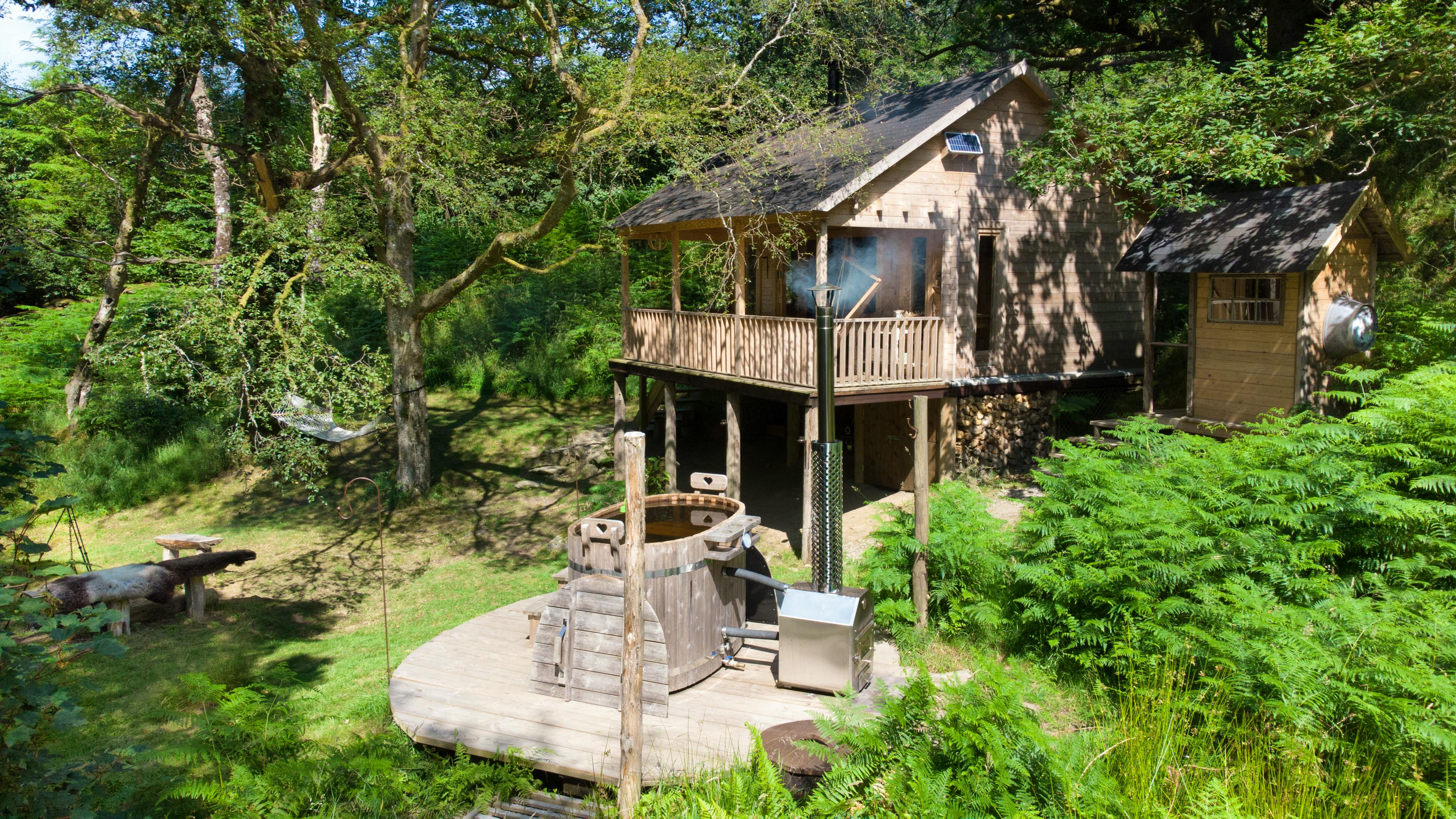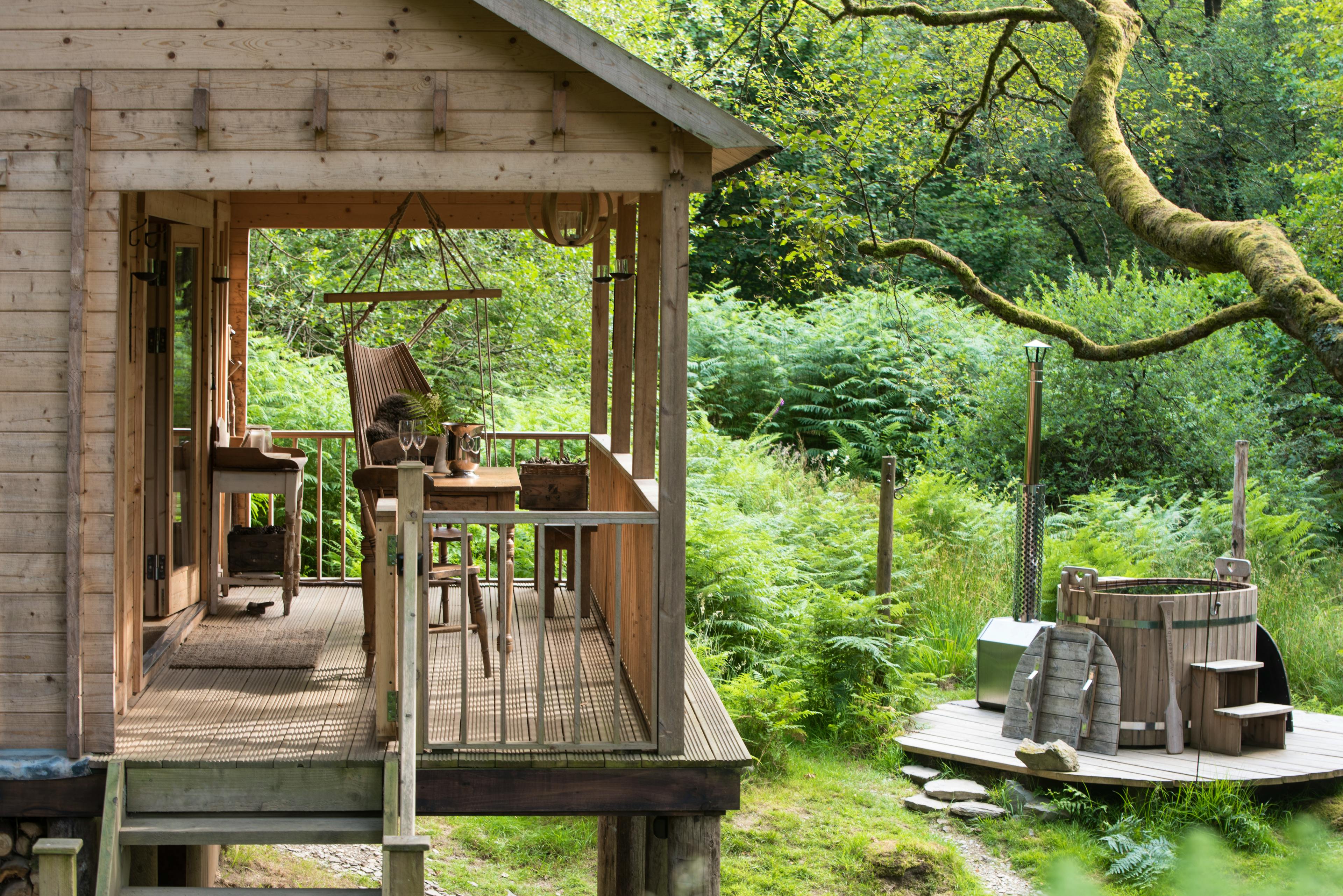 Situated on 38 acres of private land in the Cambrian Mountains is this cosy off-grid cabin, complete with wood-fired hot tub and stargazing net