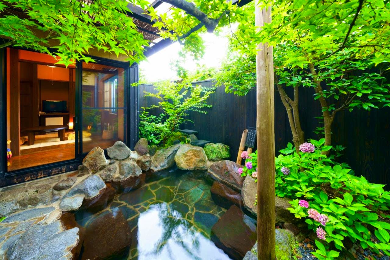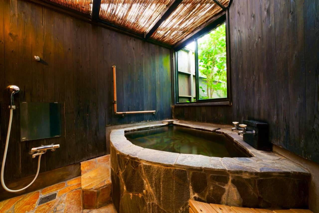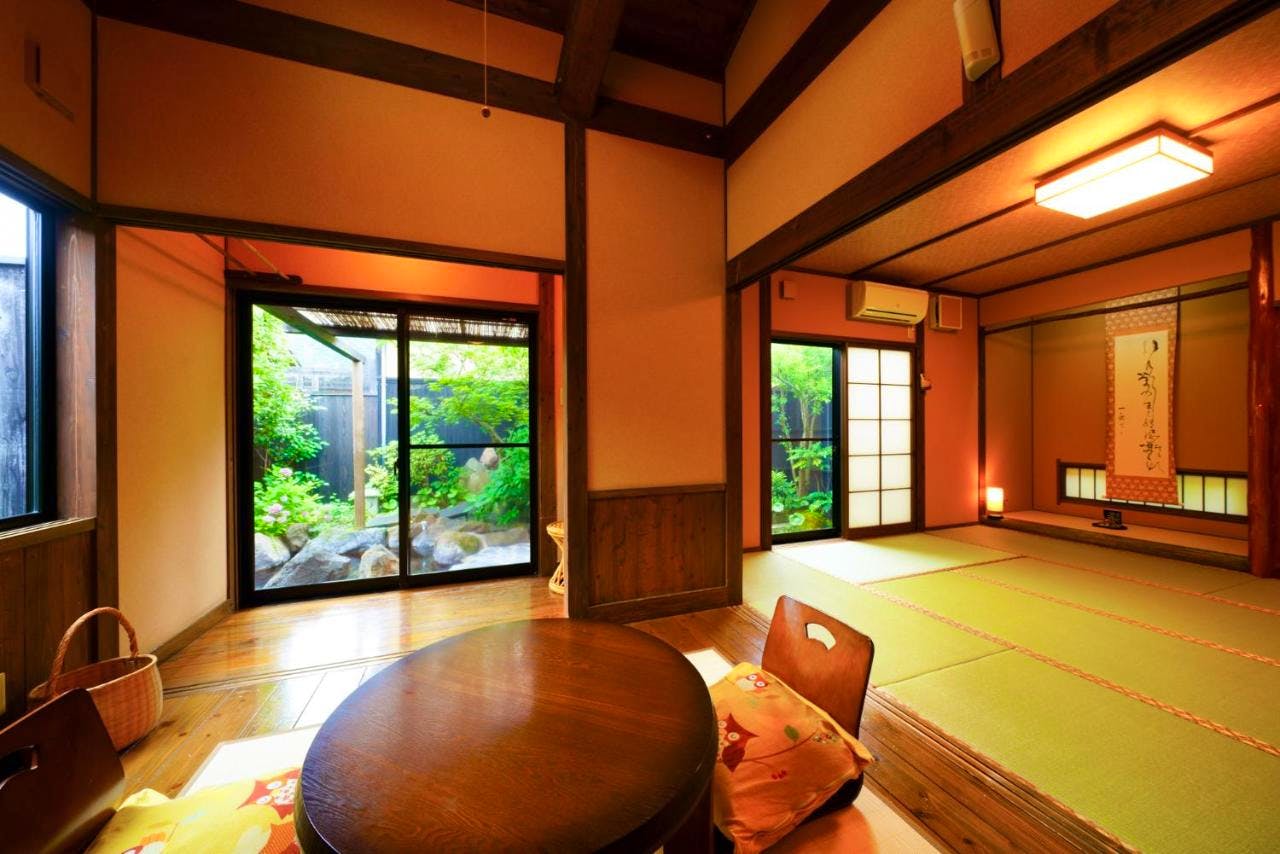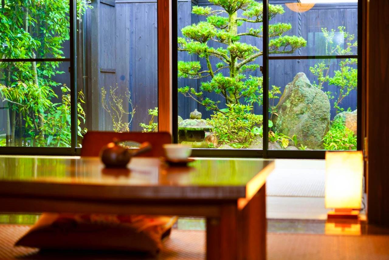 This traditional Japanese home has a hot-spring bath and a peaceful, calming design whilst offering great access to the active volcano, Mount Yufu.